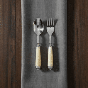 <li>Elegant design featuring a silver and cream resin handle for a stylish addition to your dining table.</li>