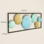 <li class="a-spacing-mini"><span class="a-list-item">Artistic Design: This metal wall art sculpture features a rectangular frame with multicoloured circular discs in varying sizes, creating an eye-catching and modern decor piece.</span></li>