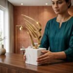 Vedas Metal Gold Abstract Marble Figurine Showpiece Table Decor