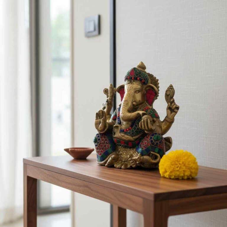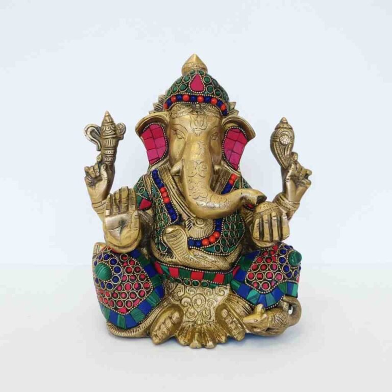 Vedas Brass Ganesha Statue with Stonework Idol & Figurine Showpiece