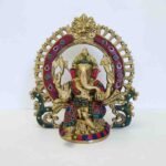 Vedas Brass Ganesha Frame Stonework Statue Idol & Figurine Showpiece