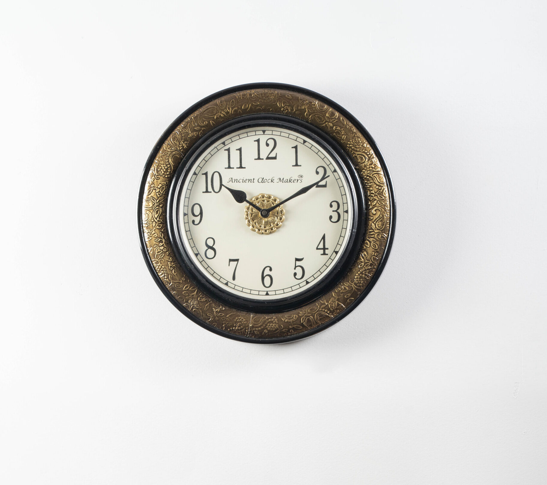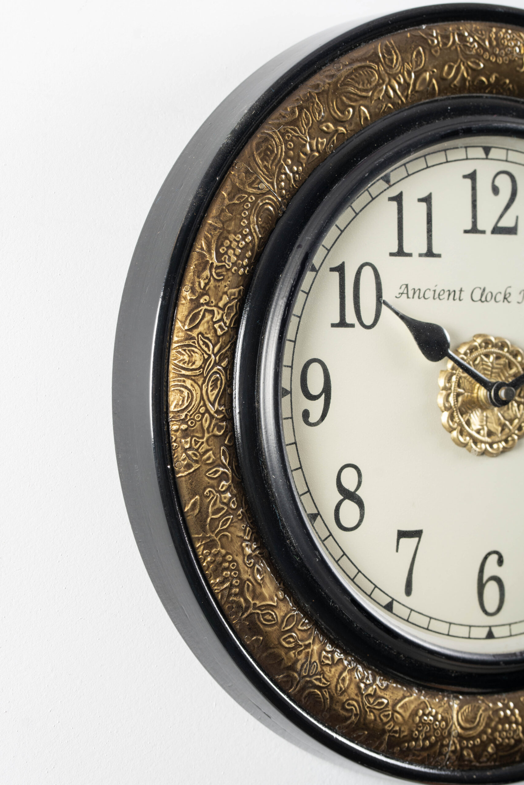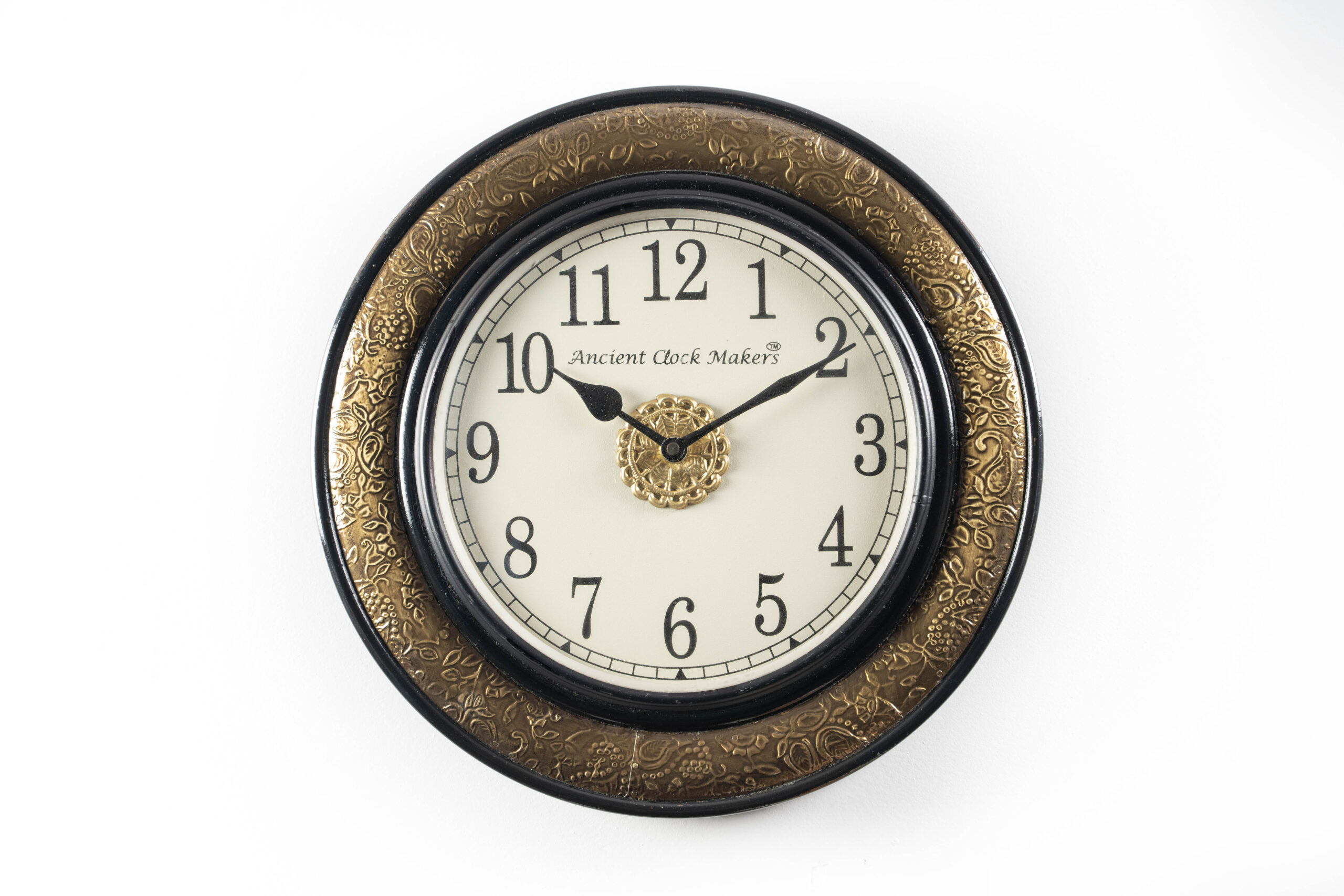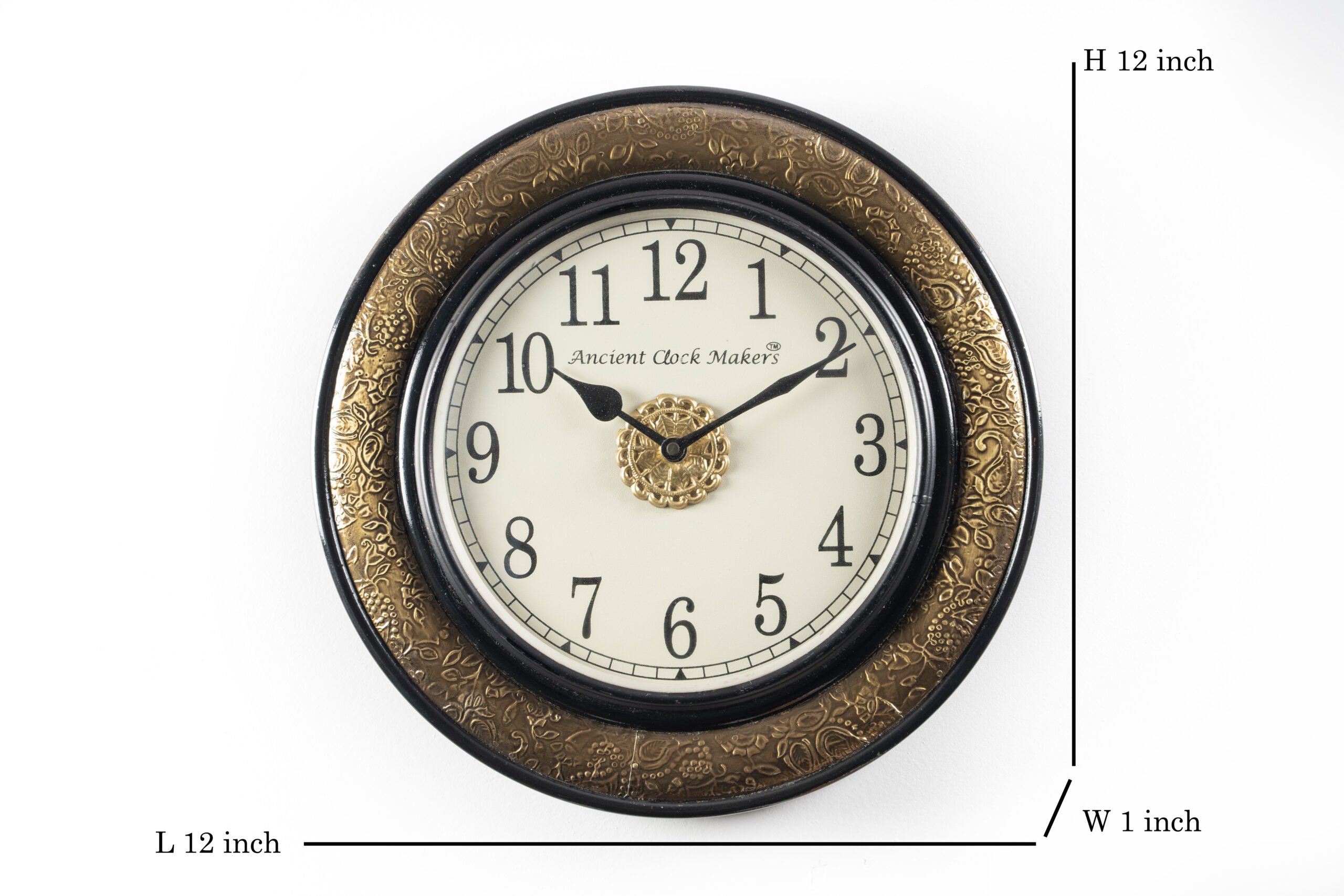 Elevate your home decor with the Anay Heritage Wooden Polished and Brass Metal Fit Wall Clock. This stunning 12-inch timepiece features a striking black and gold design, complemented by a luxurious gold face that adds a touch of elegance to any room. Crafted with precision, its polished wooden frame and brass accents ensure durability while making a bold statement. Perfect for both modern and classic interiors, this clock not only keeps time but also serves as a captivating focal point in your living space.