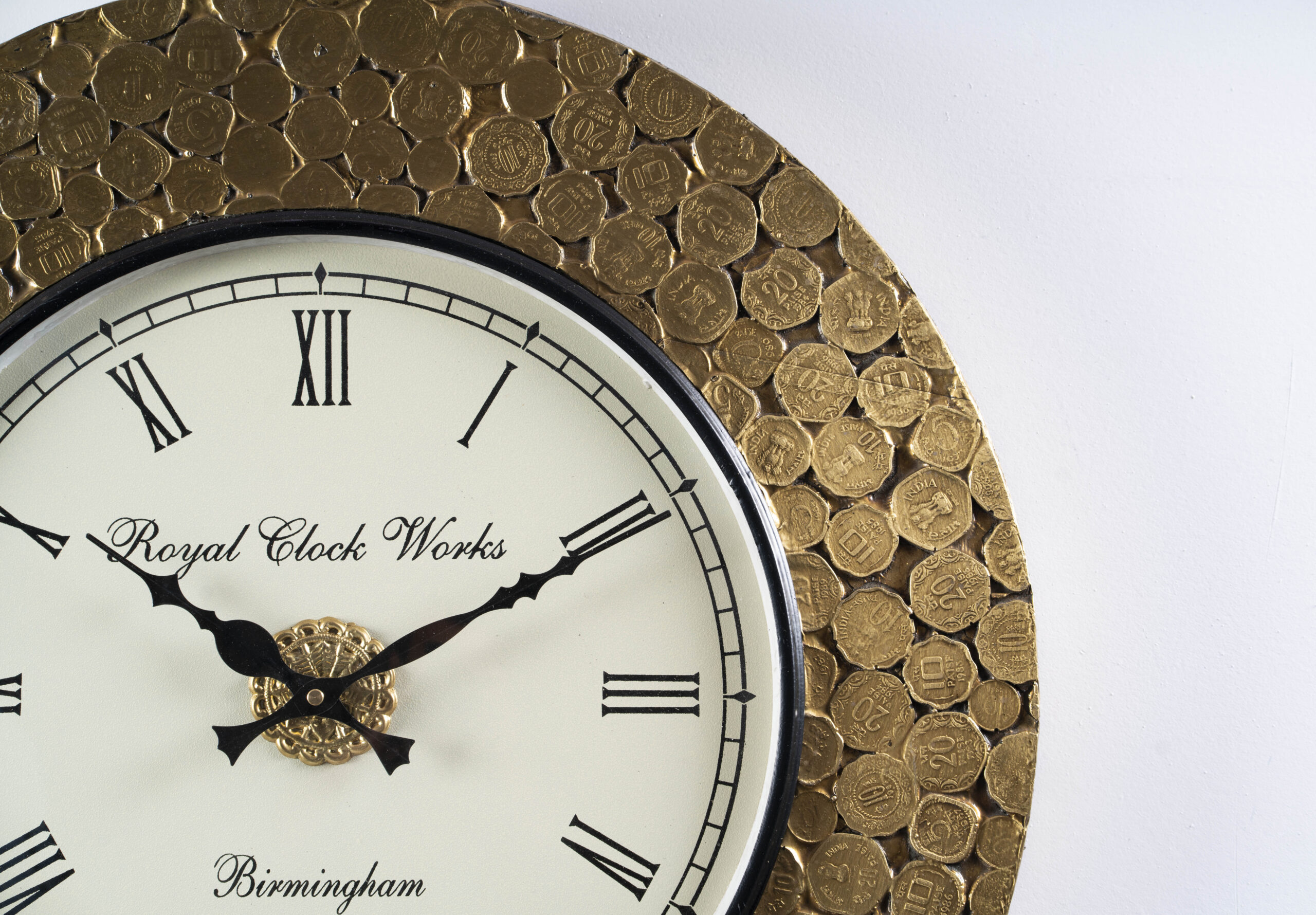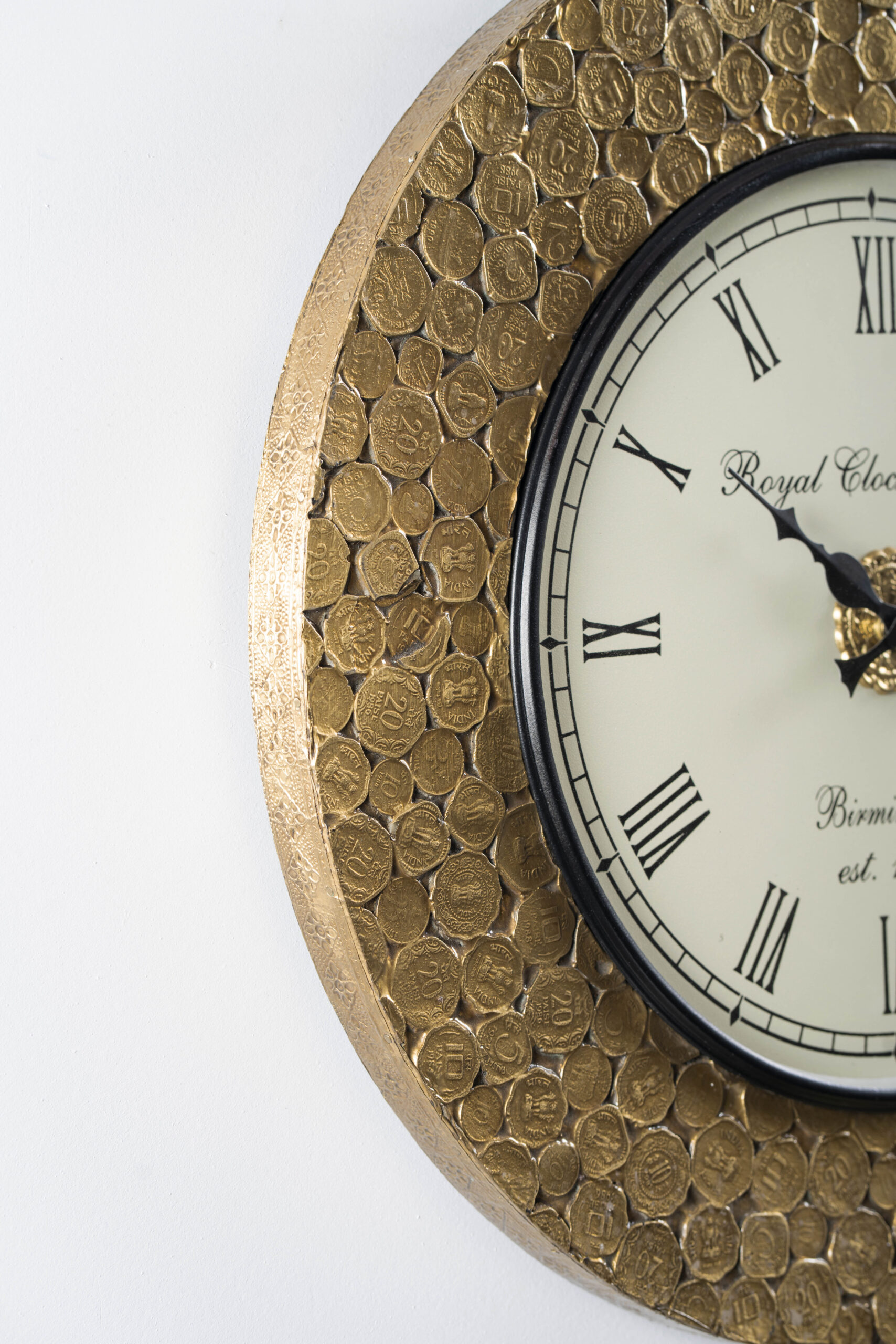 Elevate your home decor with the Ashvik Wooden Polished and Brass Metal Fit Wall Clock, a stunning blend of elegance and functionality. This exquisite gold wall clock features classic Roman numerals, making it not only a timepiece but also a statement piece for any room. Crafted with a polished wooden frame and durable brass metal fittings, it promises both style and longevity. Perfect for adding a touch of sophistication to your living space, this clock is an ideal choice for those who appreciate timeless design. Make every hour a stylish one with this captivating wall clock.