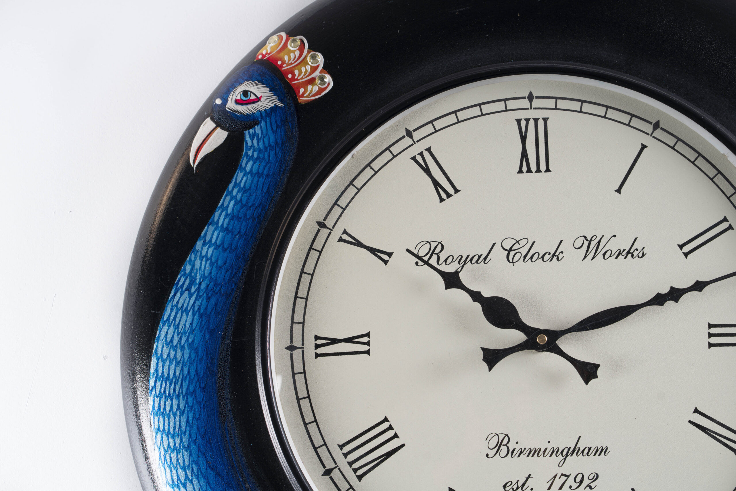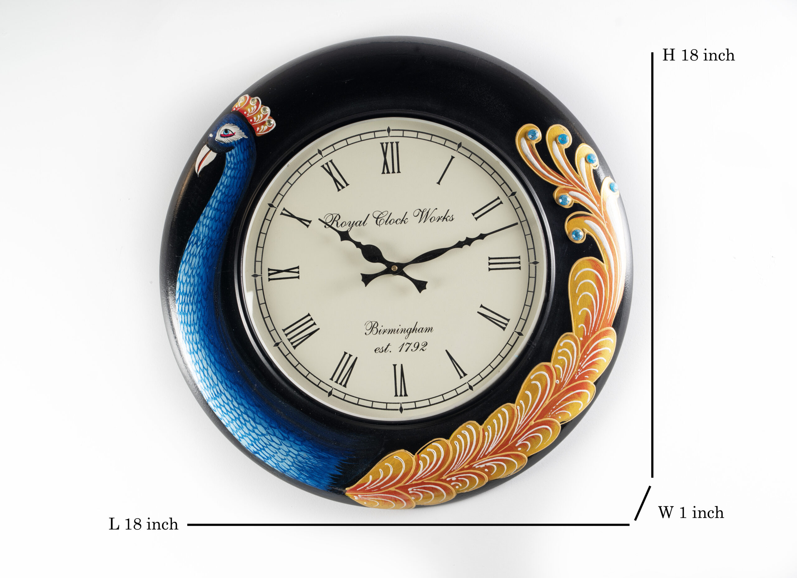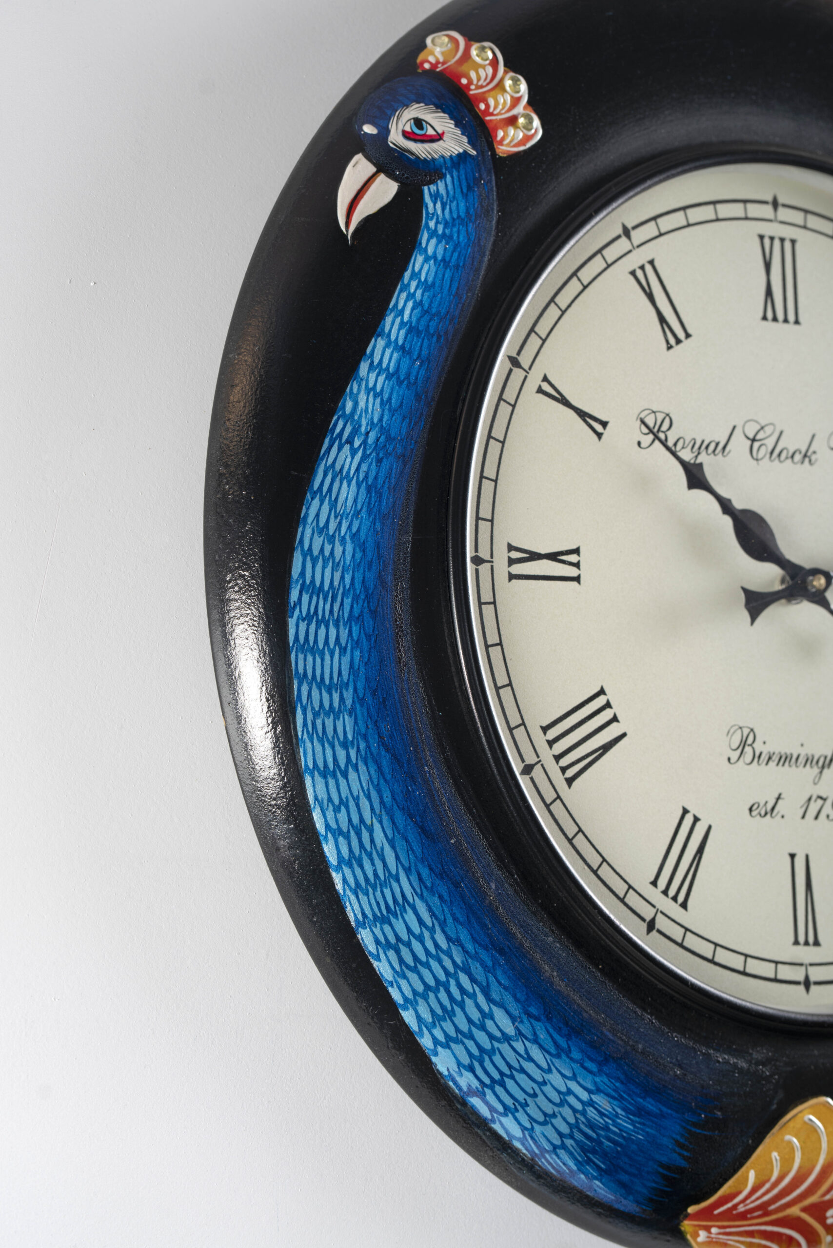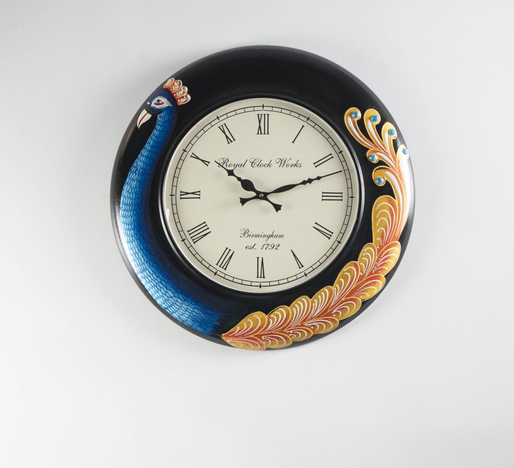 Elevate your home decor with the Brinda Handpainted Wooden Wall Clock, featuring a stunning and vibrant peacock design that adds a touch of elegance to any room. This exquisite clock is not only a functional timepiece but also a captivating piece of art, meticulously hand-painted to showcase intricate details and rich colors. Crafted from high-quality wood, it promises durability while enhancing your living space with its unique charm. Perfect for those who appreciate artistry and style, this clock is an ideal gift or a delightful addition to your own collection.