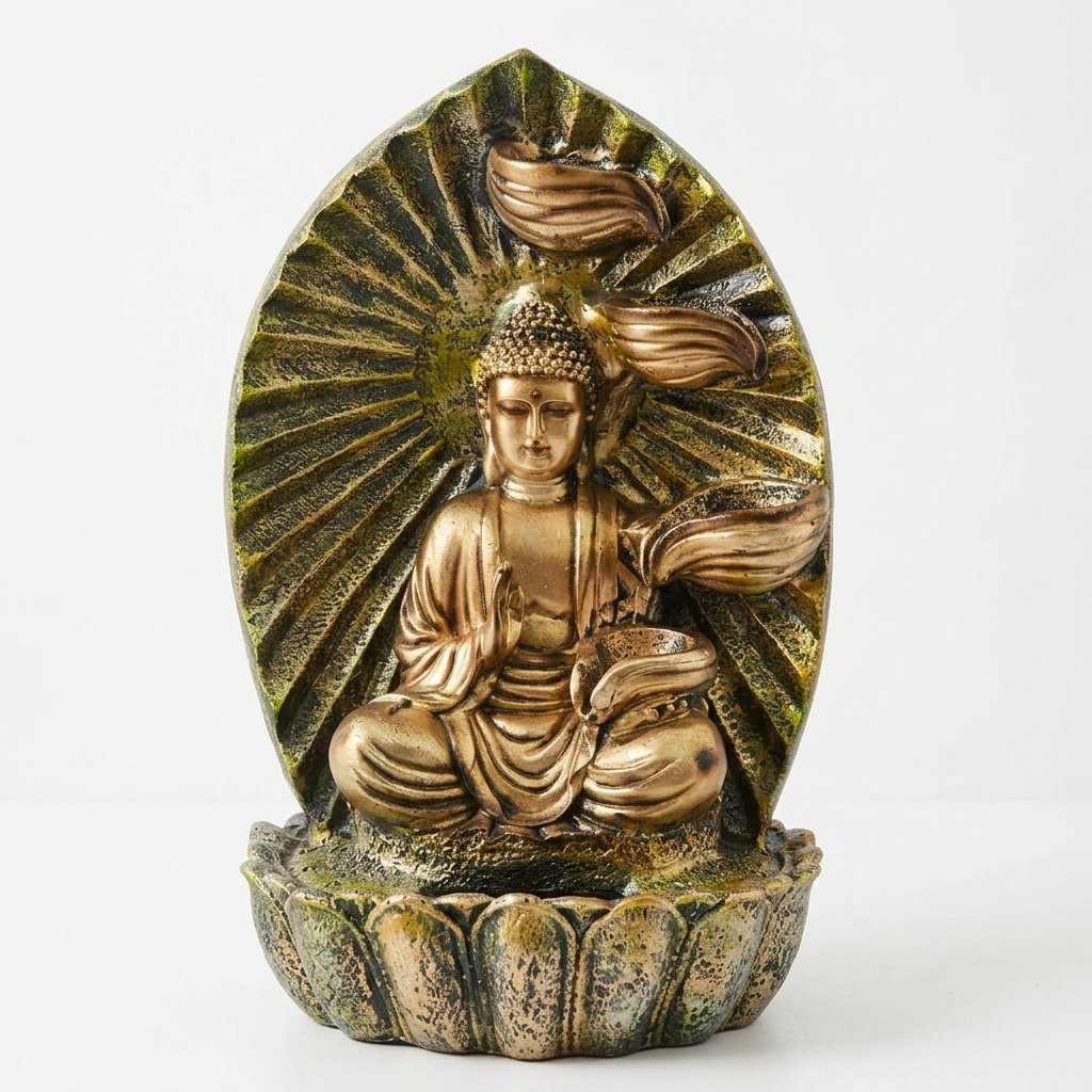 Bring tranquility and spiritual charm into your space with this beautifully designed Buddha tabletop water fountain. Featuring a calm and meditative Buddha figure set against a detailed leaf-shaped backdrop, this fountain creates a harmonious blend of art and relaxation.