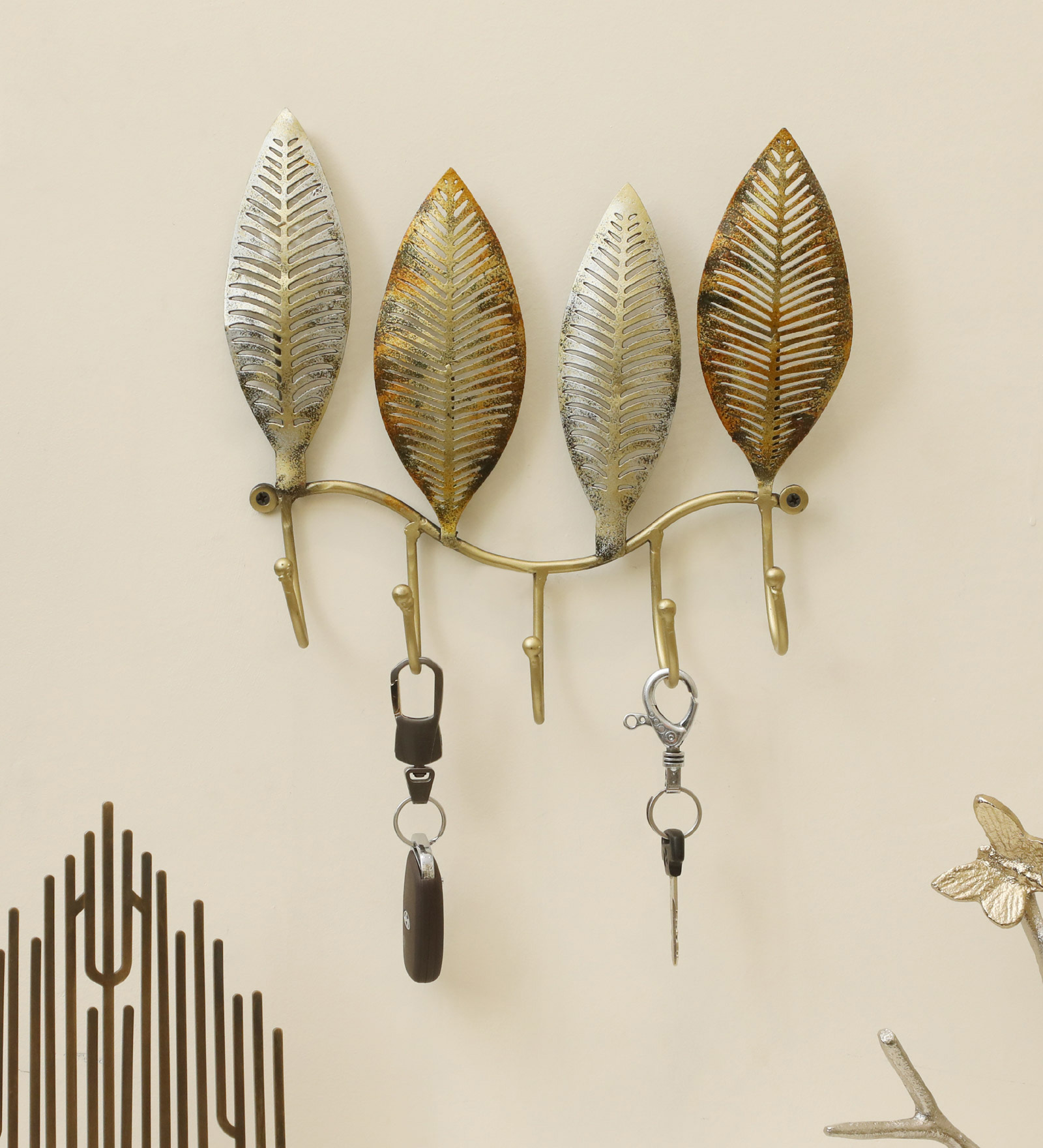 Lux Leafs Metal Wall Hooks for Keys | 5-Hook Holder
