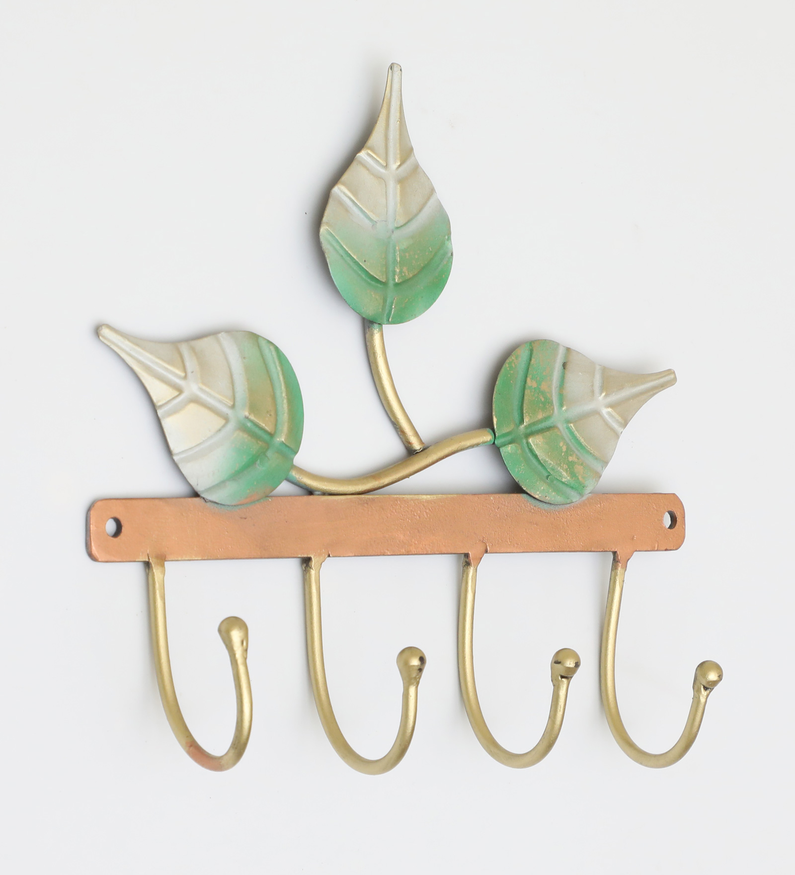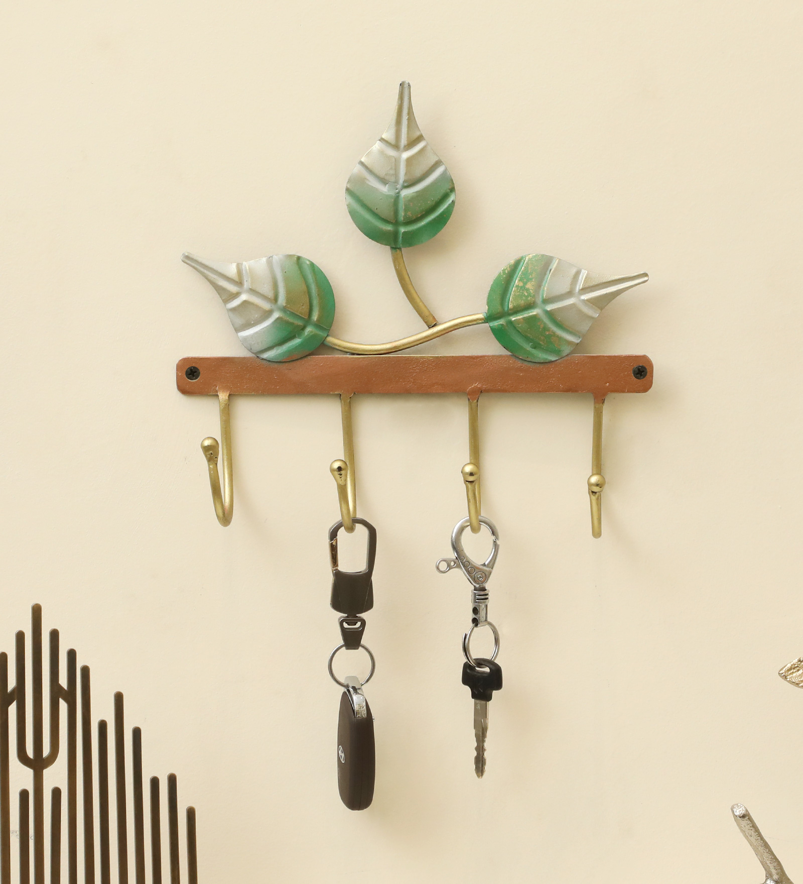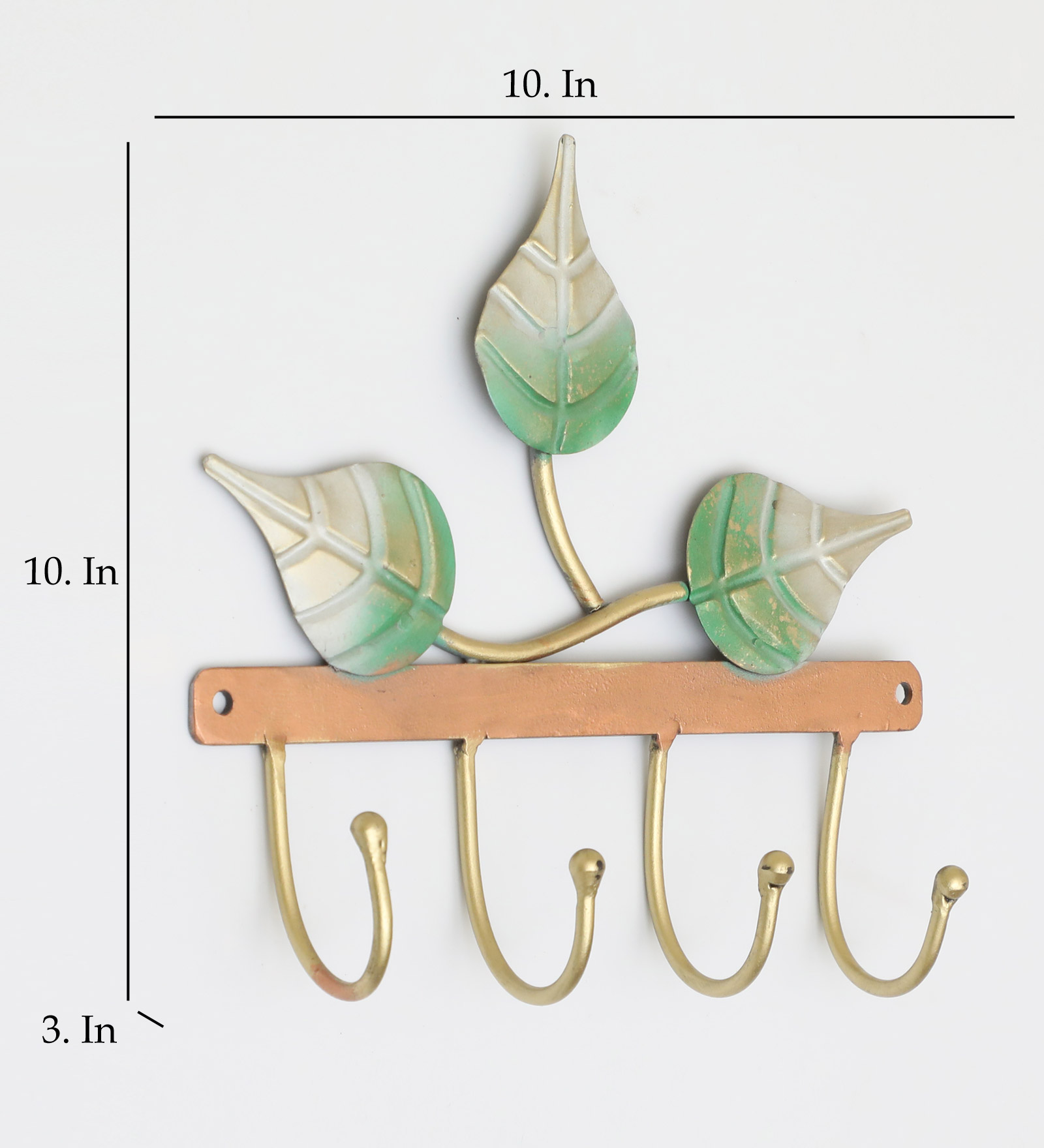 Theo Leaf Metal Wall Hooks for Keys | 4-Hook Holder