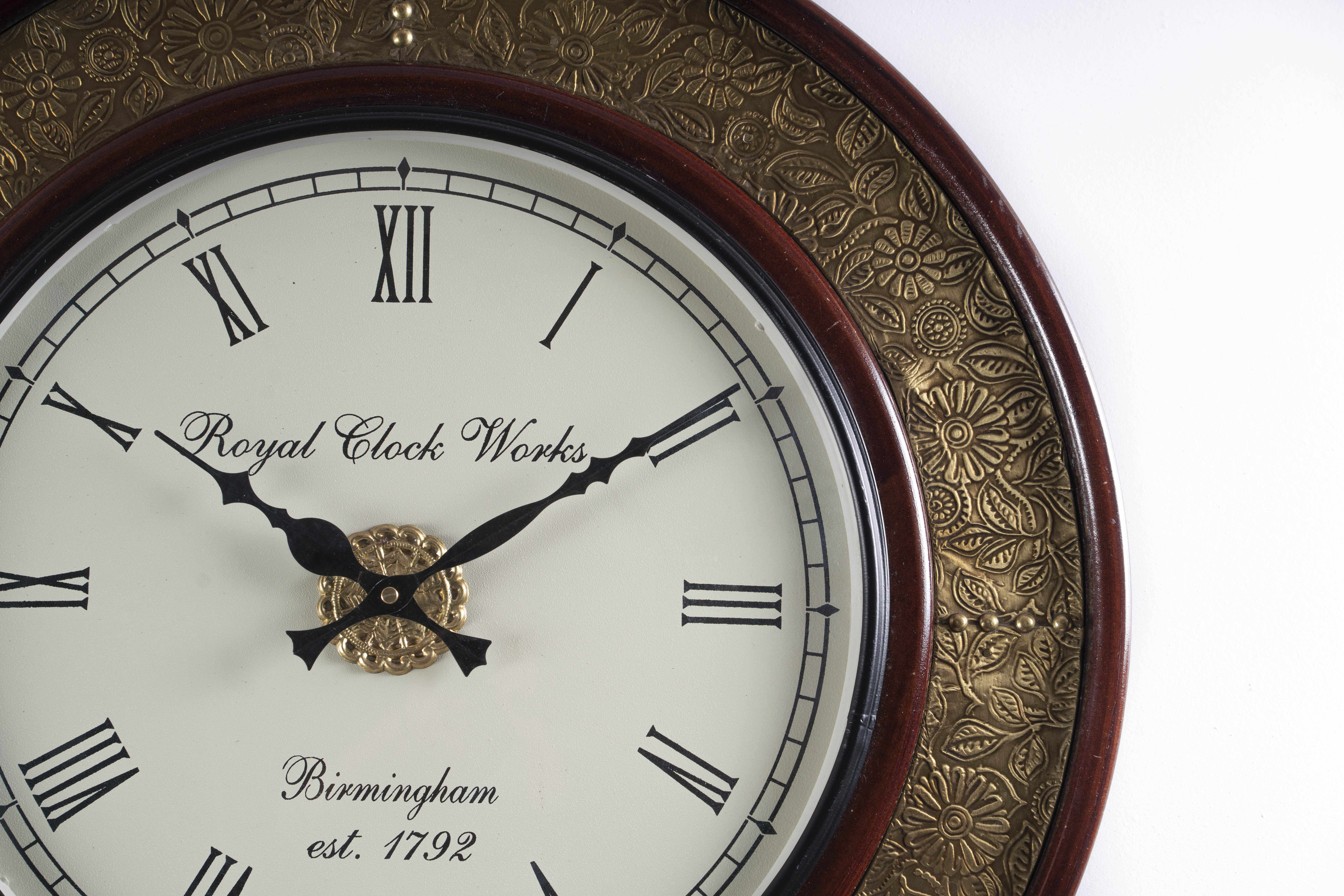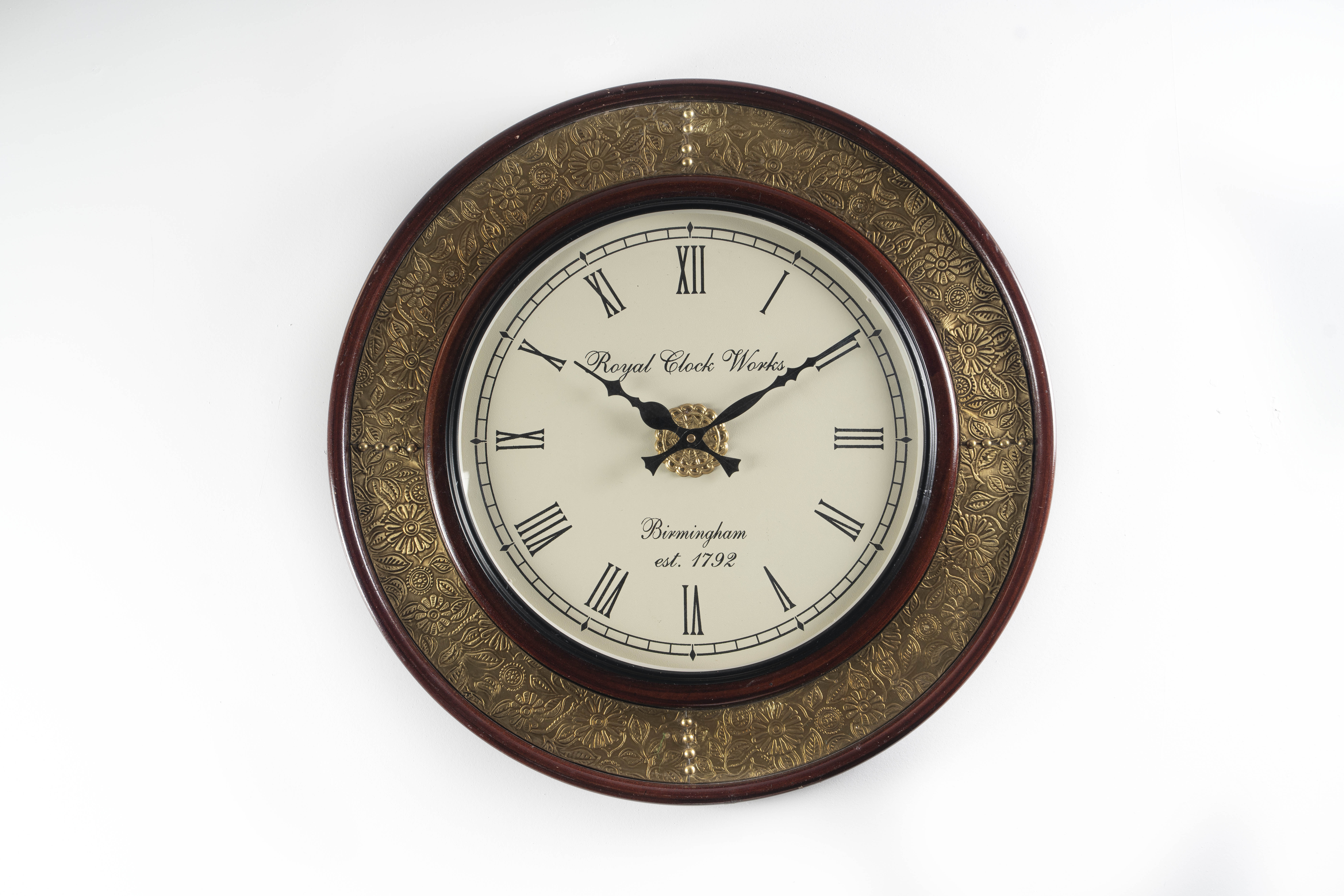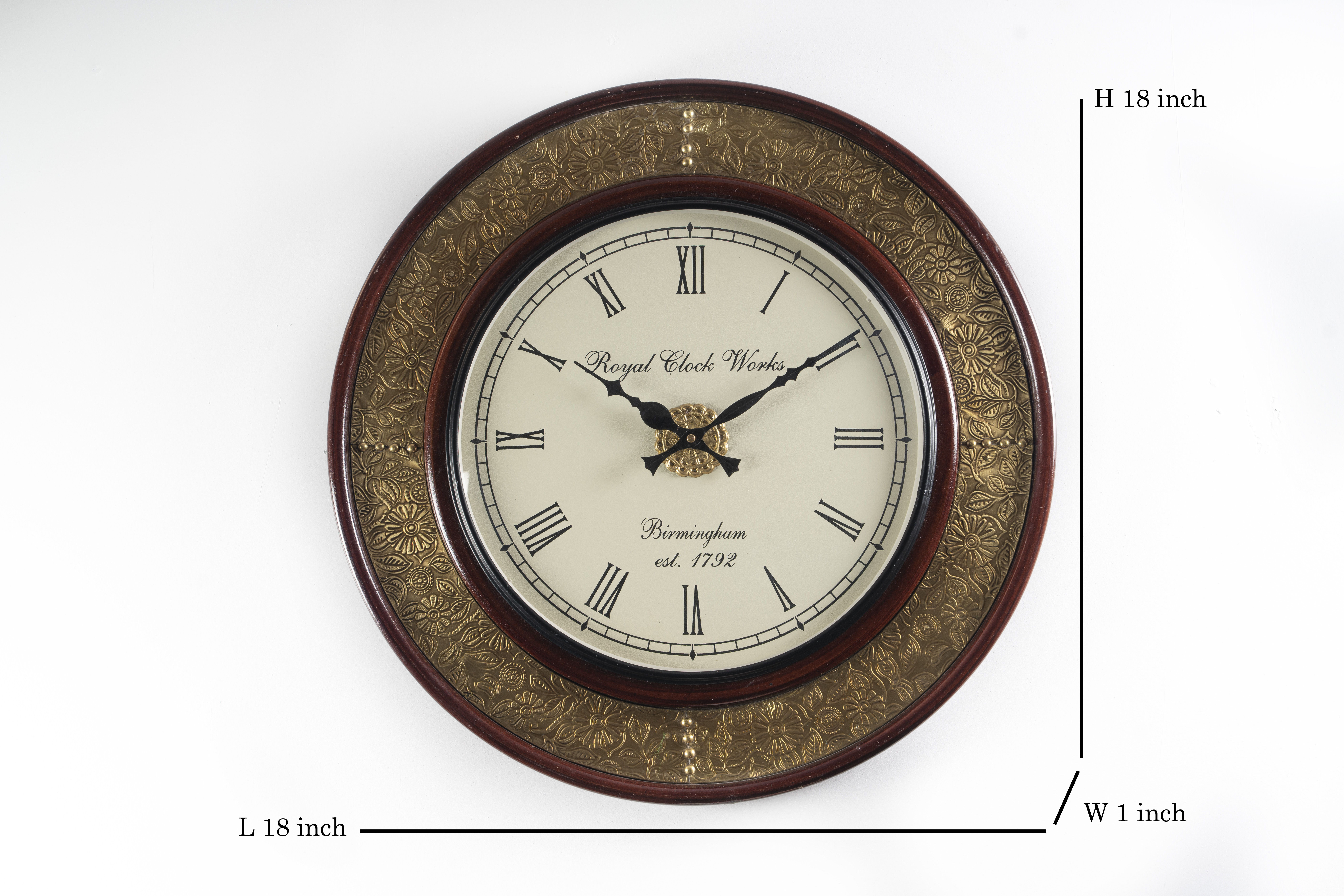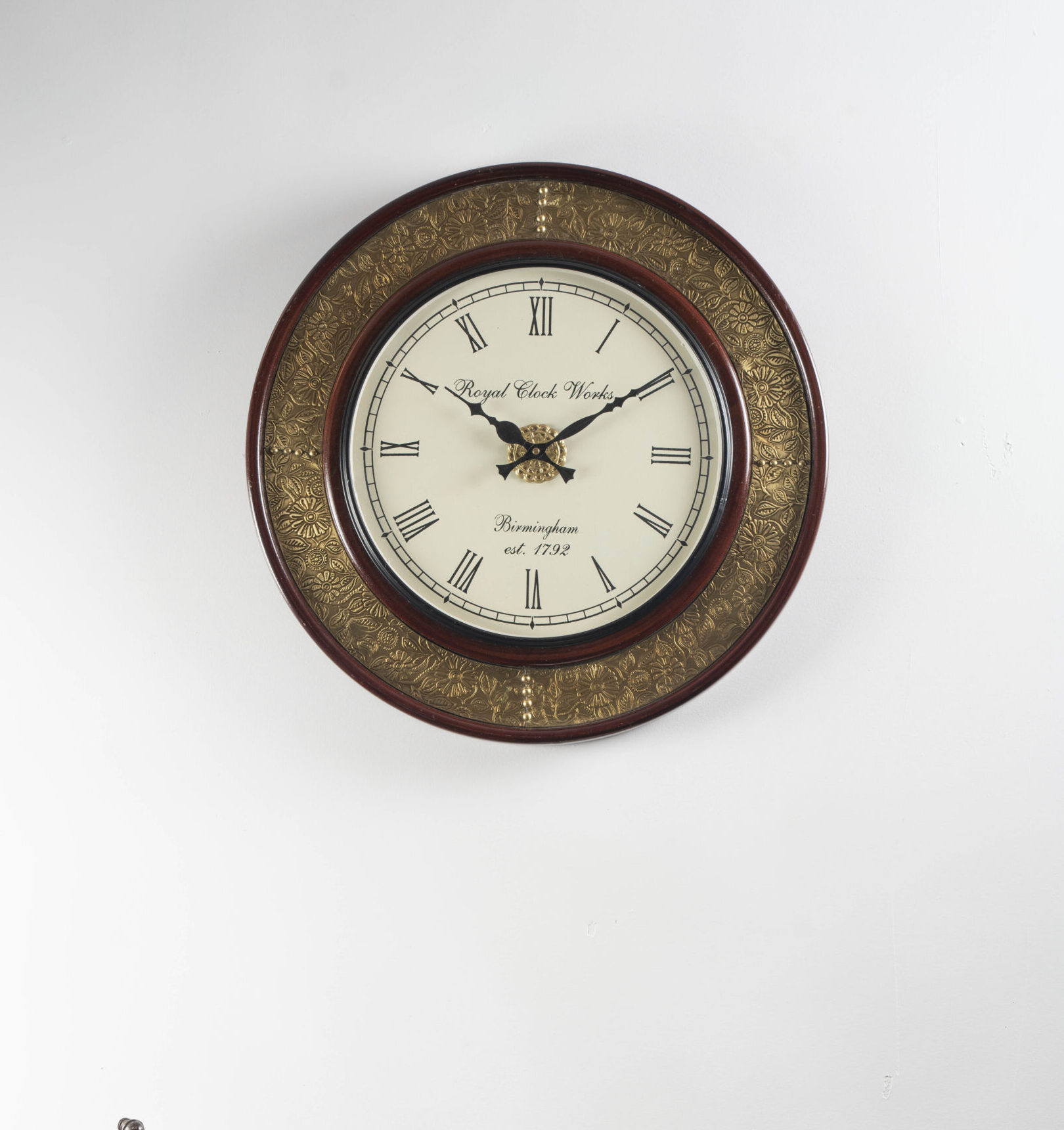 Idika Heritage Wooden Polished and Brass Metal Fit Wall Clock