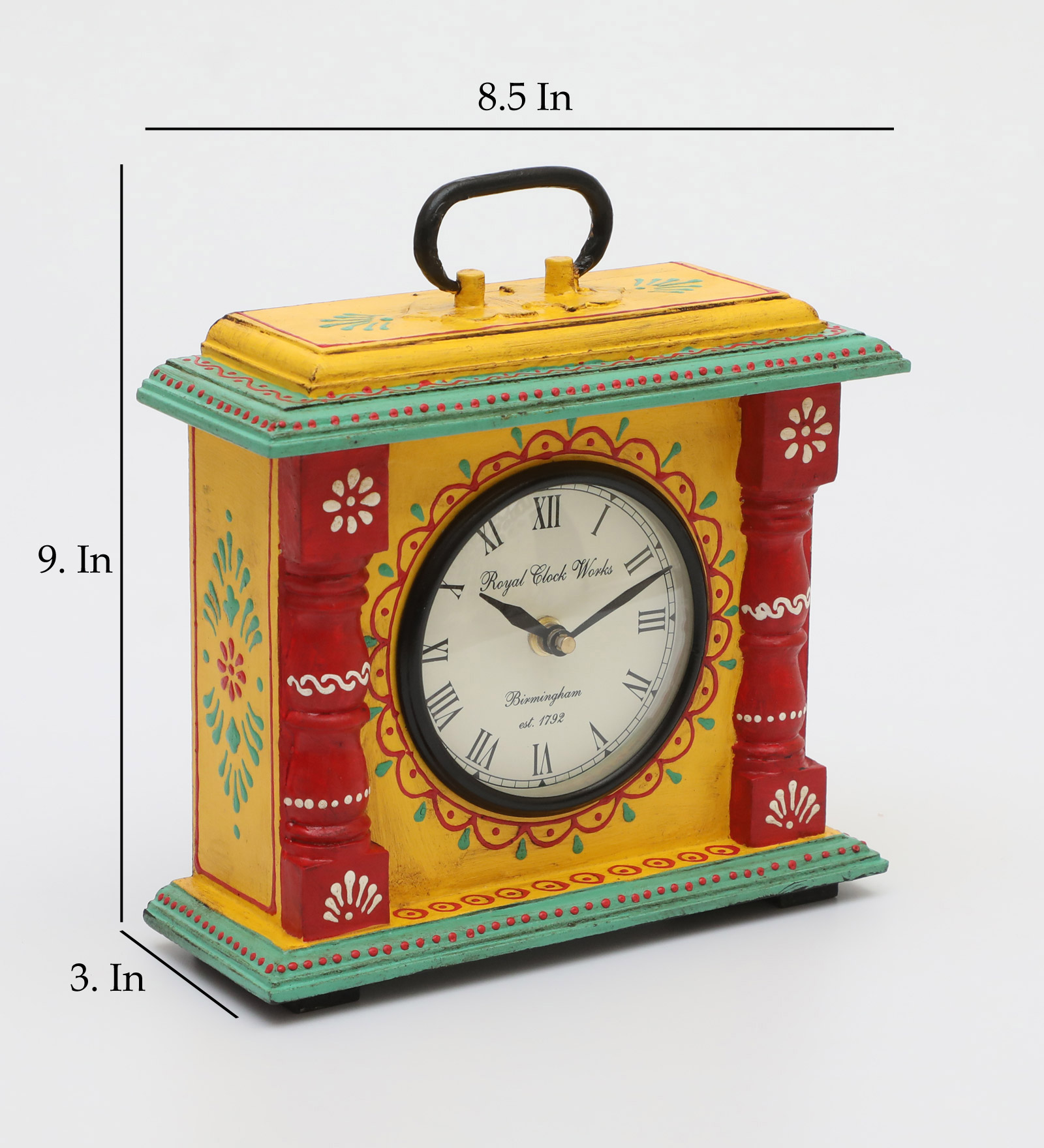 Elevate your home decor with the Kyoto Handpainted Wooden Silent Non-Ticking Table Clock, a stunning blend of functionality and artistry. Featuring a vibrant yellow base adorned with a unique red and green design, this clock not only keeps you on time but also serves as a captivating centerpiece for any room. Its silent mechanism ensures a peaceful environment, making it perfect for bedrooms, offices, or living spaces. Crafted with care, this clock is a timeless addition that reflects your style while enhancing your space.