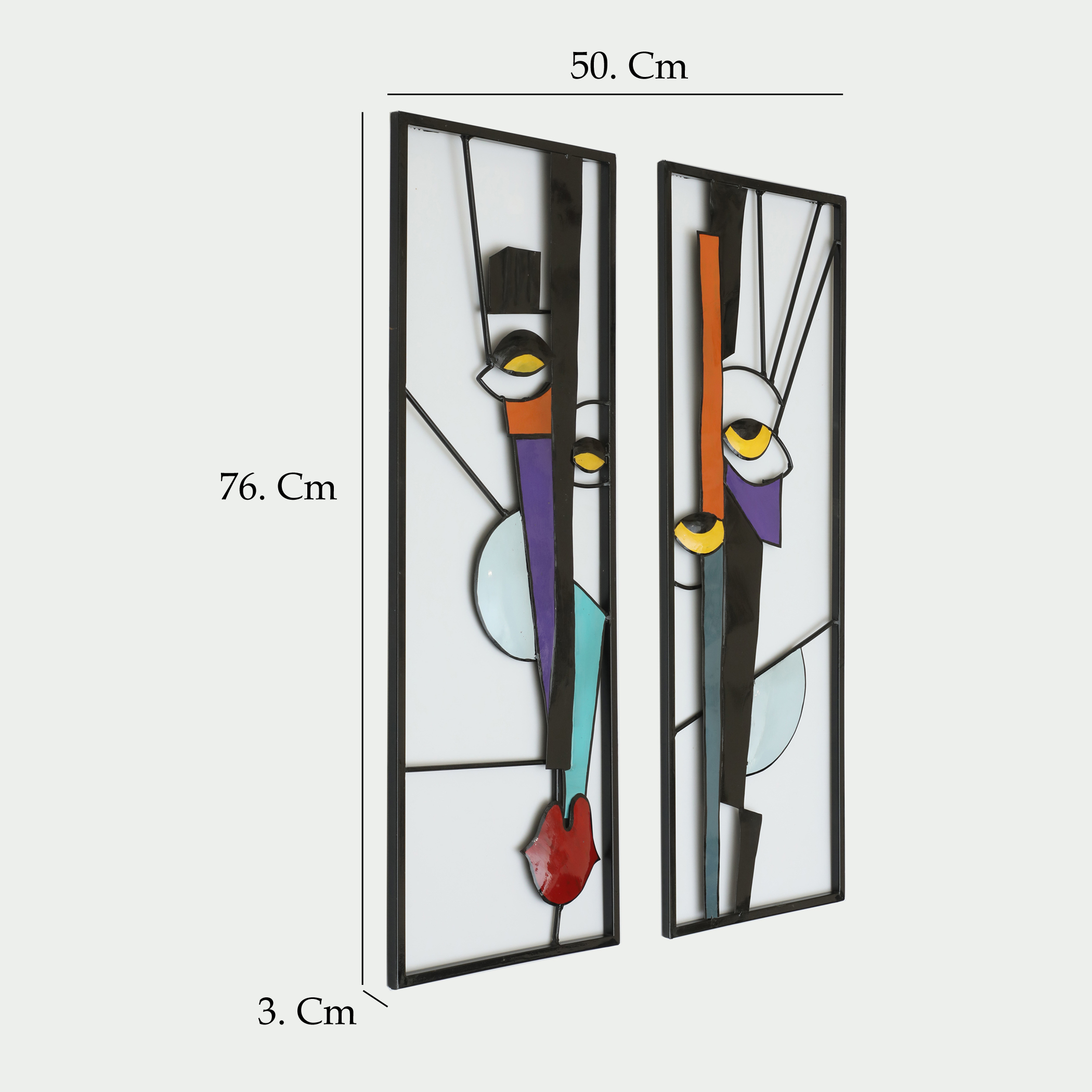 Transform your living space with this striking Vedas Multicolor Metal Akina Wall Decor. This contemporary wall sculpture, measuring 25.4 x 76.2 centimetres, features an abstract artistic design rendered in vibrant colours including purple, turquoise, orange, and red, all framed within a sleek black metal frame. The modern geometric composition creates an eye-catching visual interest with its clean lines and bold shapes, making it a perfect accent piece for any room. This versatile wall art seamlessly blends with various interior styles and can be mounted in your living room, bedroom, dining area, or hallway to add a sophisticated touch to your décor. The metal construction ensures durability while maintaining a lightweight profile for easy installation. The unique design combines artistic elements with architectural influences, creating a conversation-starting piece that adds depth and character to your walls.