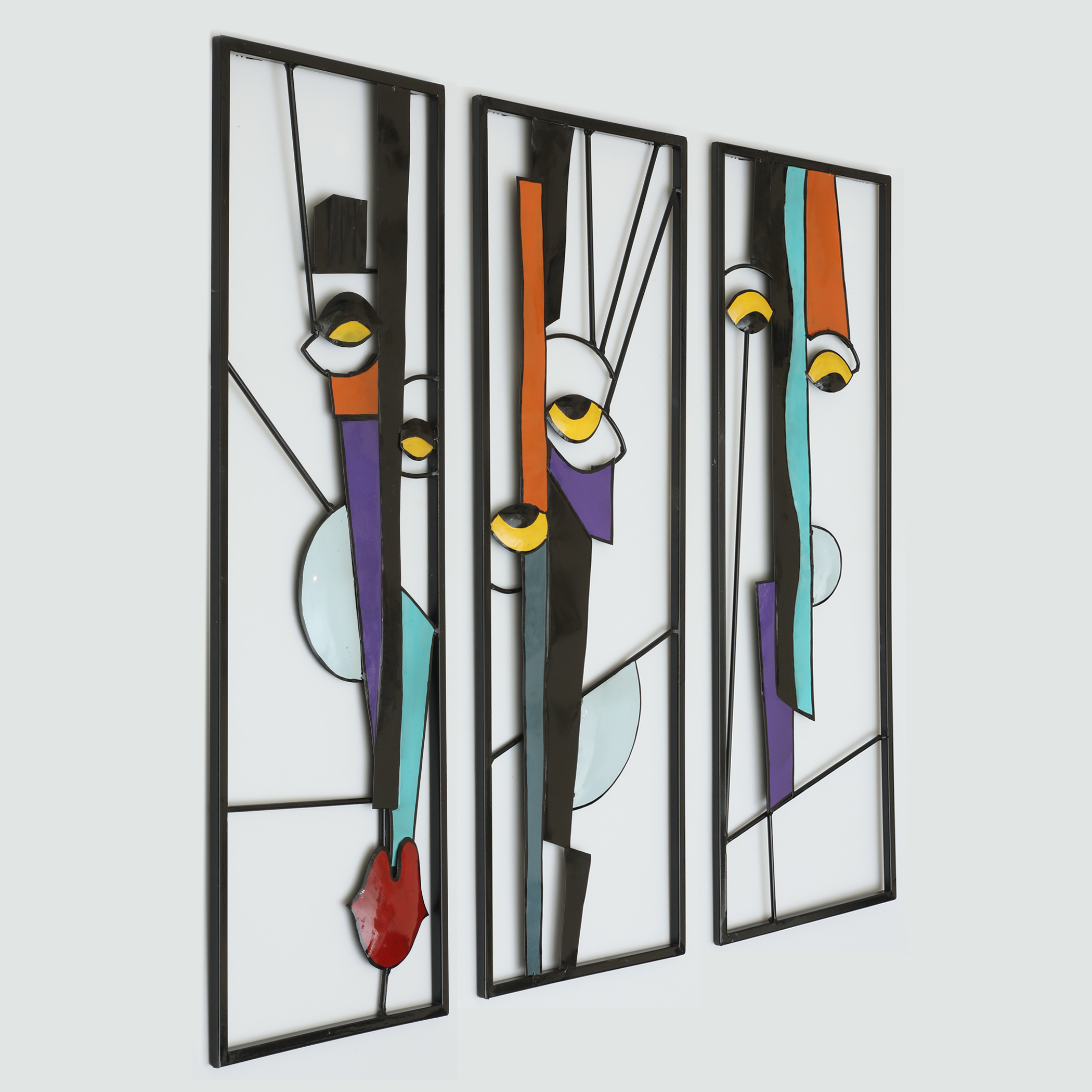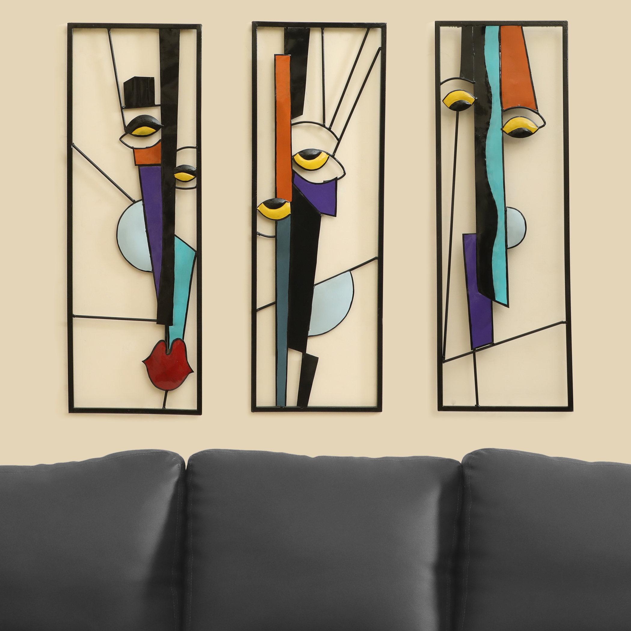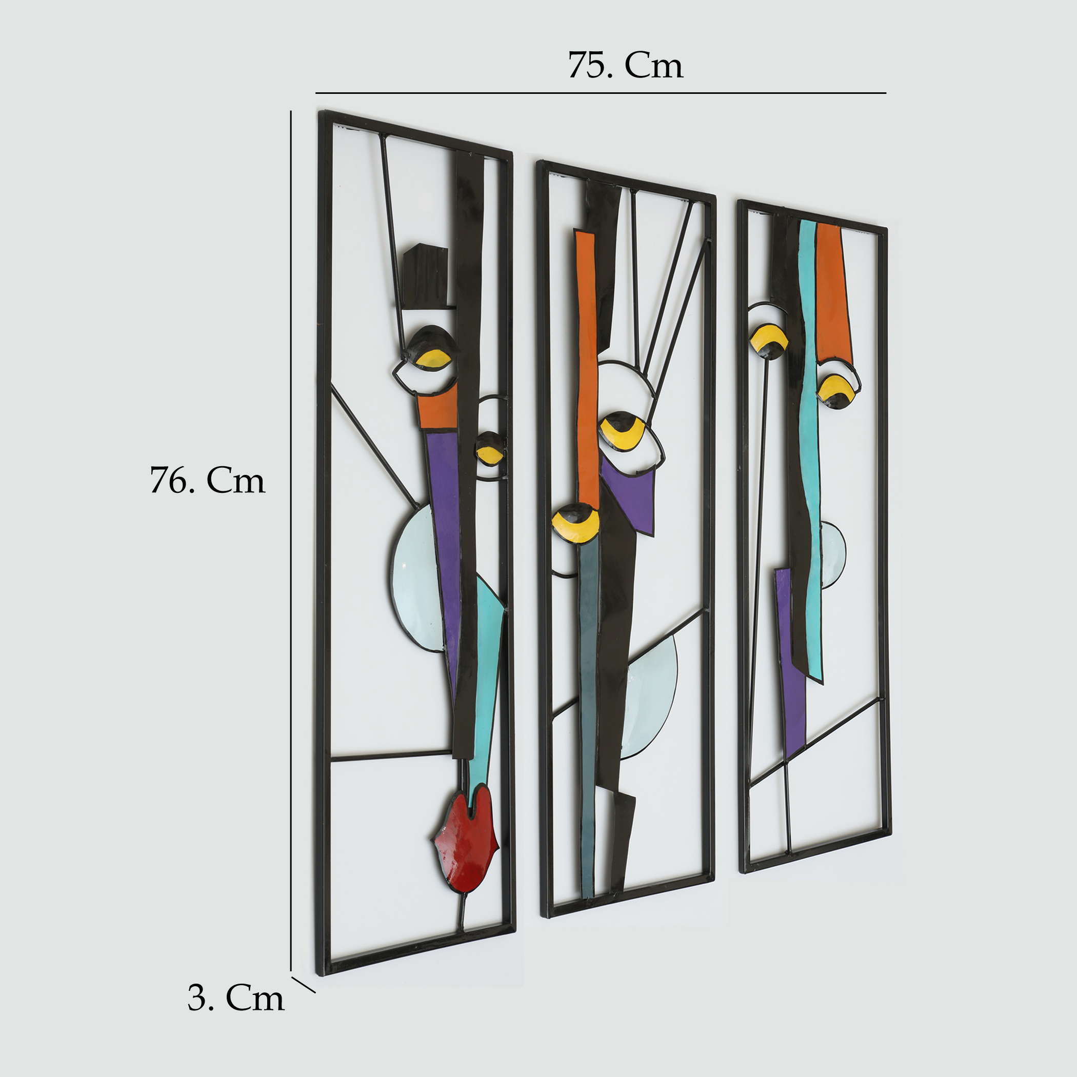 Transform your living space with this striking Vedas Multicolor Metal Akina Wall Decor. This contemporary wall sculpture, measuring 25.4 x 76.2 centimetres, features an abstract artistic design rendered in vibrant colours including purple, turquoise, orange, and red, all framed within a sleek black metal frame. The modern geometric composition creates an eye-catching visual interest with its clean lines and bold shapes, making it a perfect accent piece for any room. This versatile wall art seamlessly blends with various interior styles and can be mounted in your living room, bedroom, dining area, or hallway to add a sophisticated touch to your décor. The metal construction ensures durability while maintaining a lightweight profile for easy installation. The unique design combines artistic elements with architectural influences, creating a conversation-starting piece that adds depth and character to your walls.