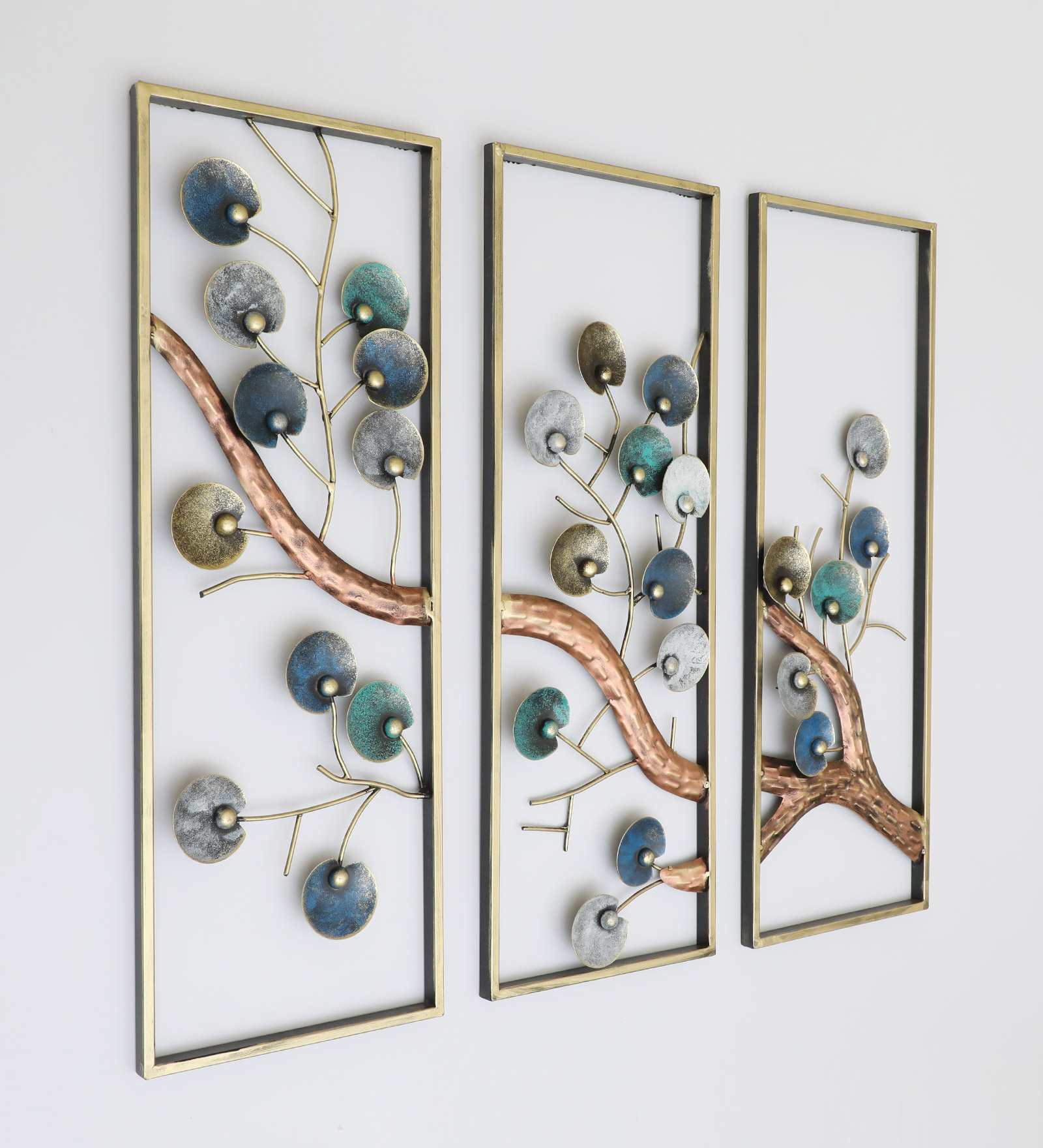 Elevate your home decor with the Metal Alexa Three Tree Frame Wall Decor, featuring a stunning trio of metal wall art pieces adorned with exquisite blue and gold leaves. This elegant design effortlessly combines modern aesthetics with a touch of nature, making it a perfect focal point for any room. Crafted from high-quality metal, these durable pieces are not only visually striking but also easy to hang, allowing you to transform your space in minutes. Bring a sense of tranquility and sophistication to your walls with this captivating decor that complements a variety of interior styles.