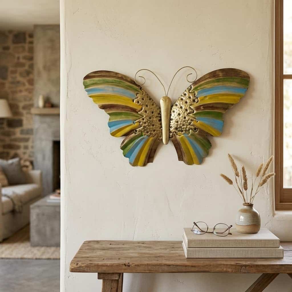Vedas Exports Metal Butterfly Wall Decor for Living Room – Multicolour Iron Wall Art Hanging – Modern Wall Decoration for Home, Bedroom, Office (19 x 19 Inch)