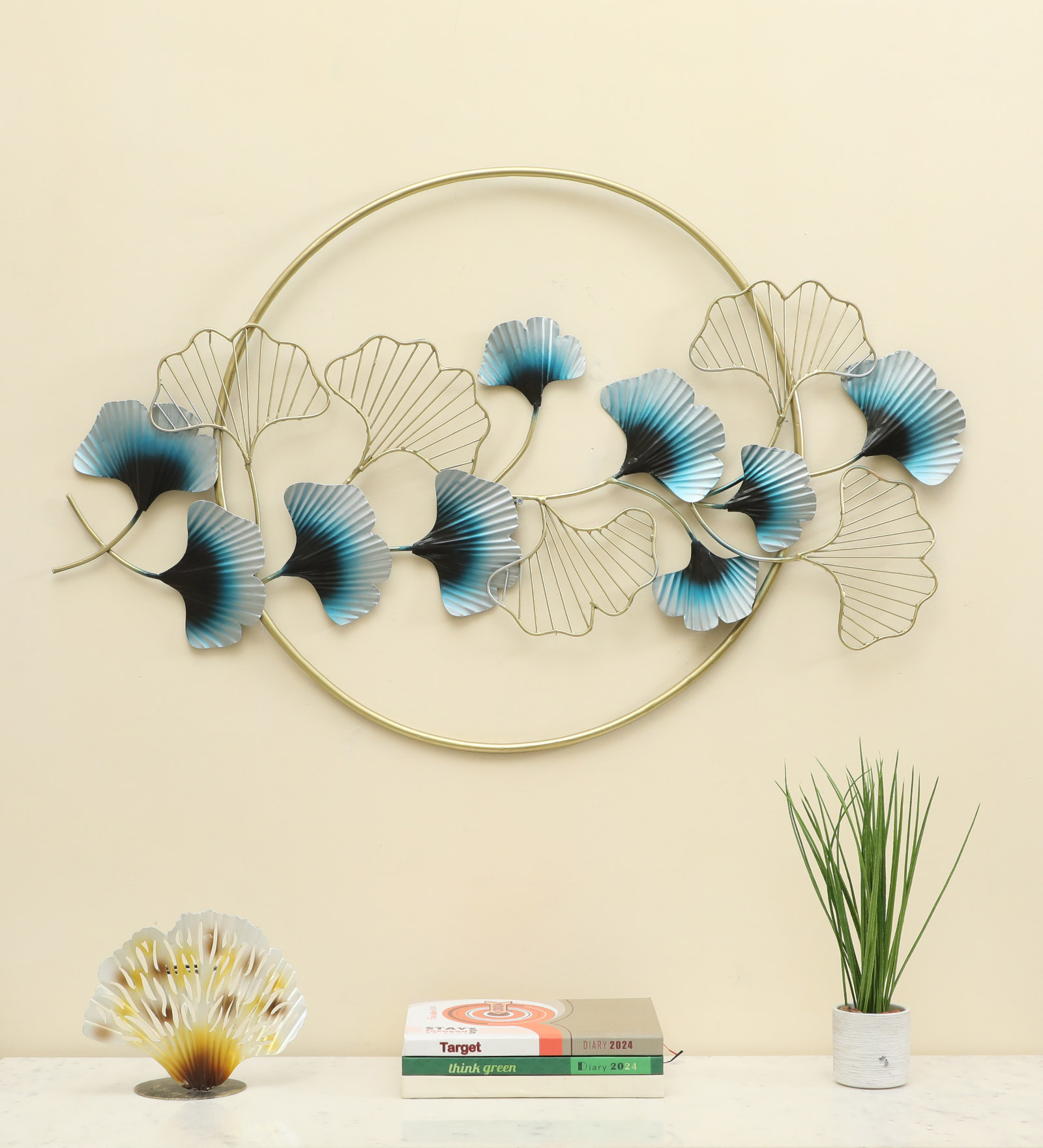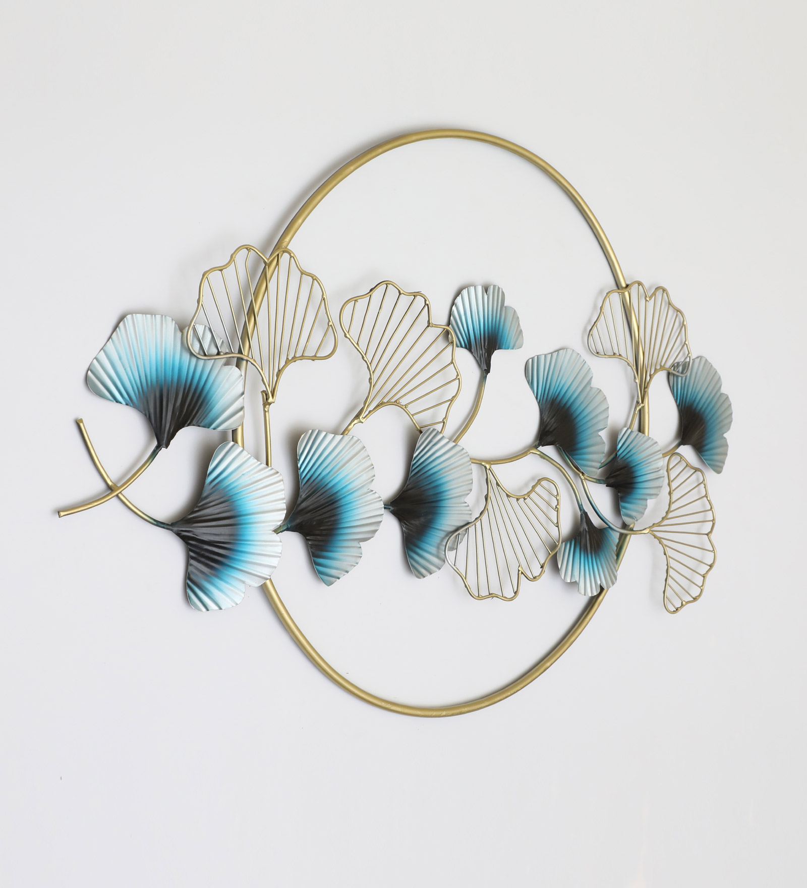 Elevate your home decor with the Metal Maanav Ginko Leaves Wall Decor, a stunning wall hanging that beautifully combines blue and gold hues. This exquisite piece features intricately designed ginkgo leaves, symbolizing resilience and harmony, making it a perfect addition to any living space. Crafted from high-quality metal, it offers durability while adding a touch of elegance to your walls. Transform your home into a serene oasis with this captivating decor that effortlessly complements both modern and traditional interiors.