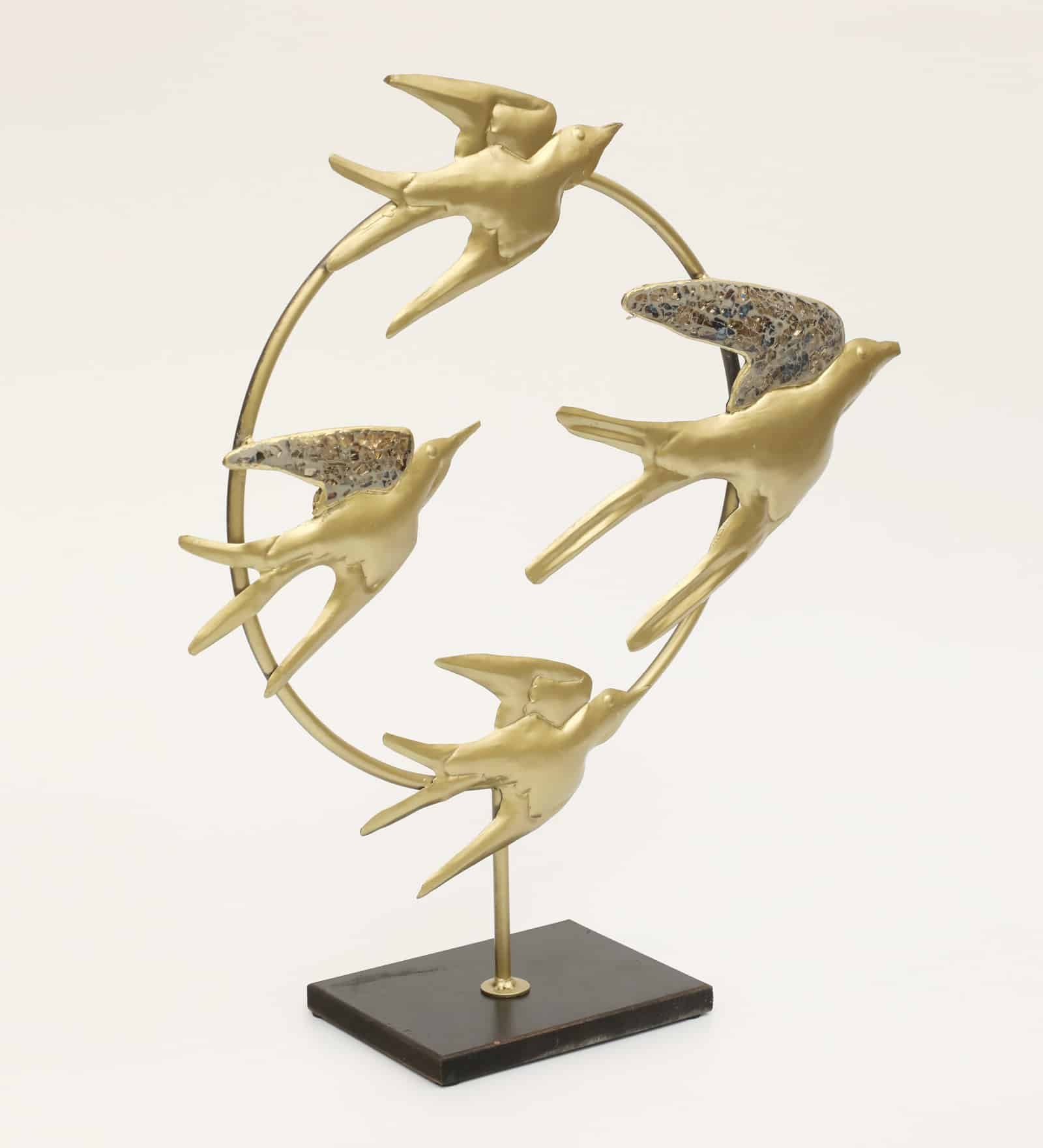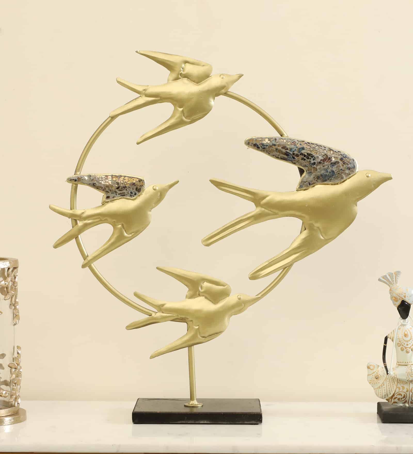 Metal & MDF Gold Shine Flying Bird Showpiece Table Decor
