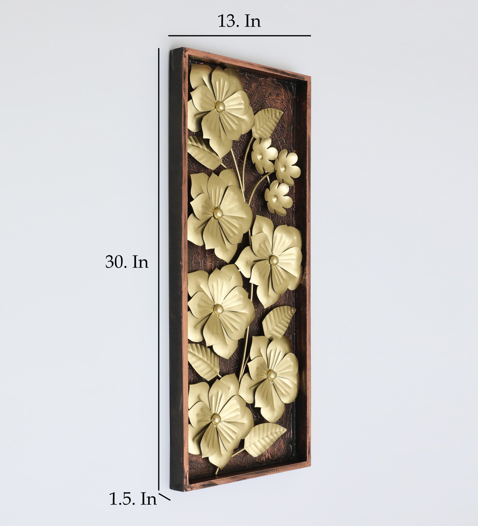 Elevate your home decor with the stunning Metal & MDF Jonas Flower Wall Frame, a captivating wooden wall hanging adorned with exquisite gold flowers. This elegant piece effortlessly combines natural beauty with modern design, making it a perfect focal point for any room. Crafted from high-quality materials, it offers durability while adding a touch of sophistication to your space. Ideal for living rooms, bedrooms, or entryways, this wall frame not only enhances your decor but also brings a sense of warmth and charm to your home. Transform your walls into a work of art with this enchanting floral design.