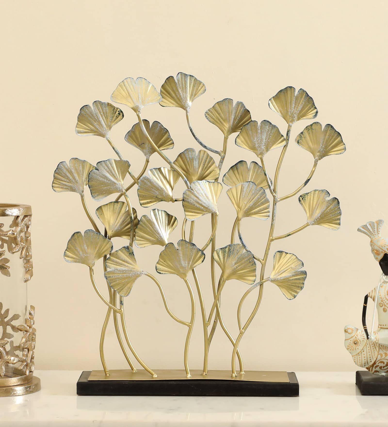 Metal & MDF Multicolor Amora Bunch Ginko Showpiece Table Decor