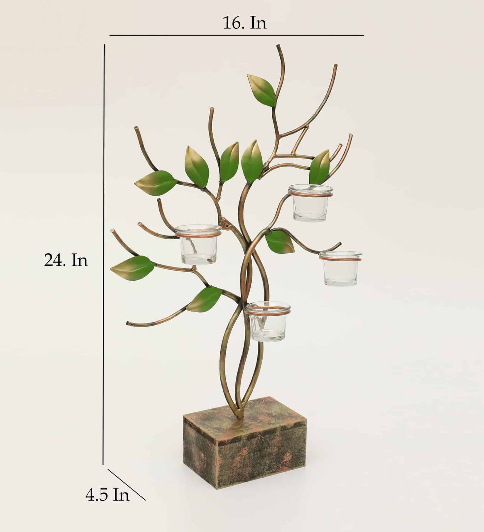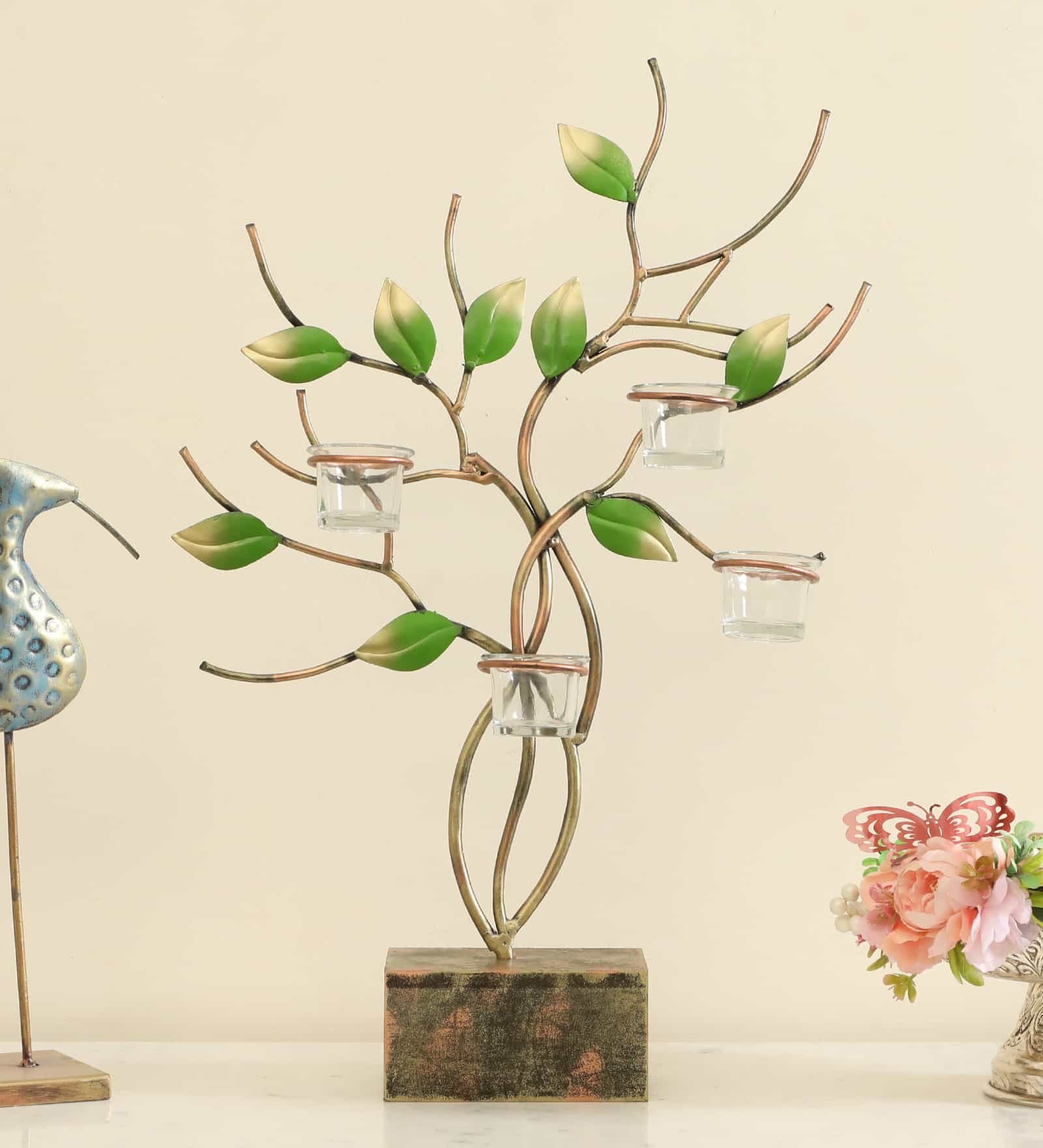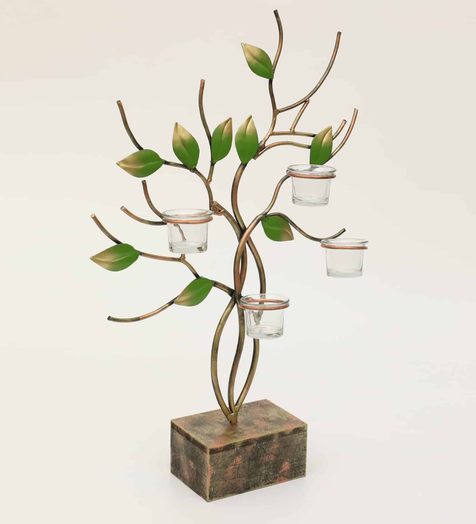 Metal & MDF Multicolor Ganak Leaves with T-Lights Candle Holder Showpiece Table Decor