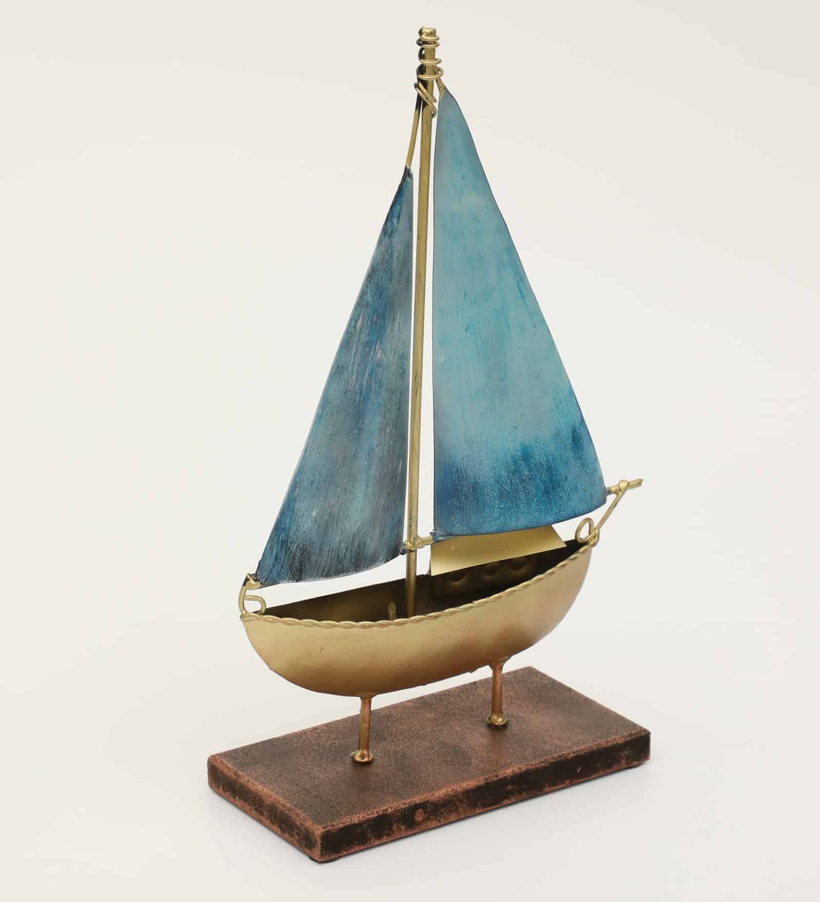 Metal & MDF Multicolor Hope Boat Showpiece Table Decor