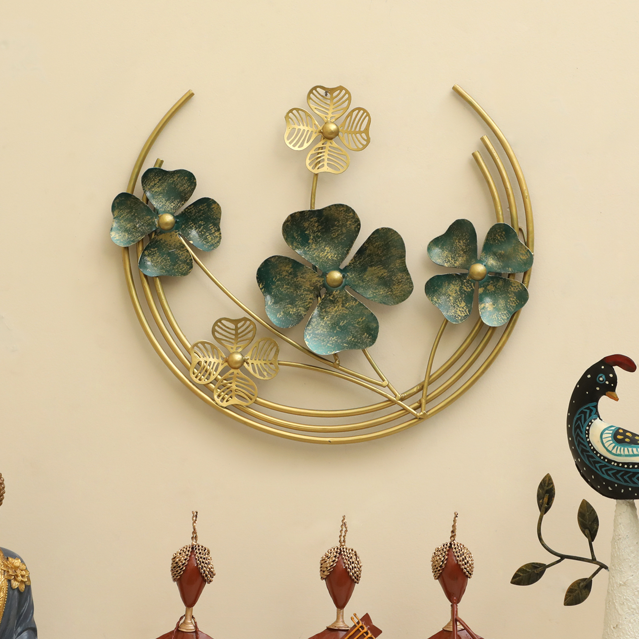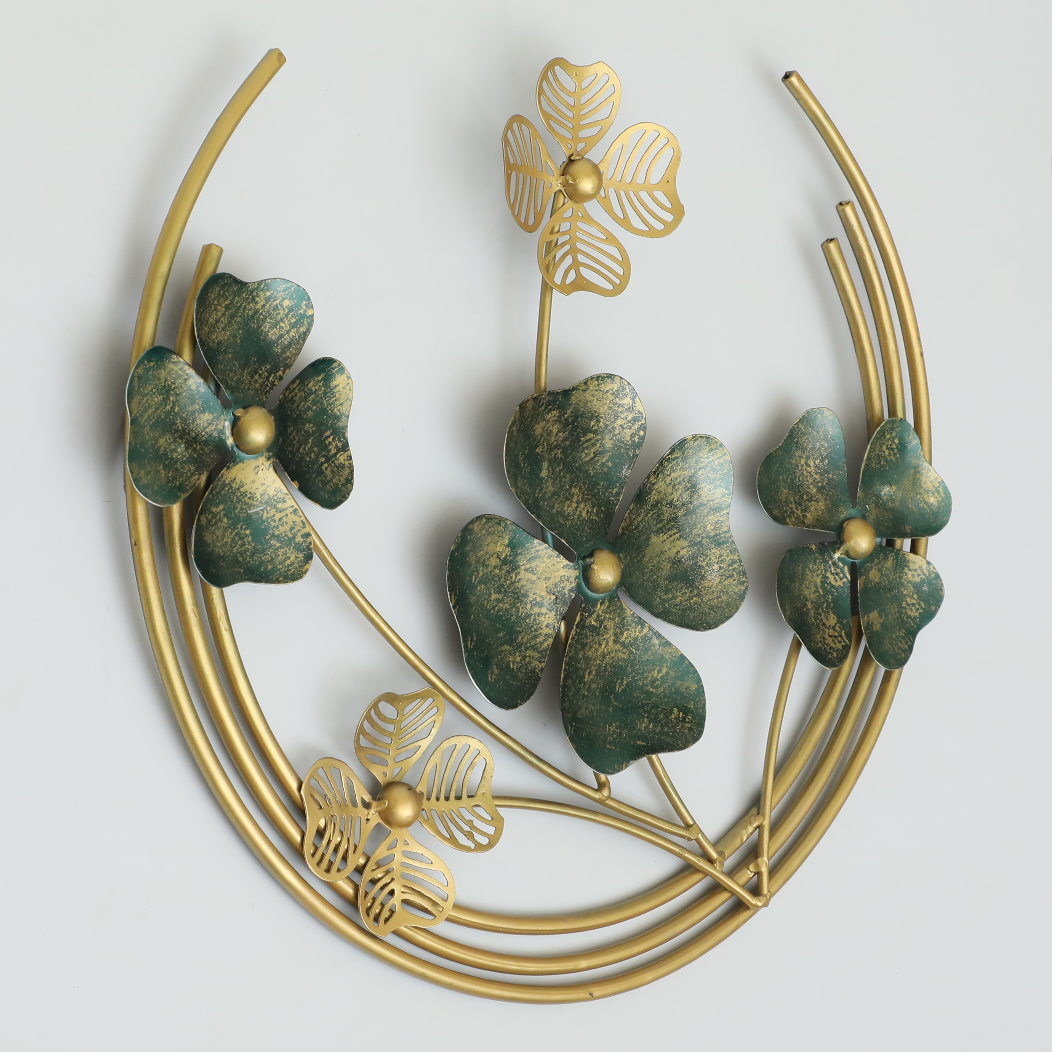 - ARTISTIC DESIGN: Features a graceful arrangement of metal flowers with detailed leaf patterns set against curved golden stems in a circular frame