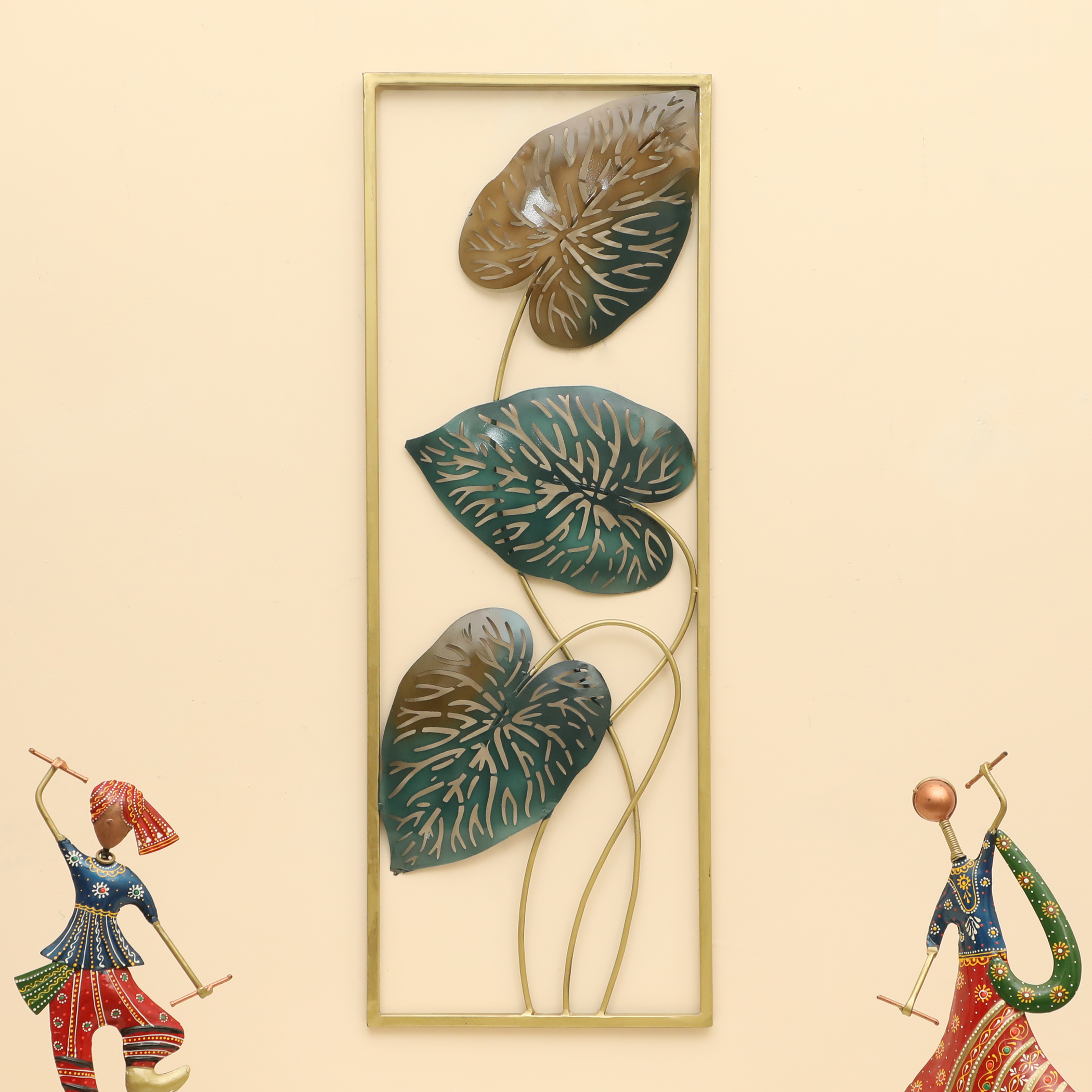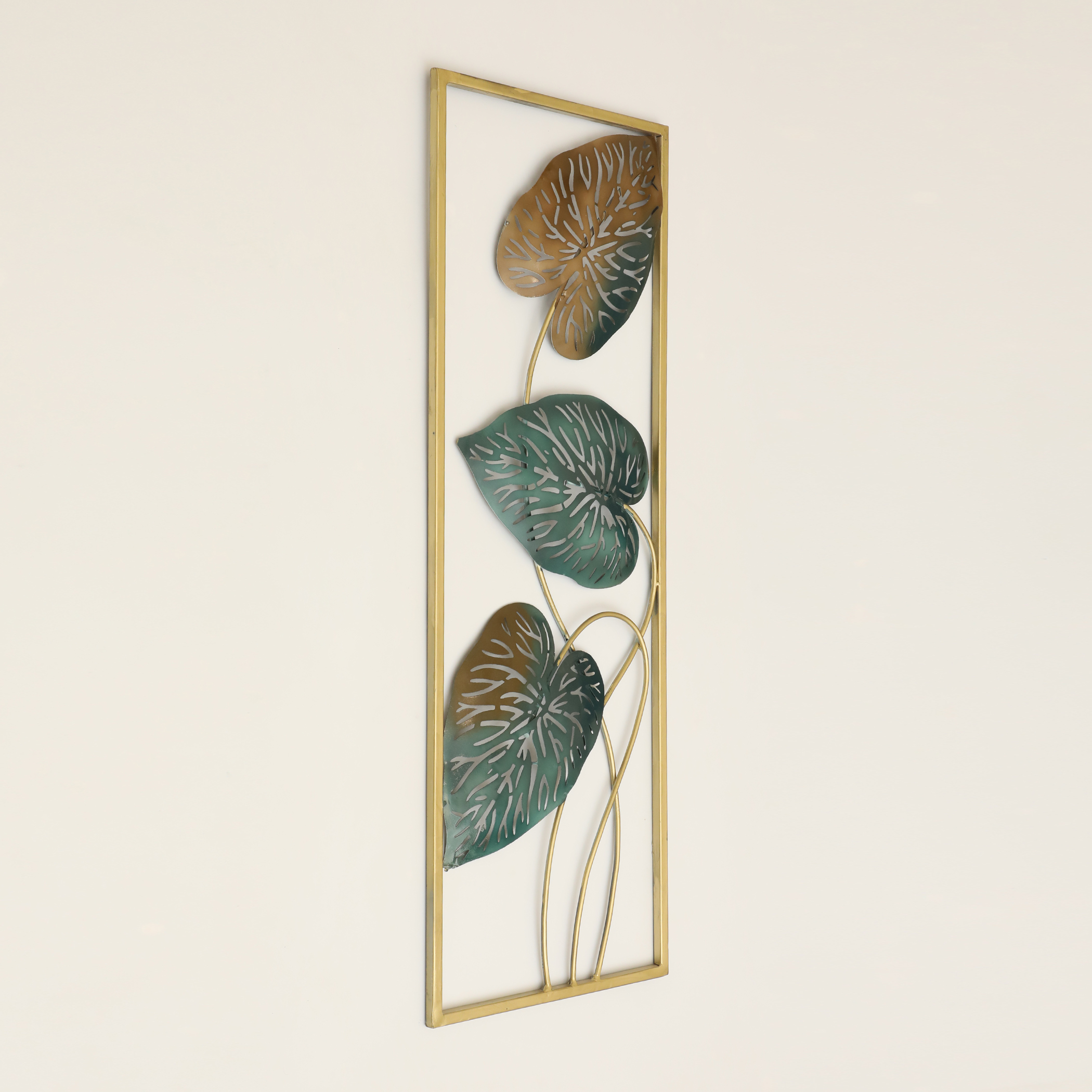 - Artistic Design: This metal wall frame features a stylish and artistic design with three decorative leaves in multicolour shades of brown and green.