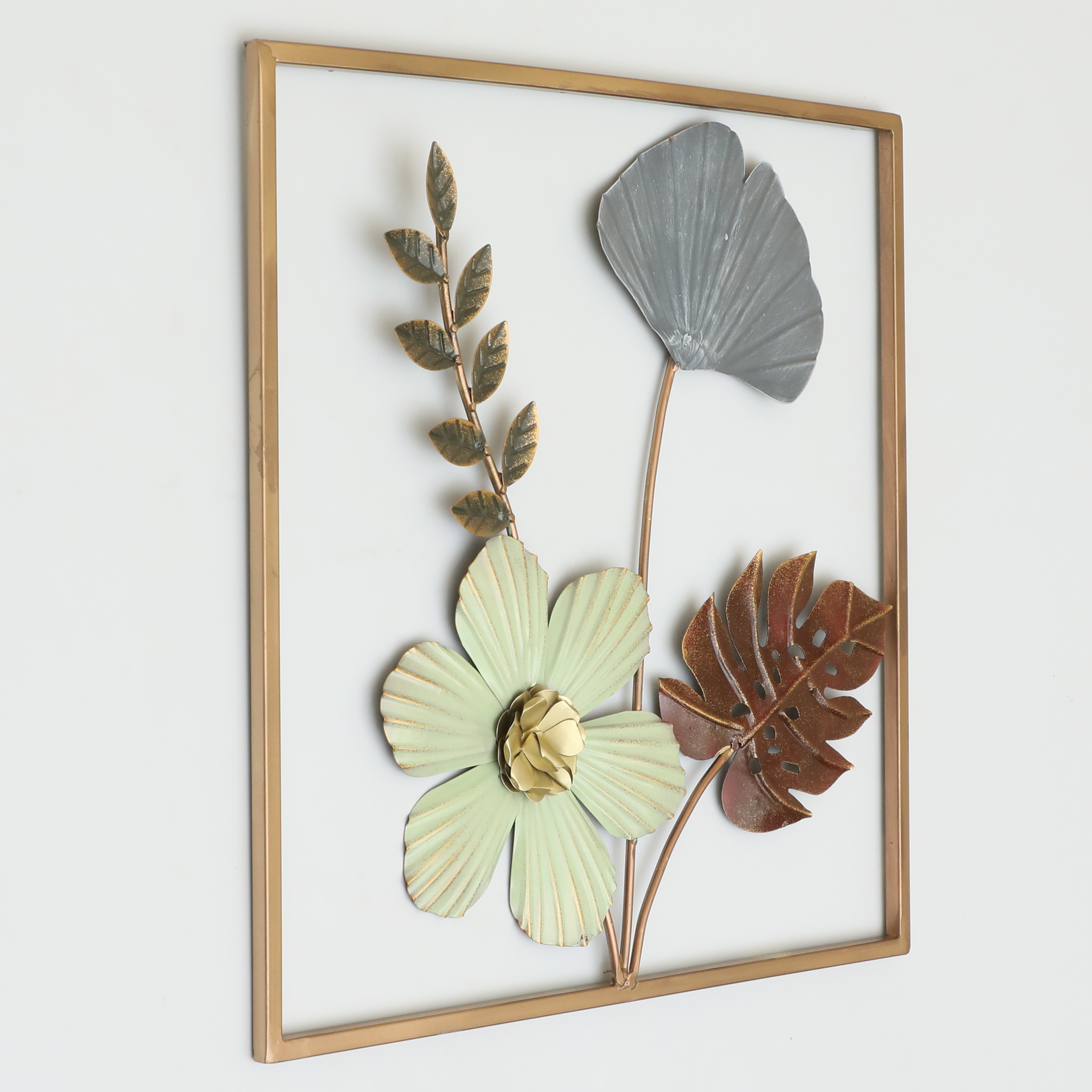 - DESIGN ELEMENTS: Beautiful metal wall frame featuring a delicate arrangement of leaves in multicolour finish with textured and smooth surfaces