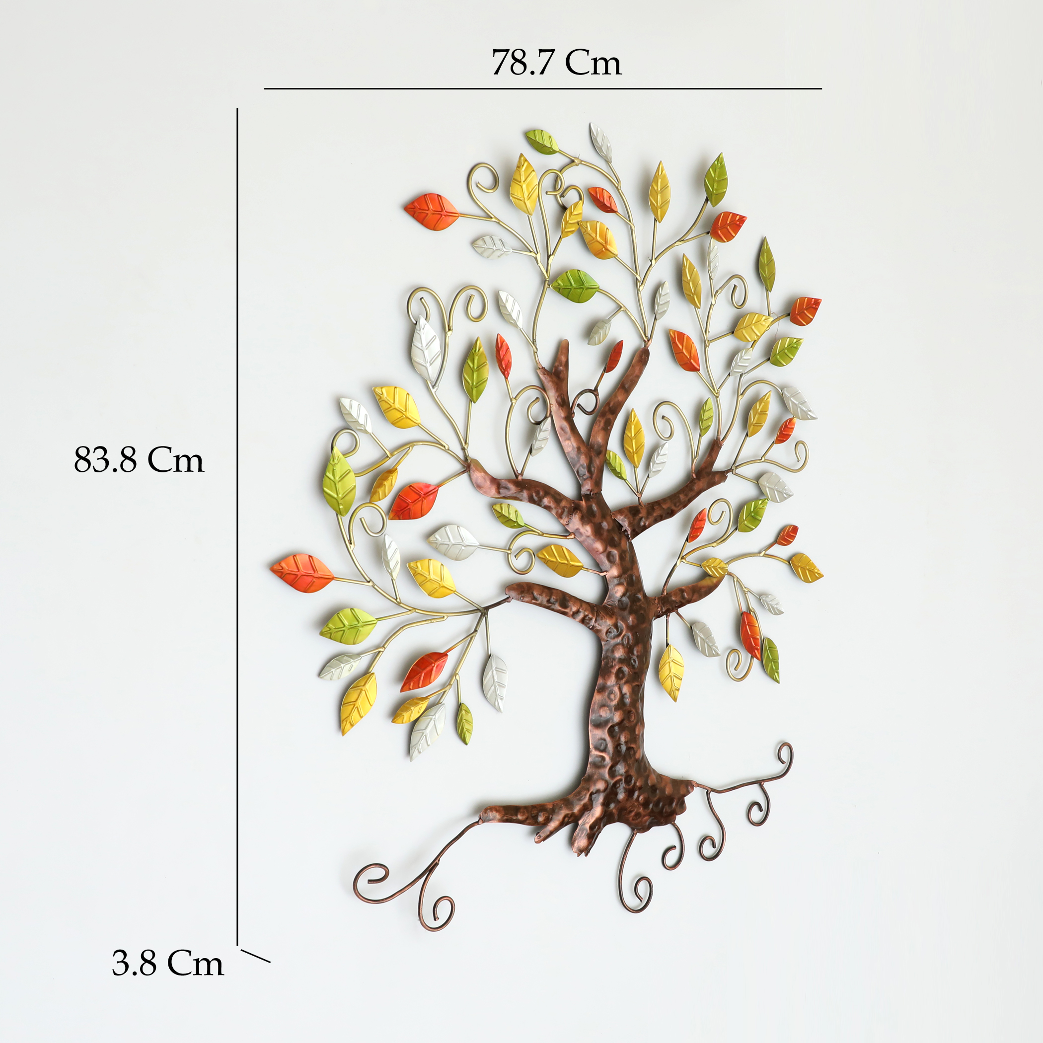 Transform your living space with this exquisite Tanvi Tree Wall Decor, a stunning piece of metal artistry that measures 78.7 x 83.8 cm. The magnificent tree design features a rustic brown trunk that branches out into a canopy of gleaming golden leaves, creating a mesmerising visual display. Each metallic leaf is intricately crafted, catching and reflecting light to add depth and dimension to your walls. This versatile wall sculpture is perfect for various settings, from living rooms and bedrooms to dining areas and hotel lobbies. The sophisticated blend of colours and textures makes it an ideal focal point for any wall, while its substantial size ensures it commands attention without overwhelming the space. The durable metal construction ensures longevity, while the ready-to-mount design allows for straightforward installation. Add a touch of natural elegance to your interior décor with this contemporary interpretation of the tree of life motif.