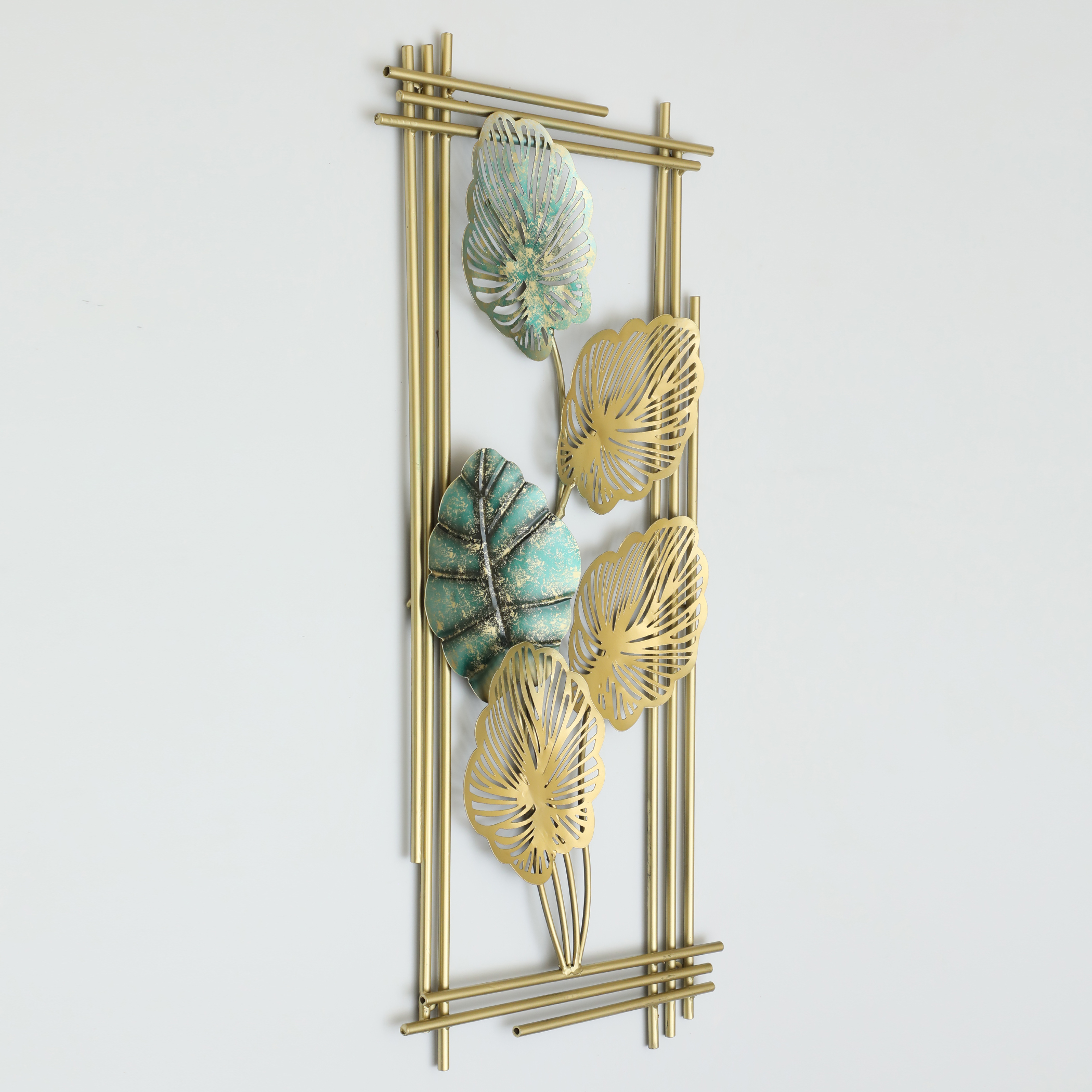 - ARTISTIC DESIGN: Features five decorative metal leaves arranged in an asymmetrical pattern within a sophisticated geometric frame