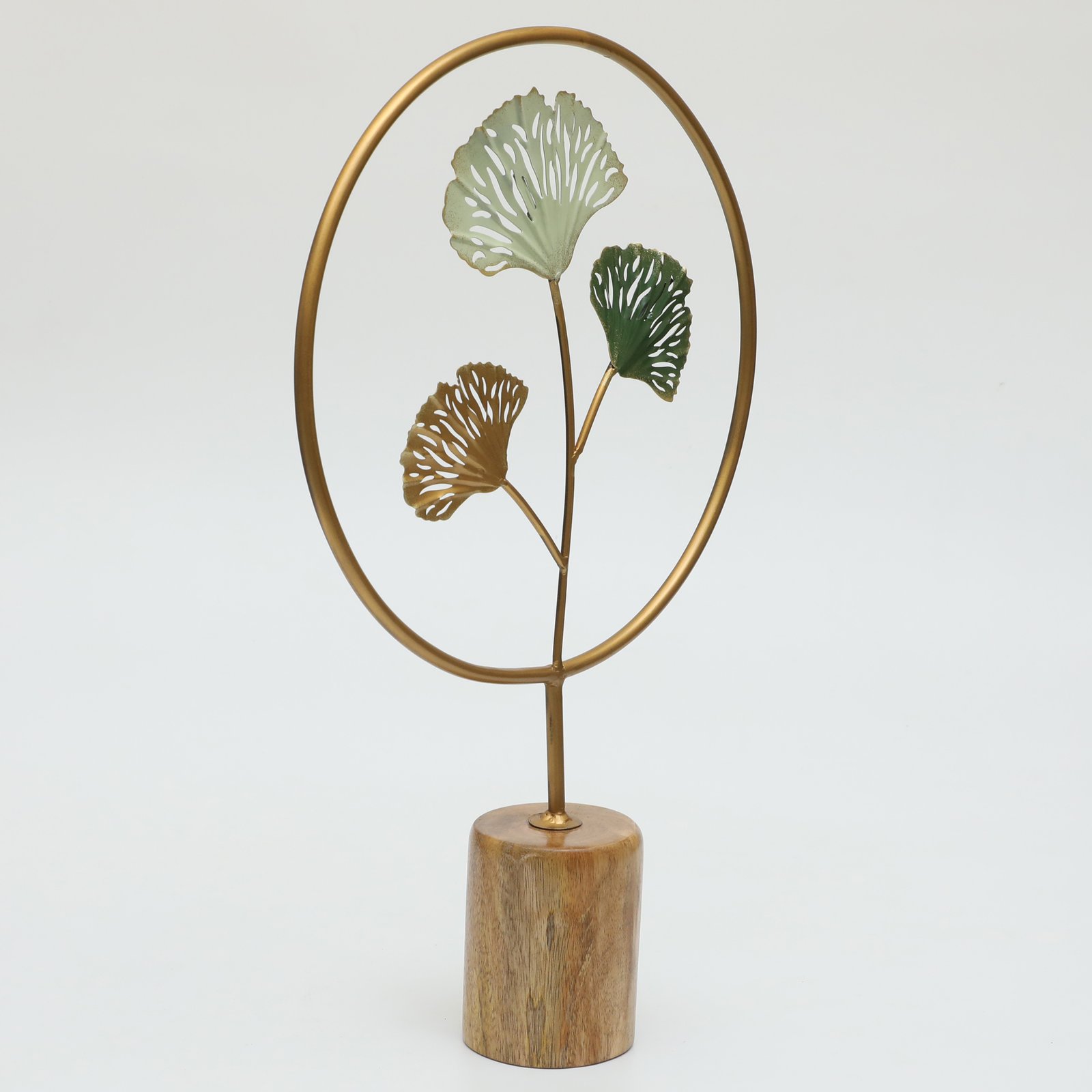Metal & Wood Aria 3 Ginko Leafs Figurine Showpiece Table Decor