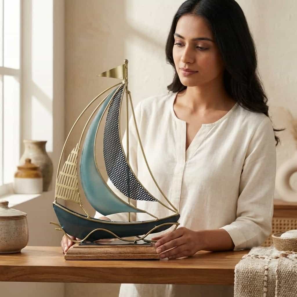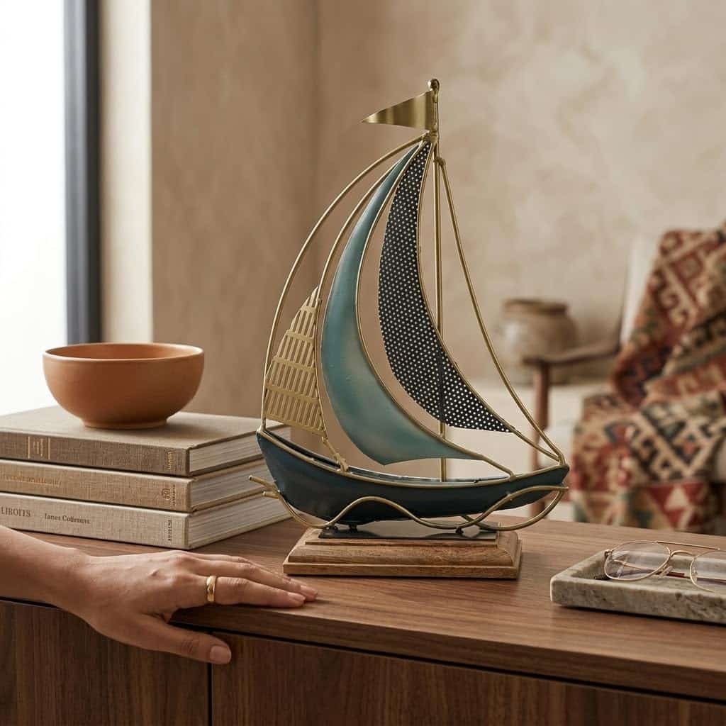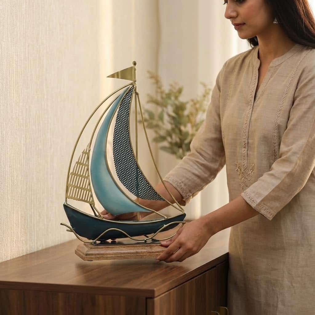Be the first to review “Vedas Exports Metal & Wood Boat Ship Showpiece for Home Decor – Table Decor Item for Living Room, Office Desk, Bedroom – Decorative Ship Model Gift Item (12 x 17 Inch)” Cancel reply