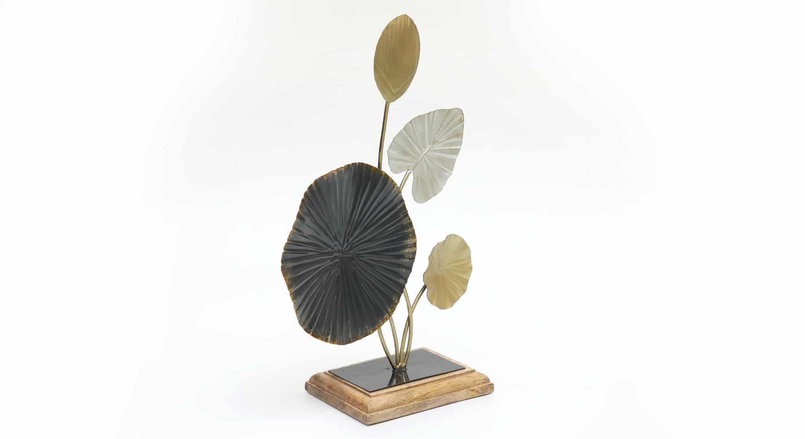 Metal & Wood Multicolor Citadel Abstract Leaf Showpiece Table Decor