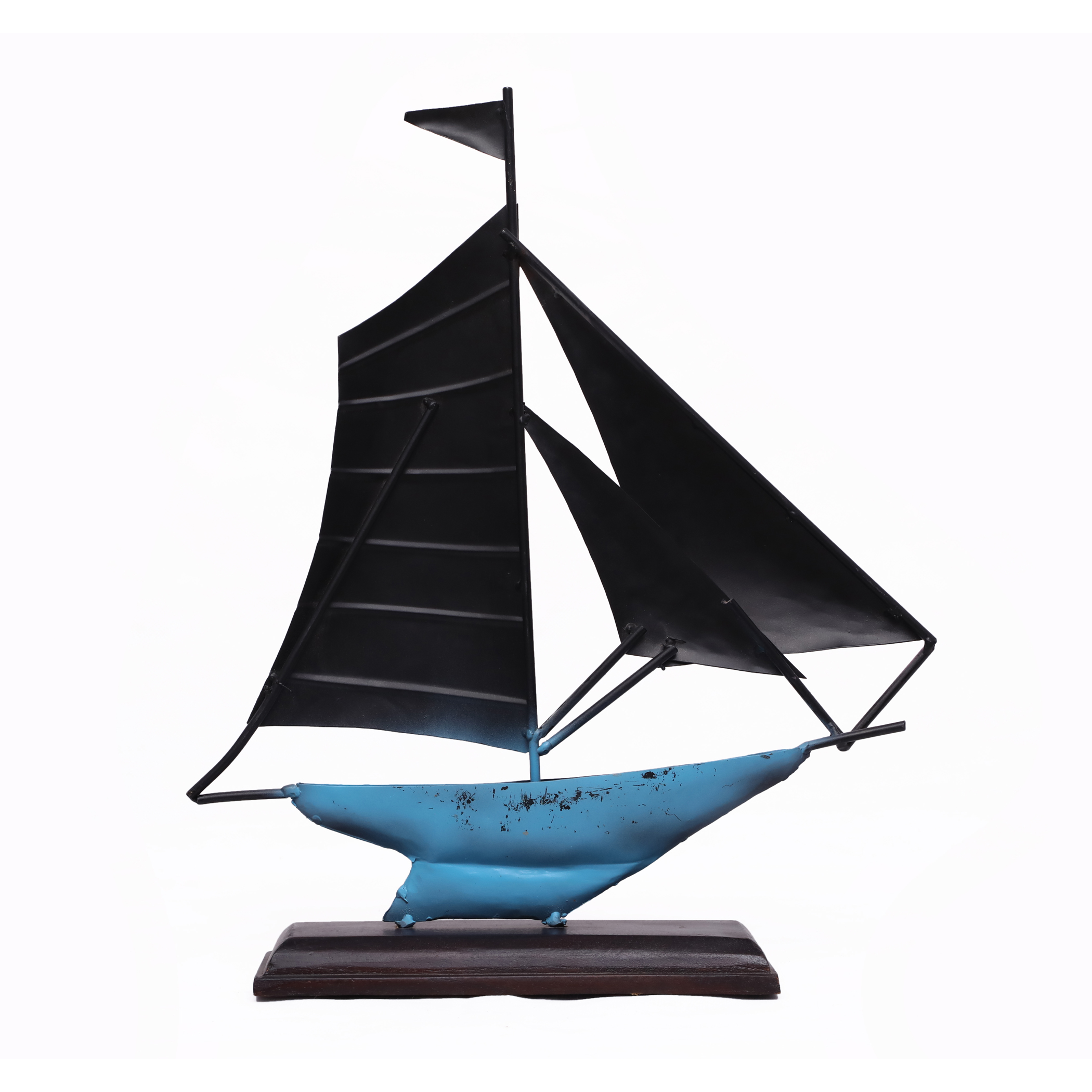 - DURABLE CONSTRUCTION: Crafted from quality metal with a painted finish and sturdy wooden base, ensuring long-lasting beauty and stability for this decorative sailboat figurine