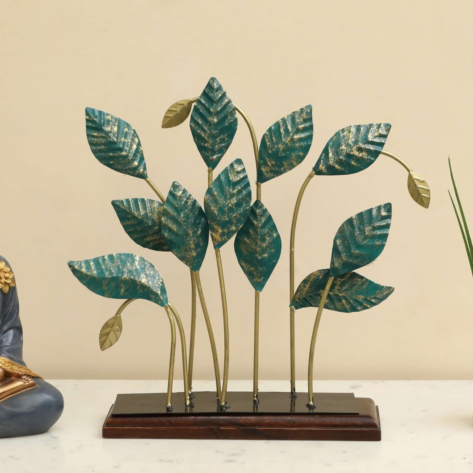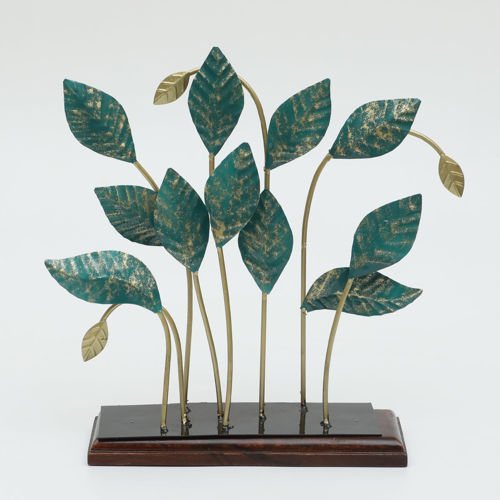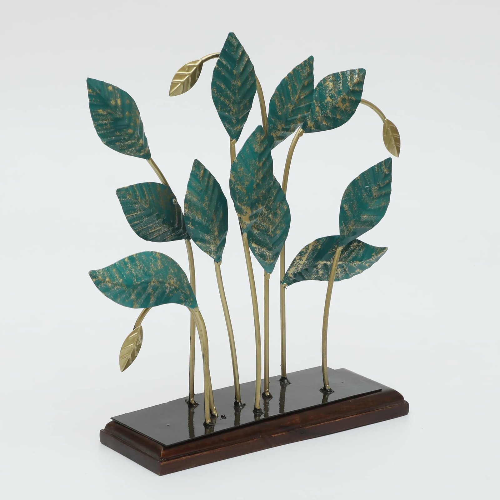 Metal & Wood Multicolor Lukus Leaf Showpiece Table Decor
