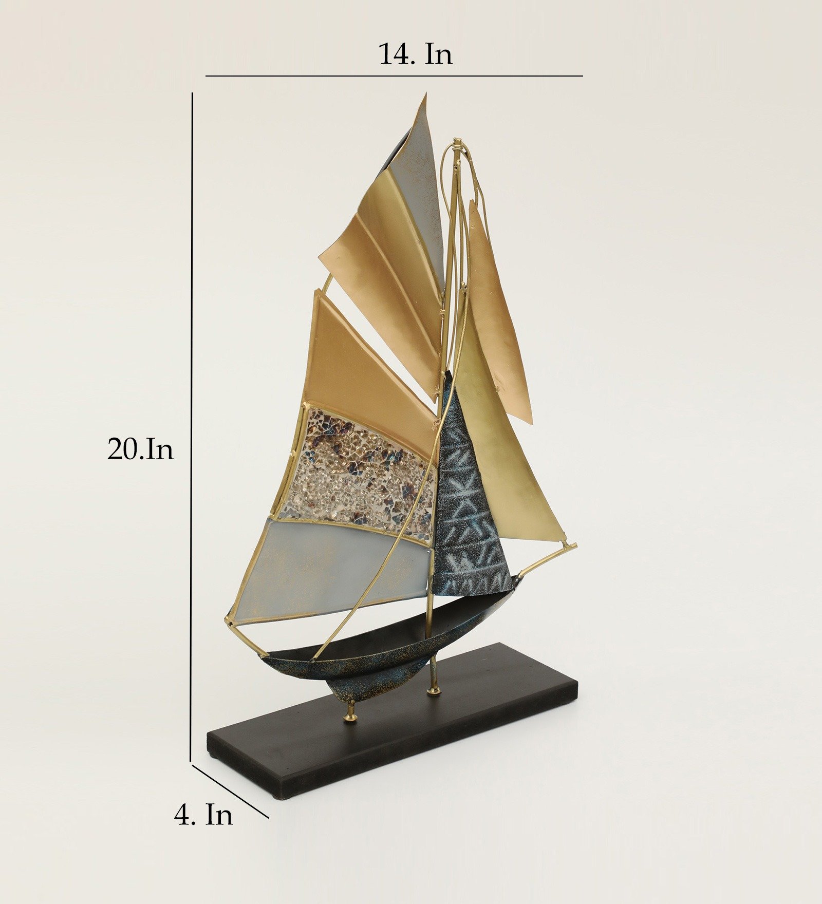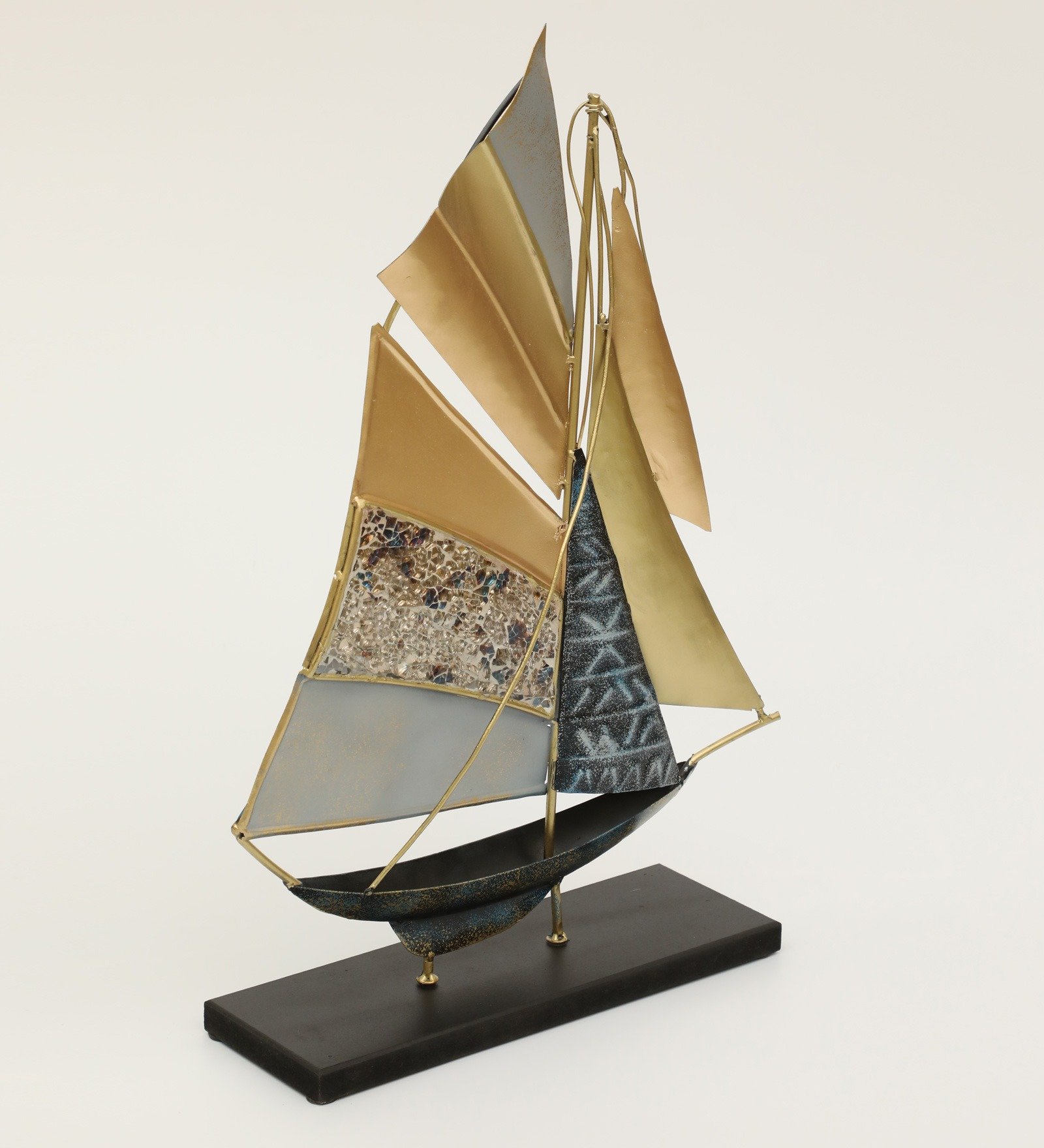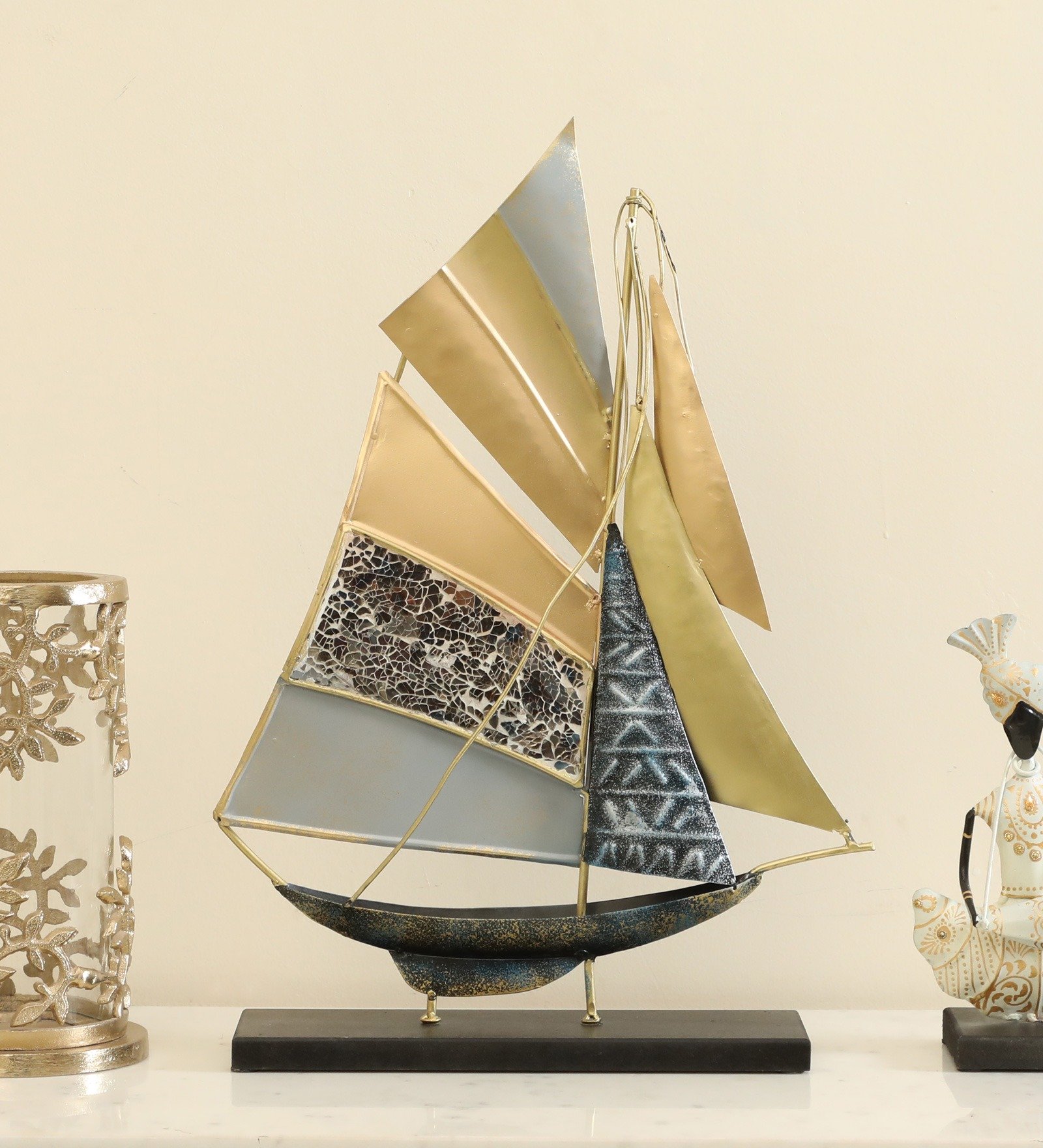 Multicolor Metal & MDF Myra Boat Ship Model Figurine Table Decor Showpiece