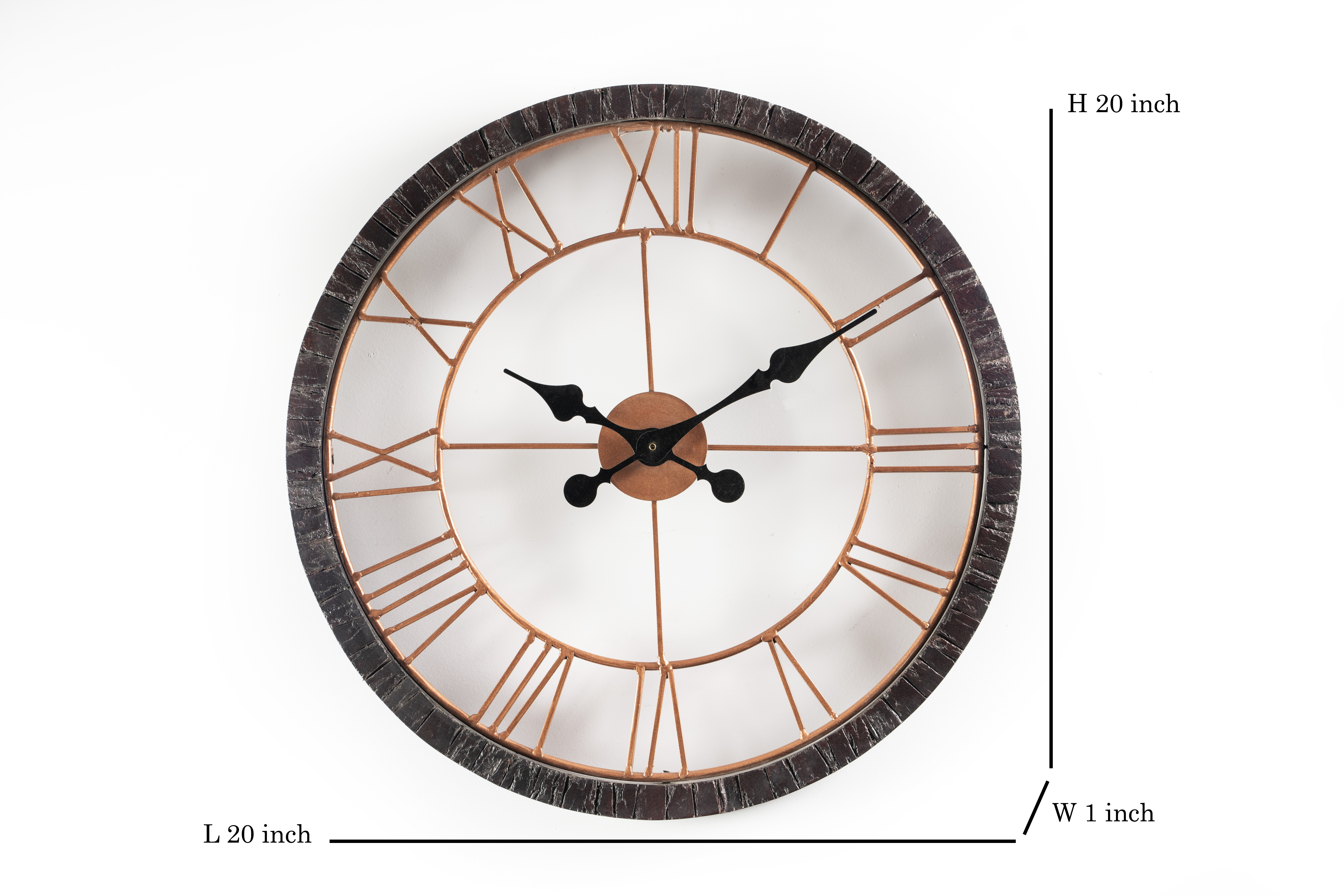 Loop Heritage Wooden Polished and Brass Metal Fit Wall Clock
