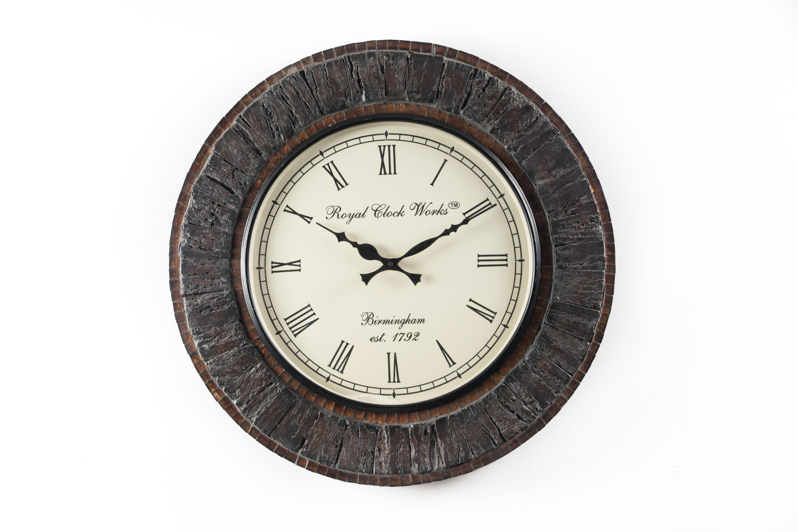 Bourbone Heritage Wooden Polished and Brass Metal Fit Wall Clock