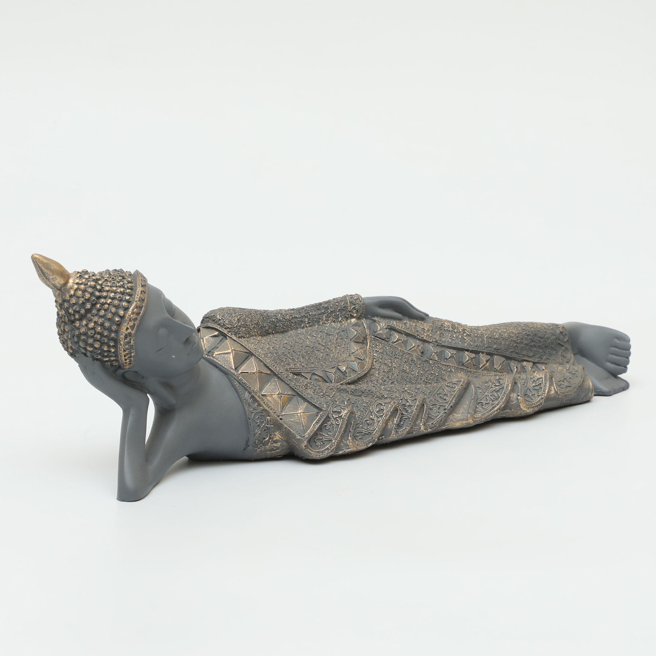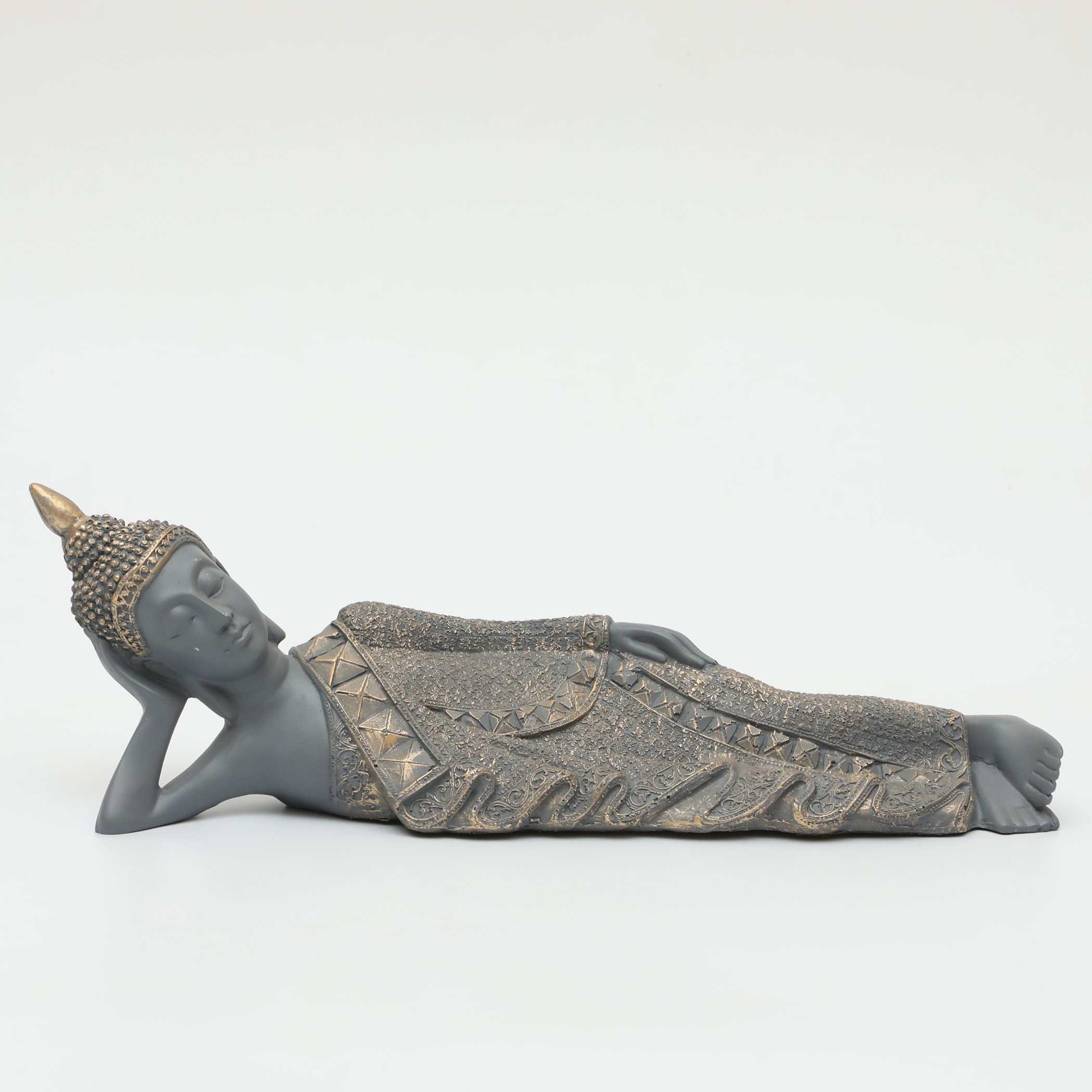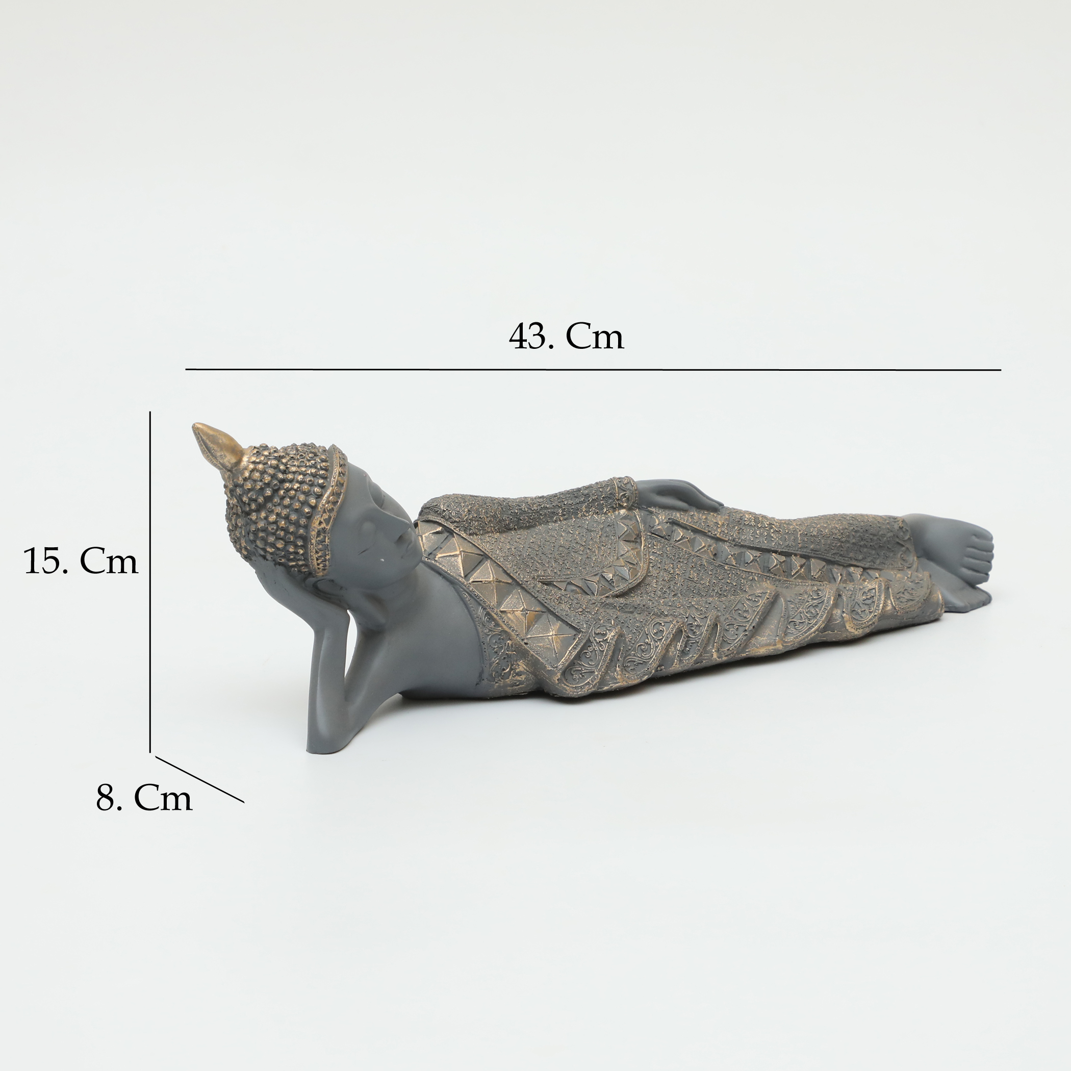 Embrace tranquility and serenity in your space with our Polyresin Aum Thinking Buddha Figurine. This beautifully crafted statue of a sleeping Buddha, elegantly resting on its side, is designed in a calming grey hue that complements any decor style. Perfect for your home, office, or meditation area, this figurine not only serves as a stunning decorative piece but also inspires mindfulness and peace. Elevate your surroundings and invite a sense of calm with this exquisite table decor that reflects your appreciation for art and spirituality.