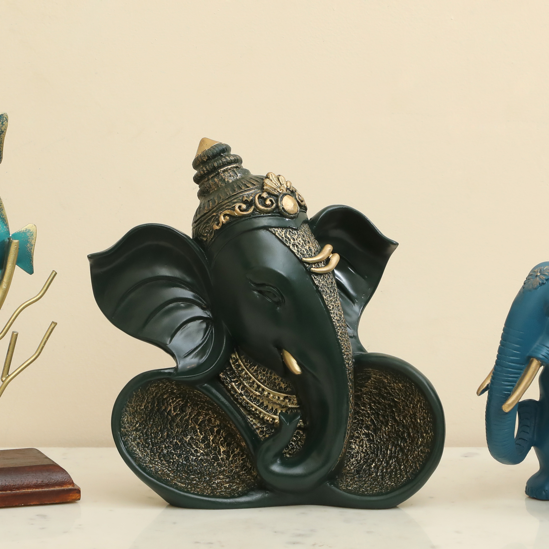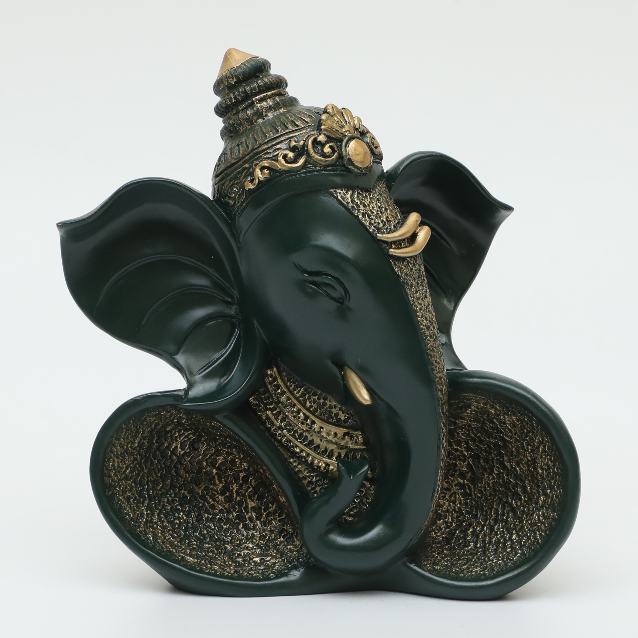 - Exquisite Green Polyresin Craftsmanship: A stunning decorative piece featuring the beloved Hindu deity Ganesha, meticulously designed to add spiritual elegance to any interior space