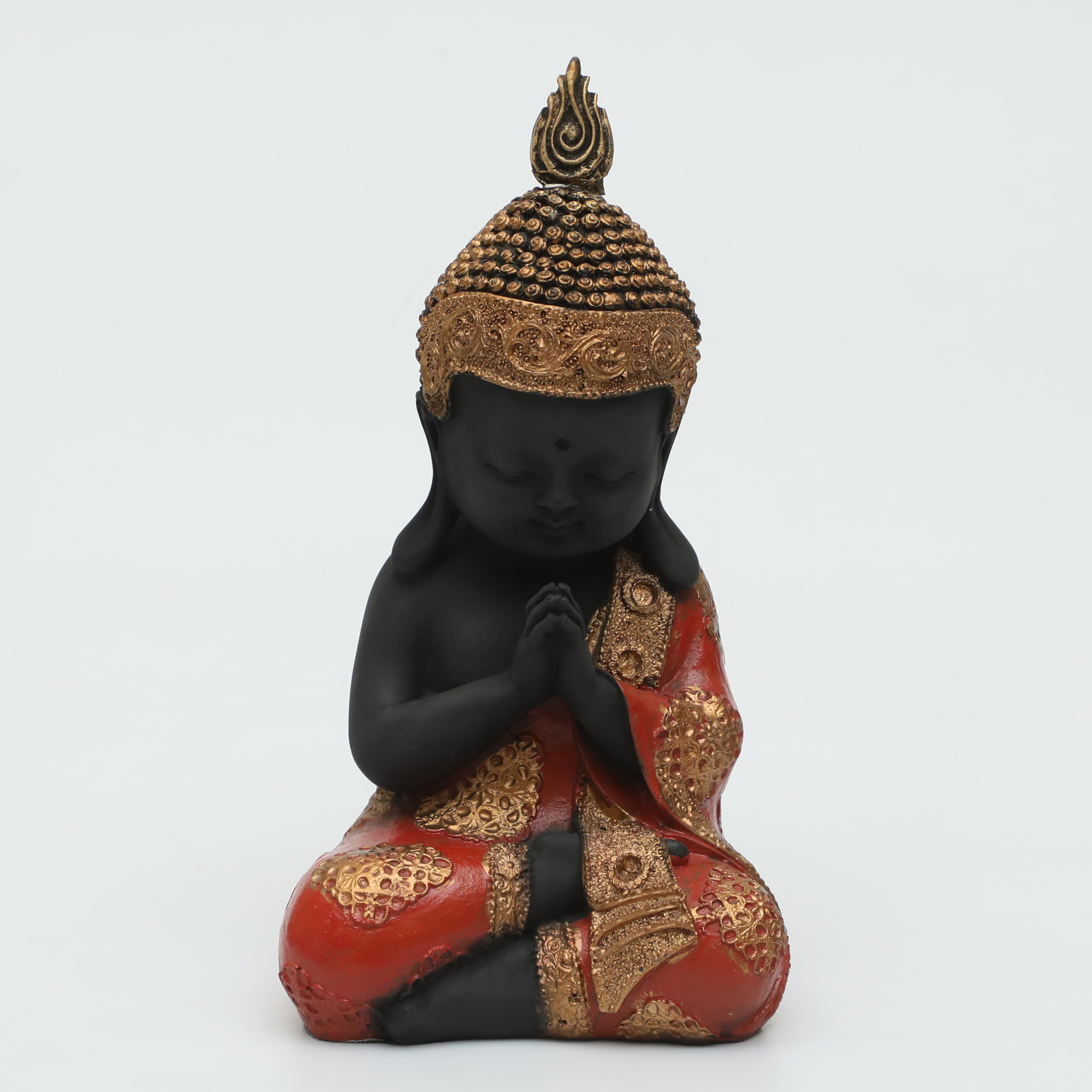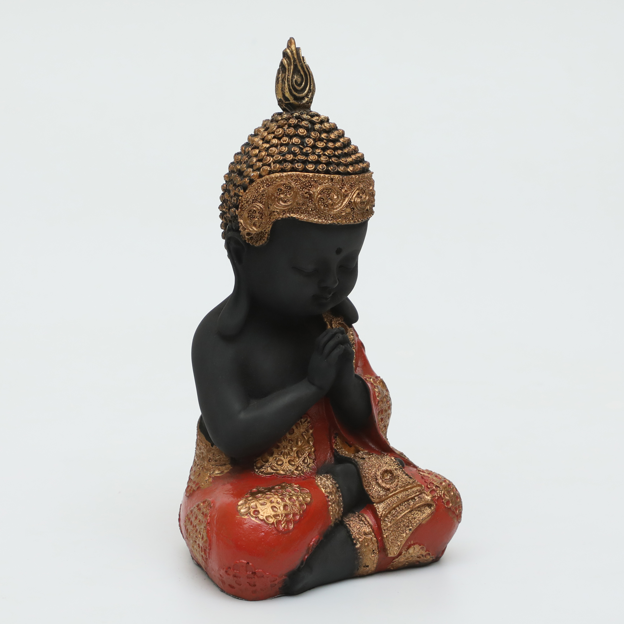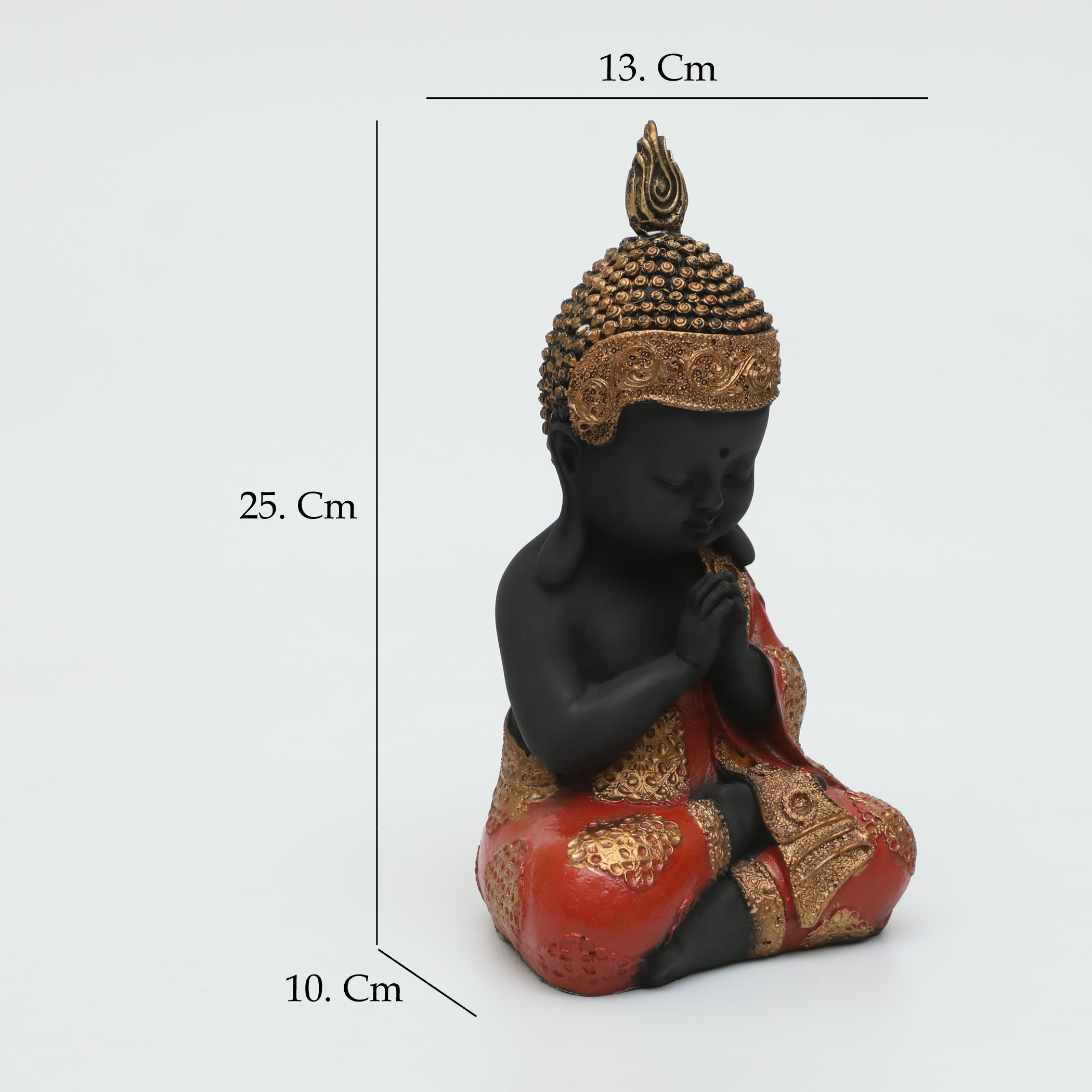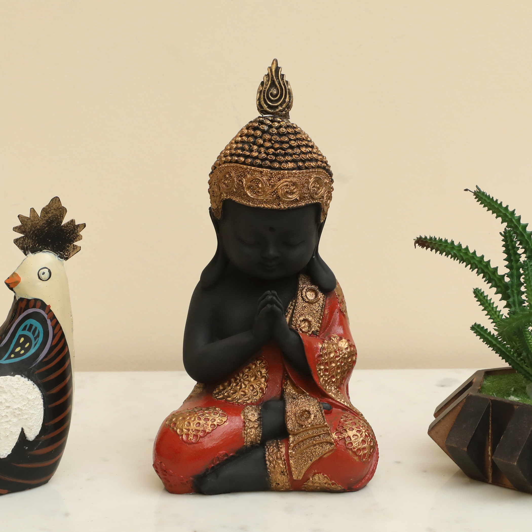 Polyresin Justen Monk Praying Showpiece Figurine Table Decor (Red)
