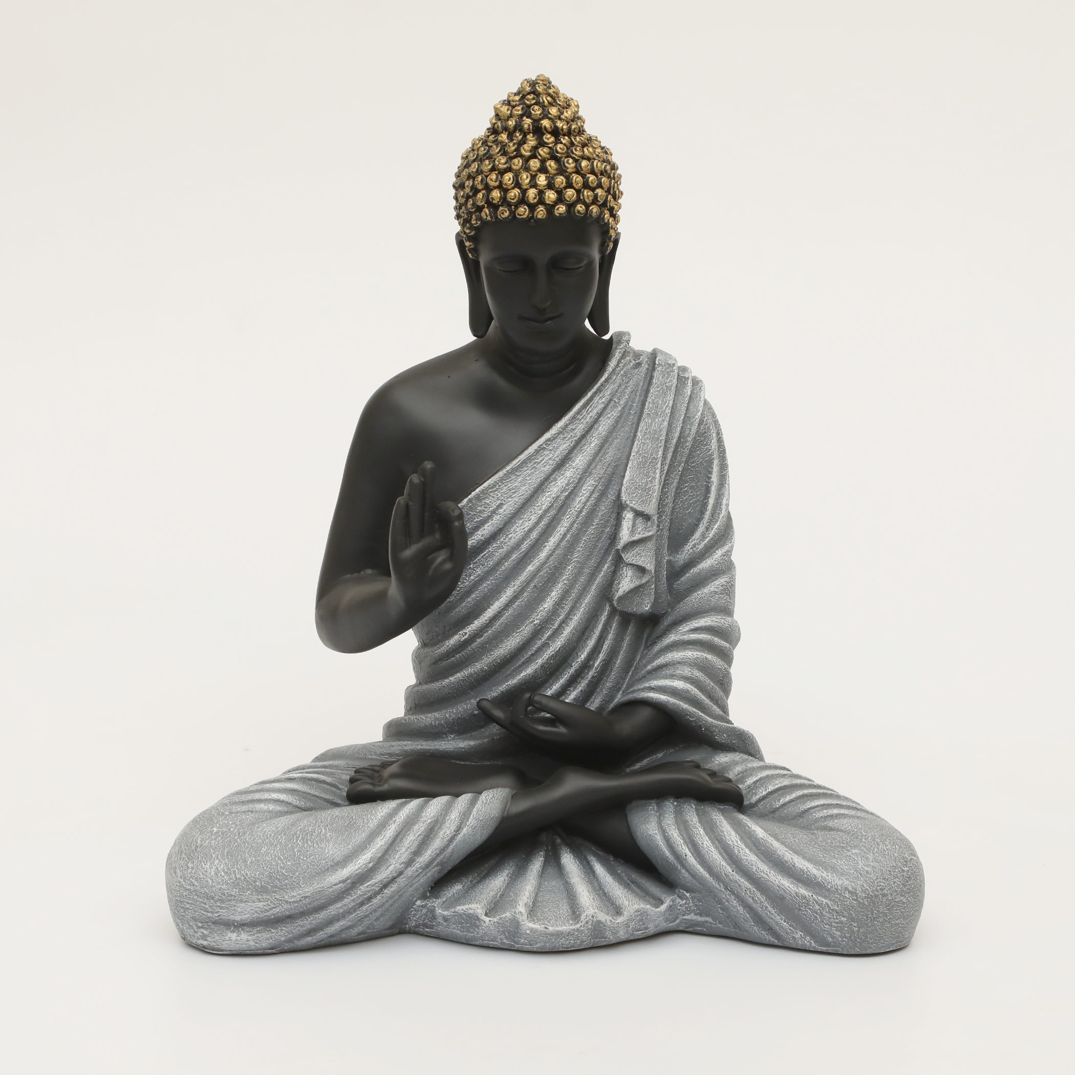 Polyresin Ory Buddha God Idol Showpiece Figurine Table Decor (Grey and Black)