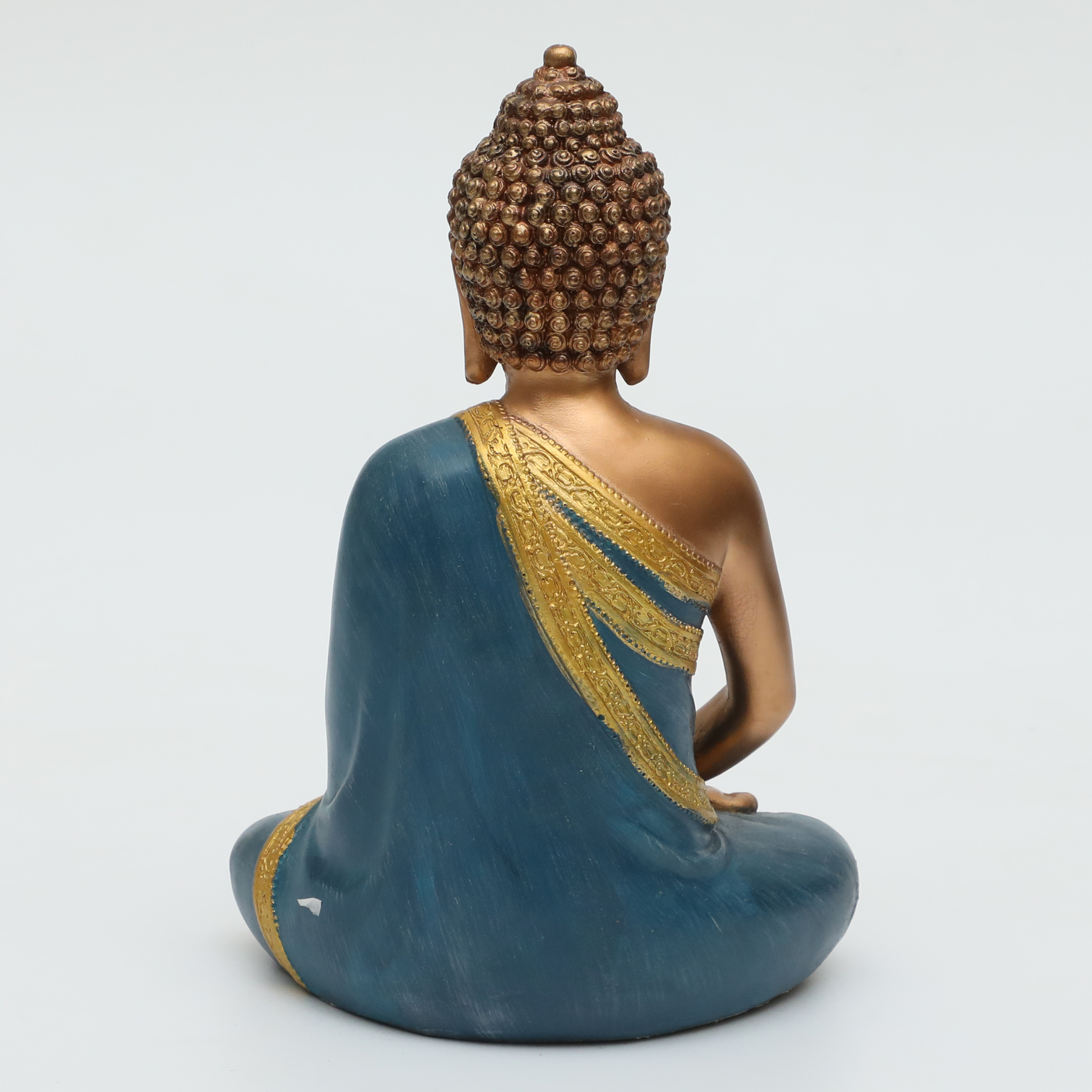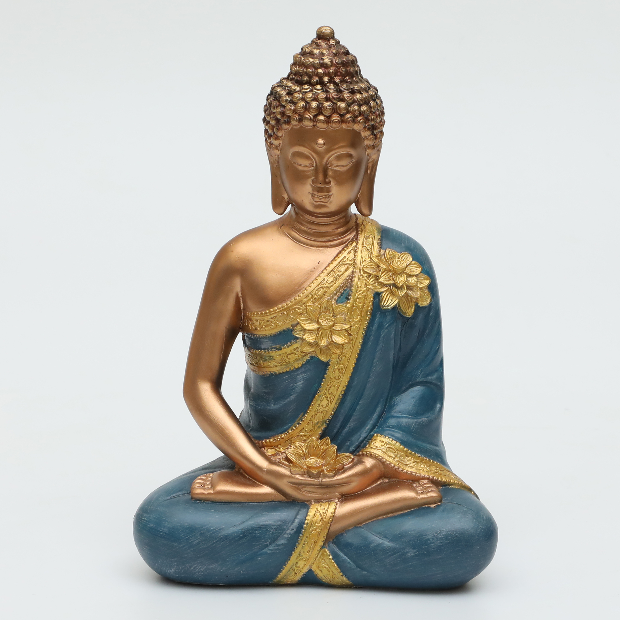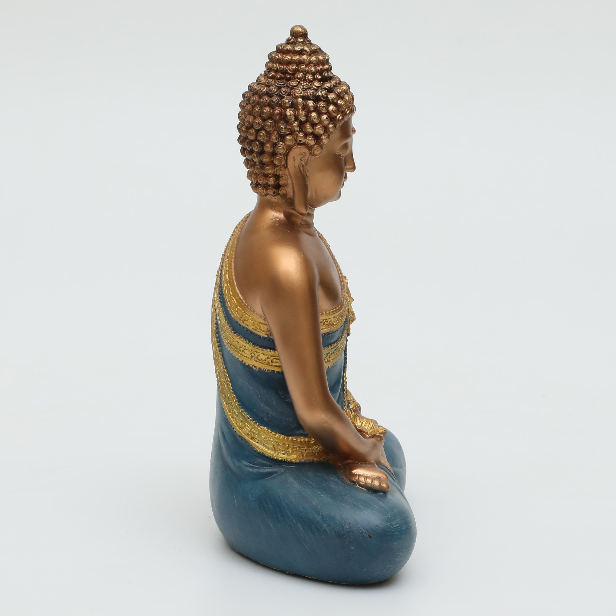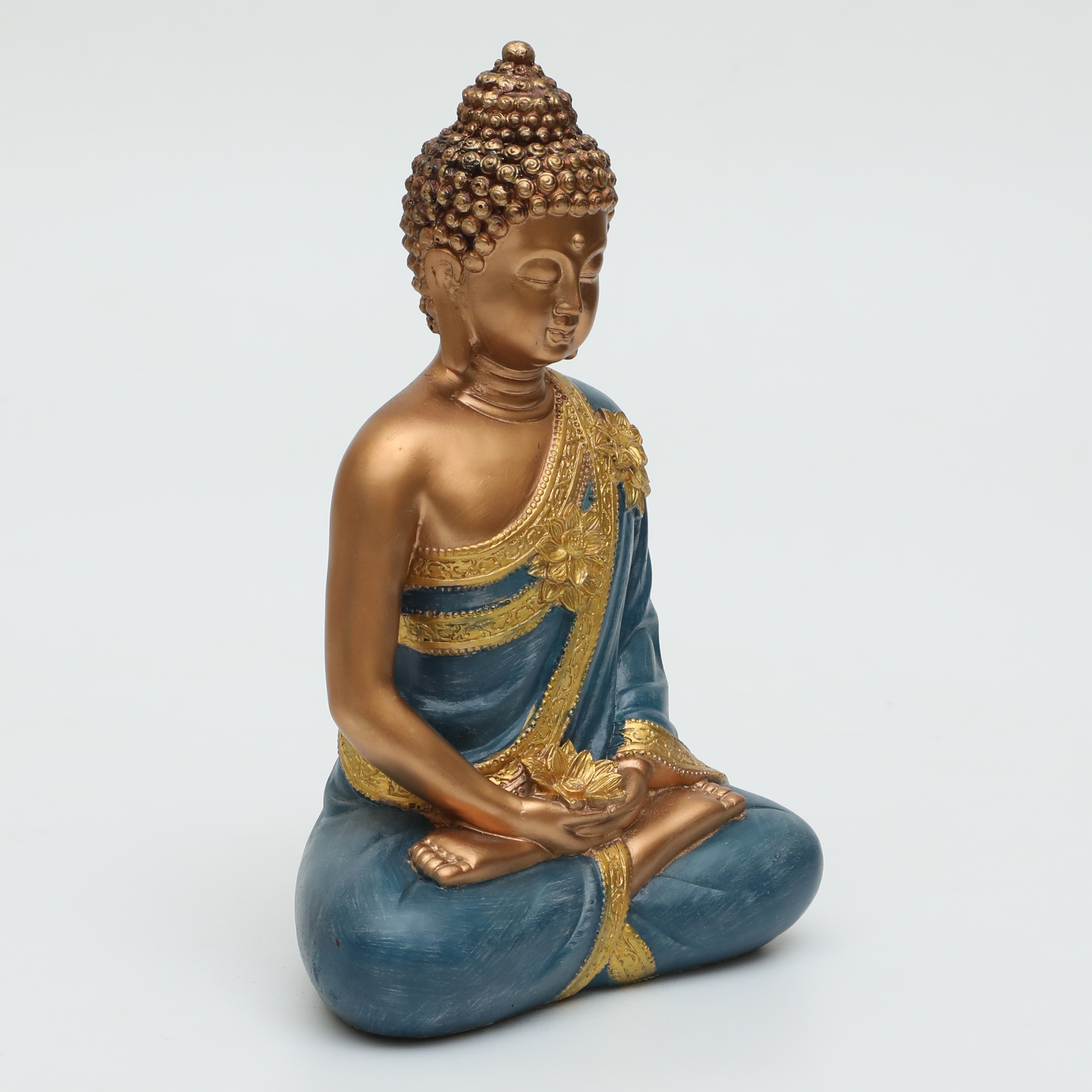 Polyresin Revata Flower Meditating Buddha God Idol Showpiece Figurine Table Decor (Blue)