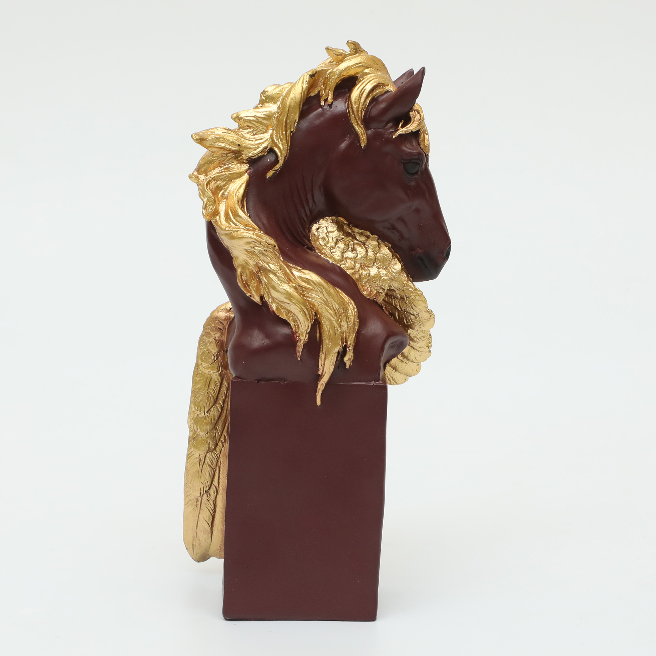 - ELEGANT DESIGN: Stunning horse figurine featuring a brown polyresin body with golden mane and wing details, perfect for adding a touch of sophistication to any space