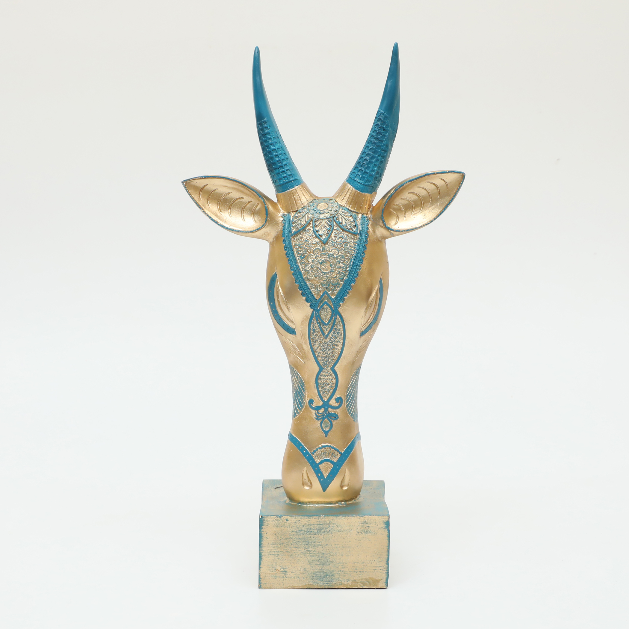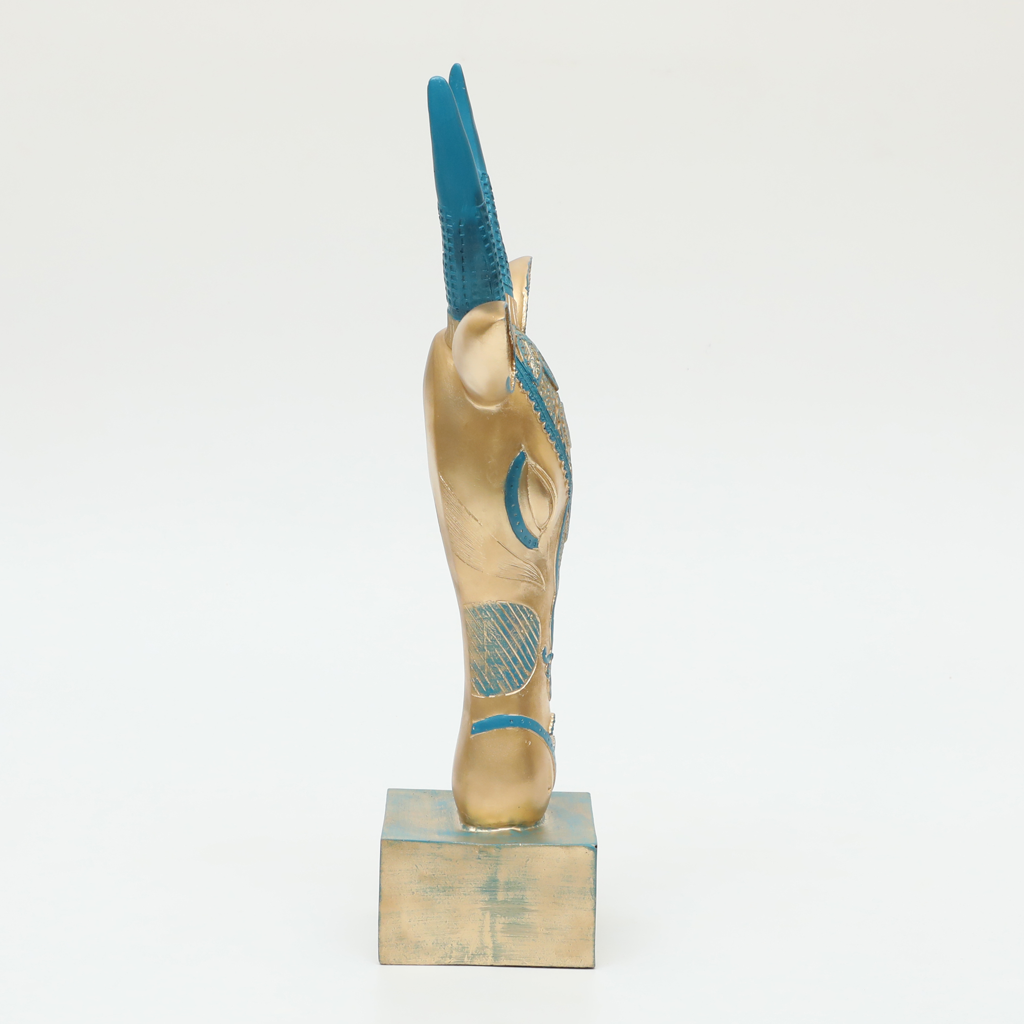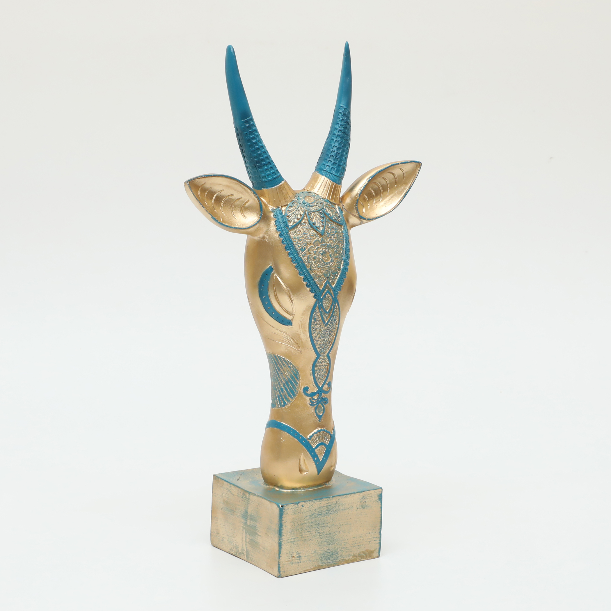 Elevate your home decor with the Vedas Polyresin Yumi Face Animal Figurine, featuring a striking blue goat head adorned with luxurious gold horns. This exquisite sculpture, measuring 25 x 48 cms, serves as a captivating centerpiece that adds a touch of elegance and artistry to any space. Crafted from high-quality polyresin, it combines durability with a stunning design, making it a perfect decorative showpiece for your living room, office, or any area in need of a unique flair. Embrace the charm of this beautiful table decor and transform your surroundings today.