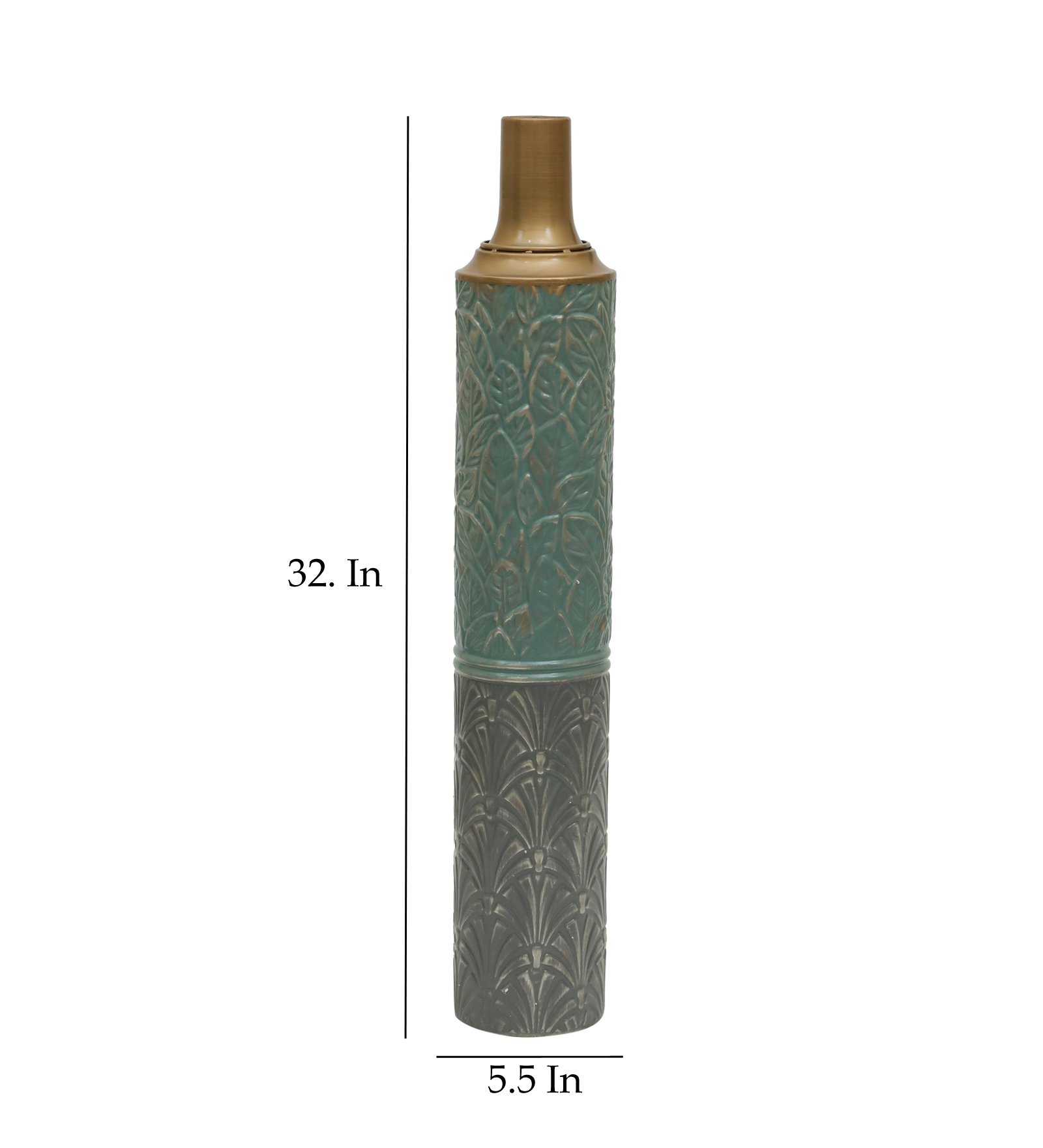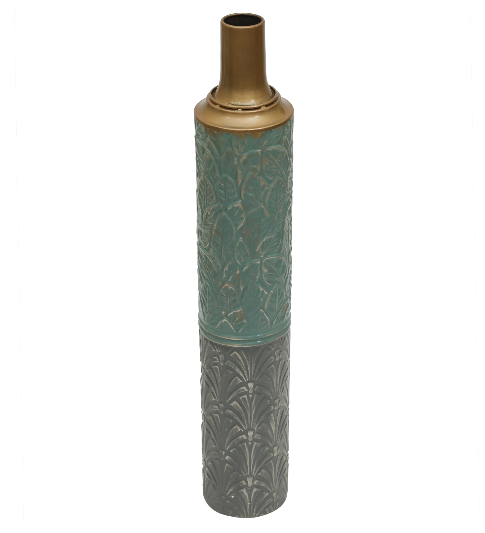 Crafted of metal, this stunning vase strikes an updated amphora silhouette with a 32″ H x 5.5″ W cylindrical body and a flared mouth. Perfect for long-stemmed florals, decorative twigs, or unfilled as a sculptural accent, Its ambiguous qualities make it a magnetic piece that guests won’t be able to keep their eyes off of. This vase can be simply wiped with a dry cloth for effortless upkeep.