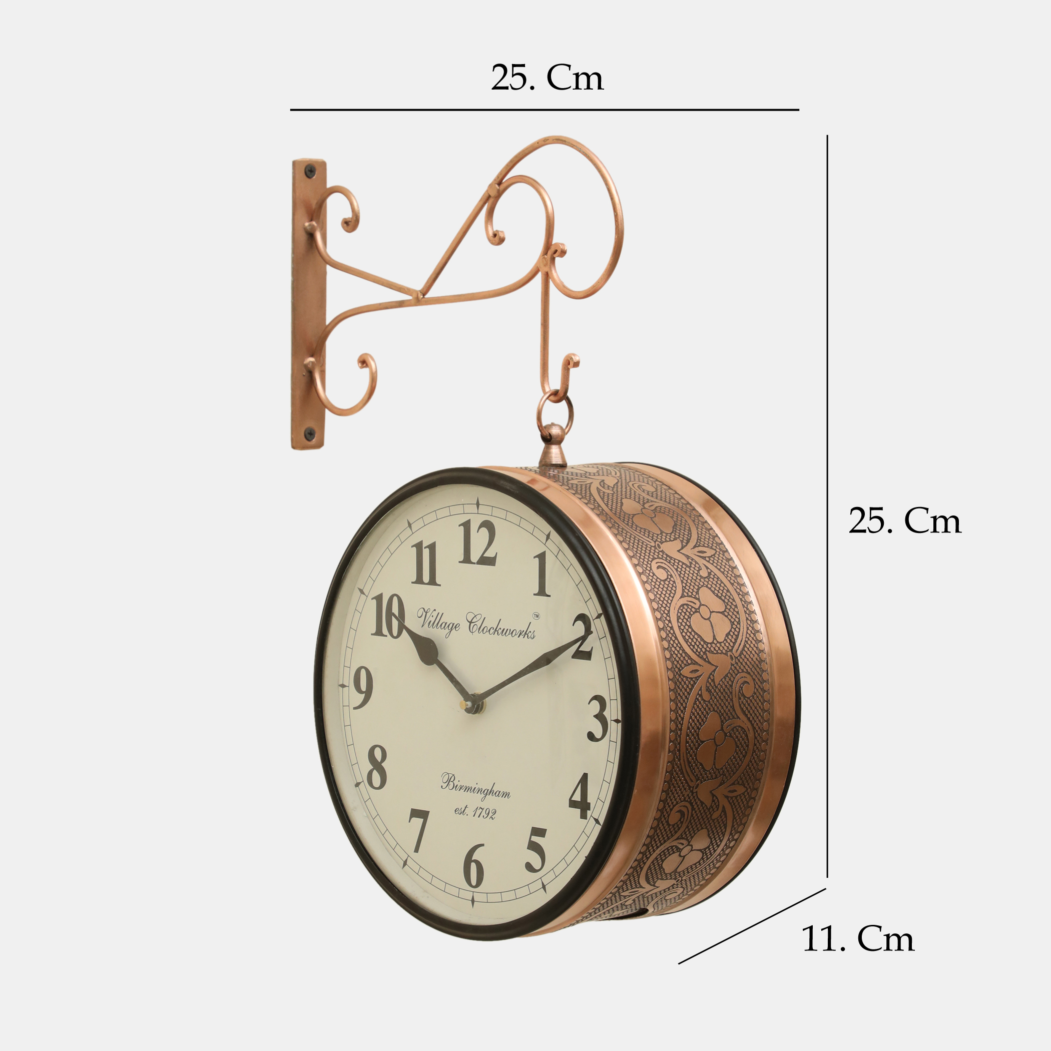 - Vintage Aesthetic: This double-sided analogue wall clock exudes a nostalgic charm with its antique railway station design and copper finishing, perfect for adding a touch of old-world elegance to any space.