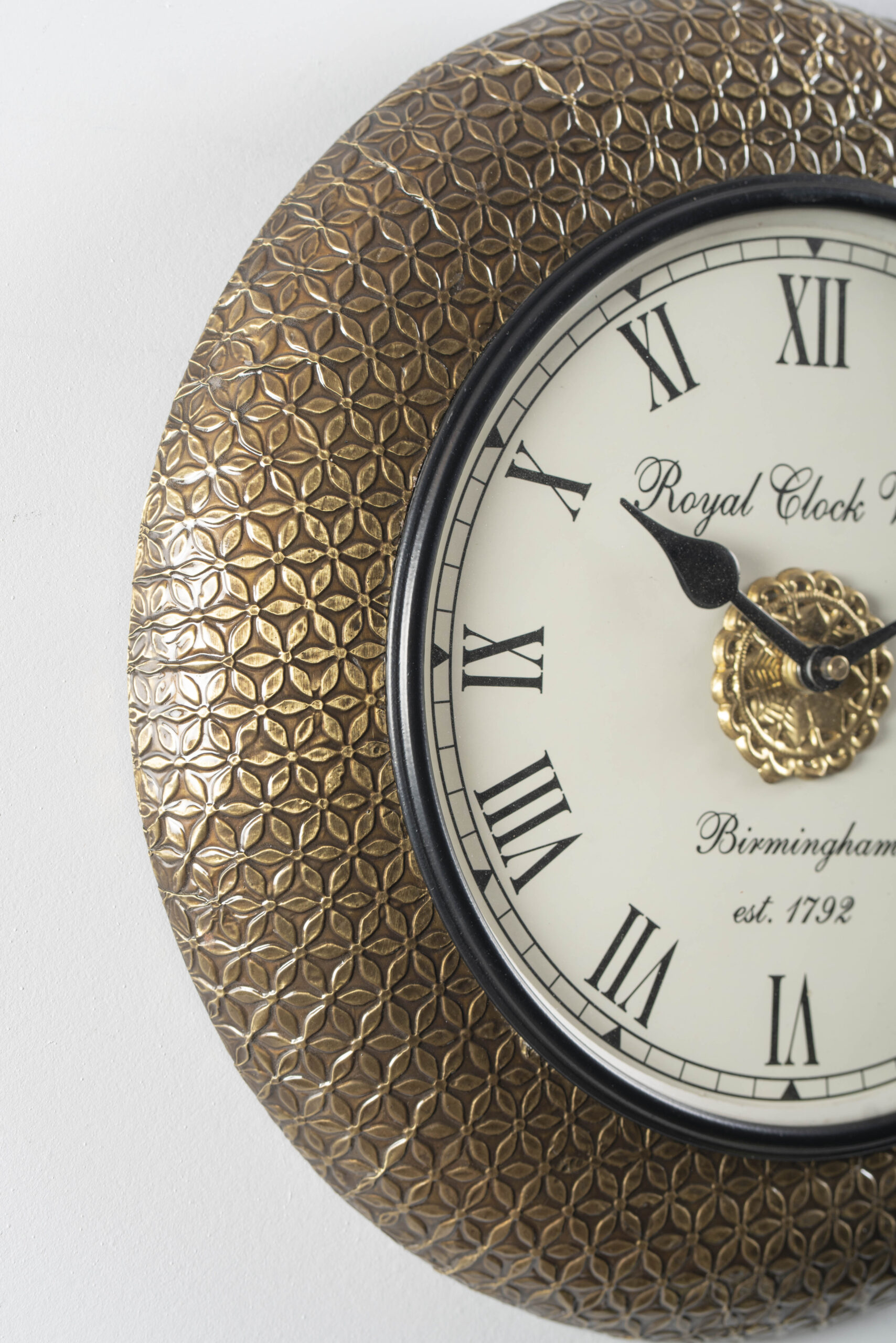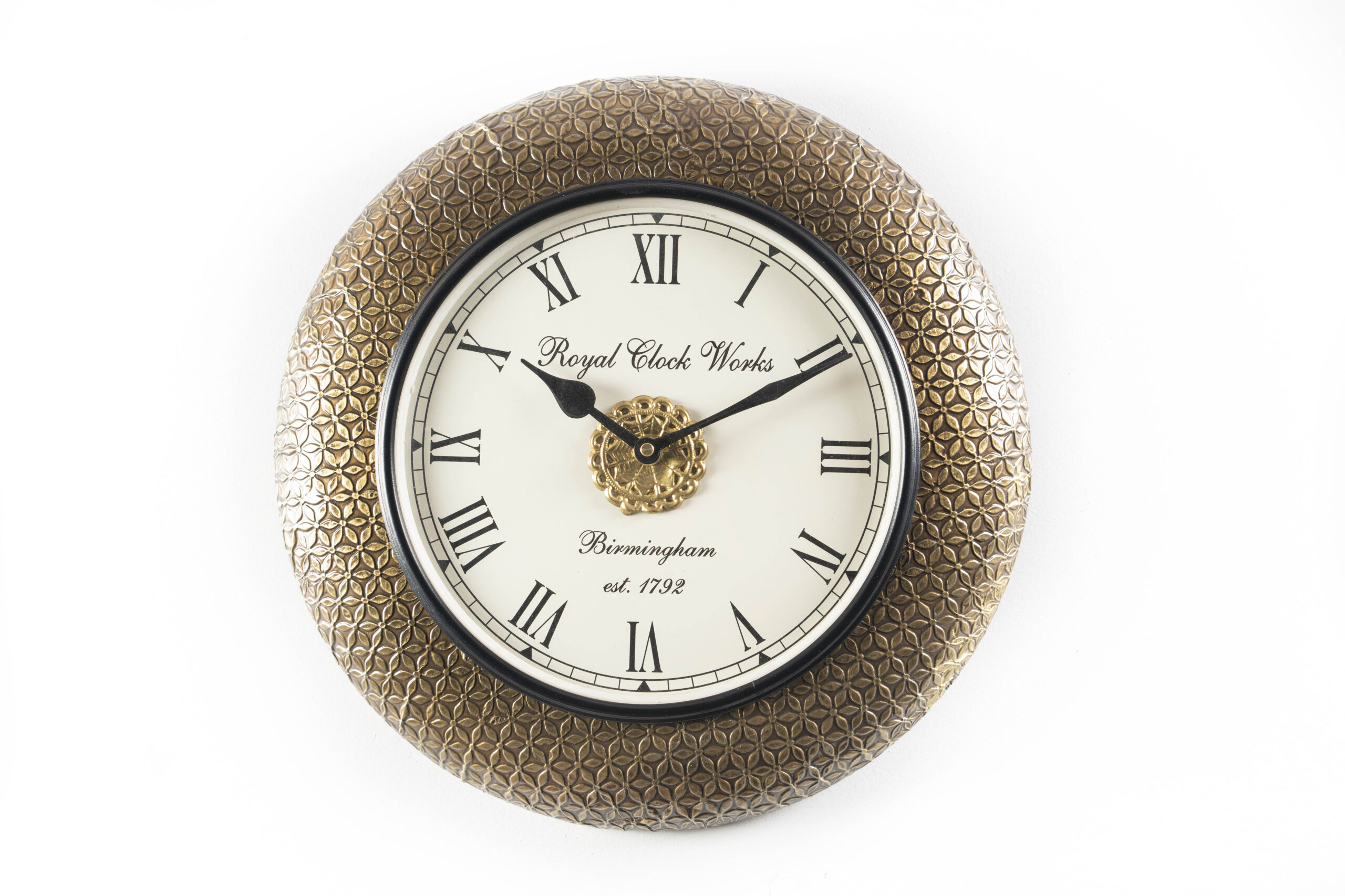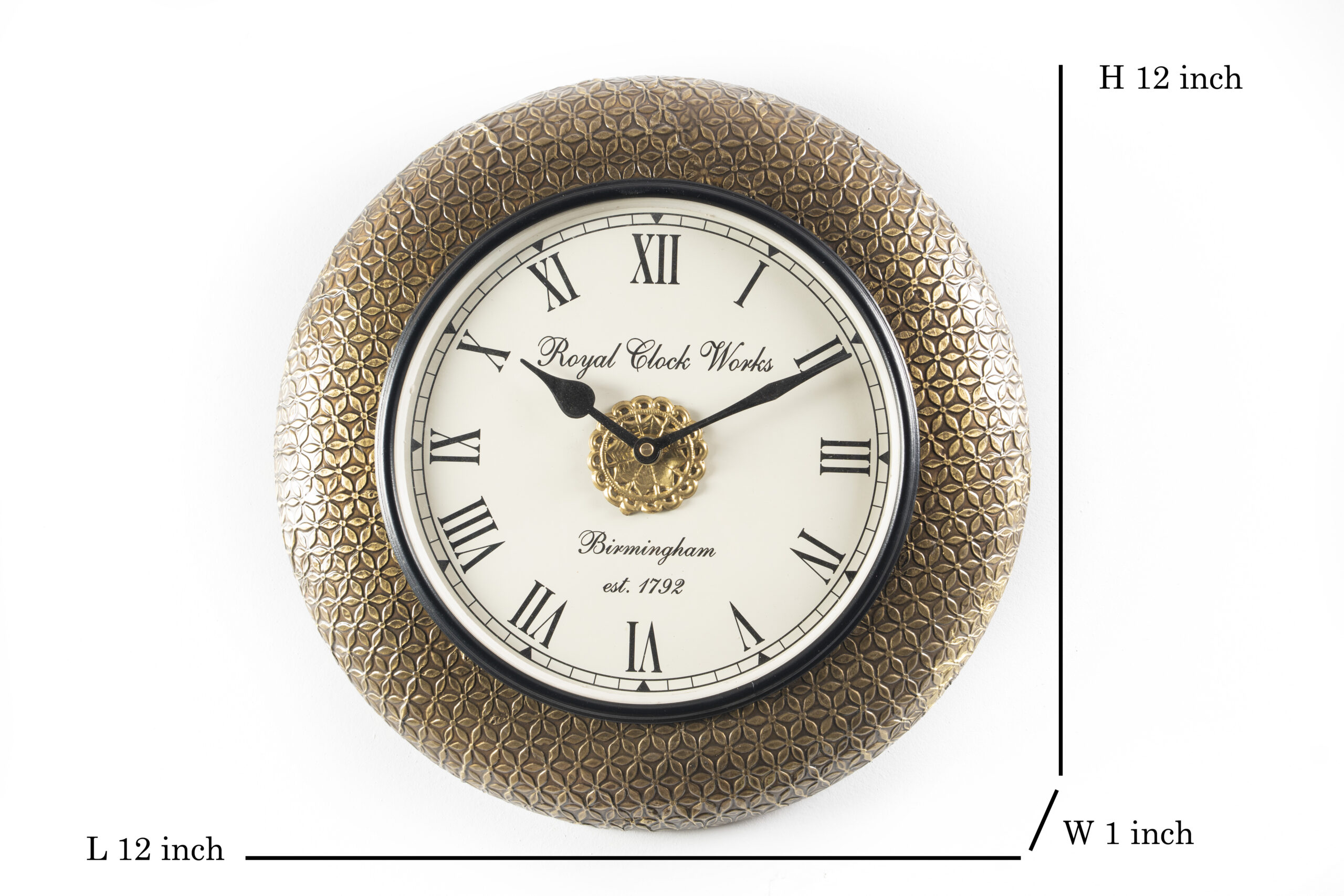 Navish Heritage Wooden Polished and Brass Metal Fit Wall Clock