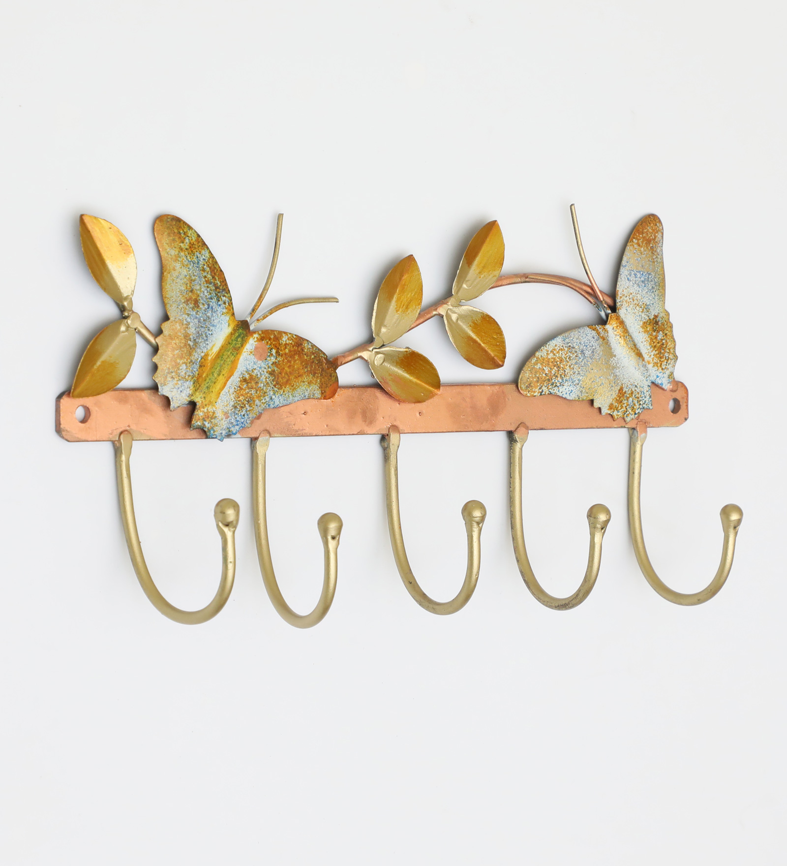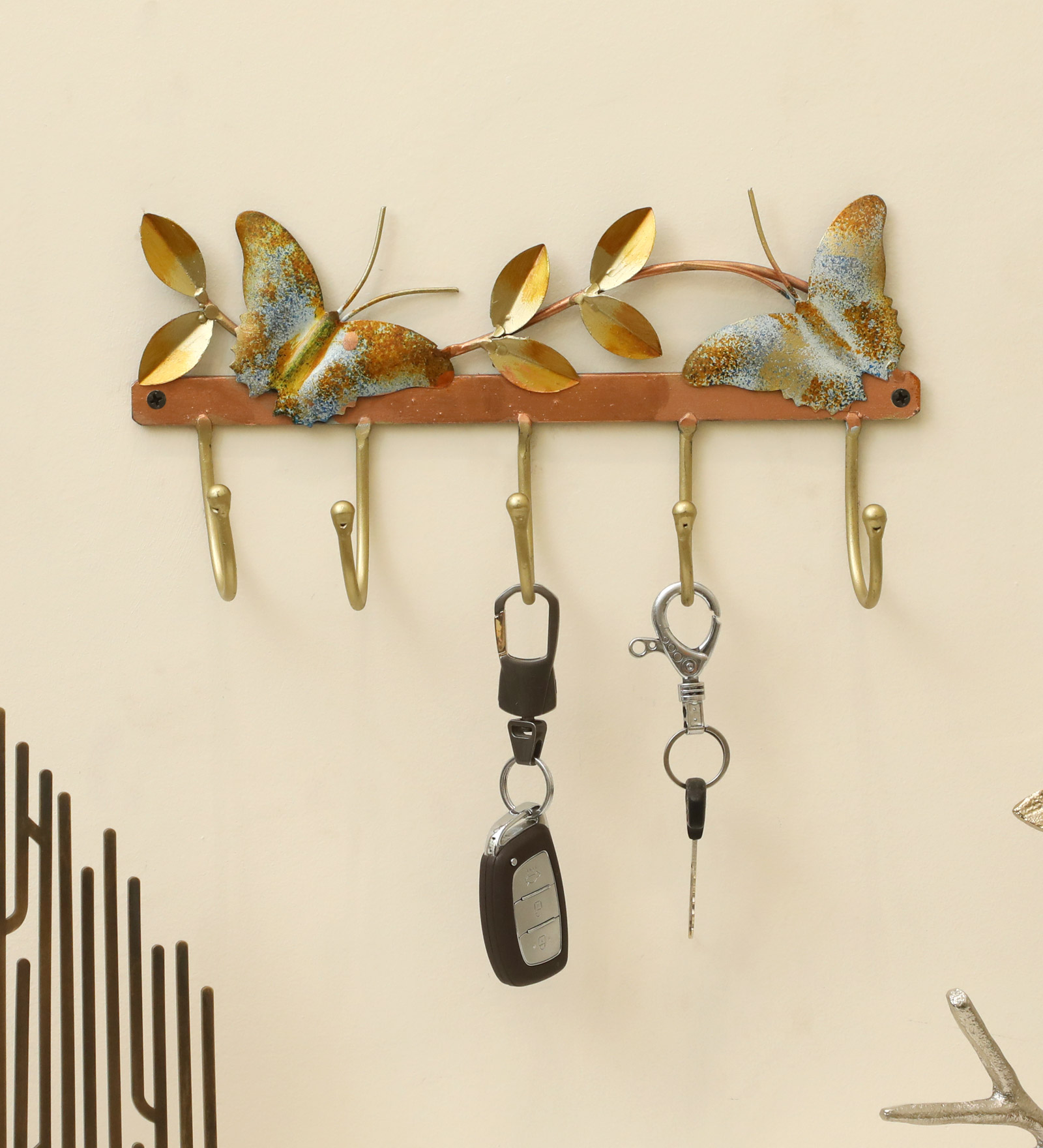 Two Butterfly Metal Wall Hooks for Keys | 5-Hook Holder