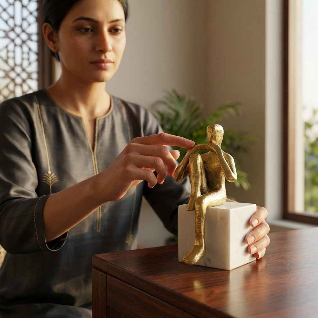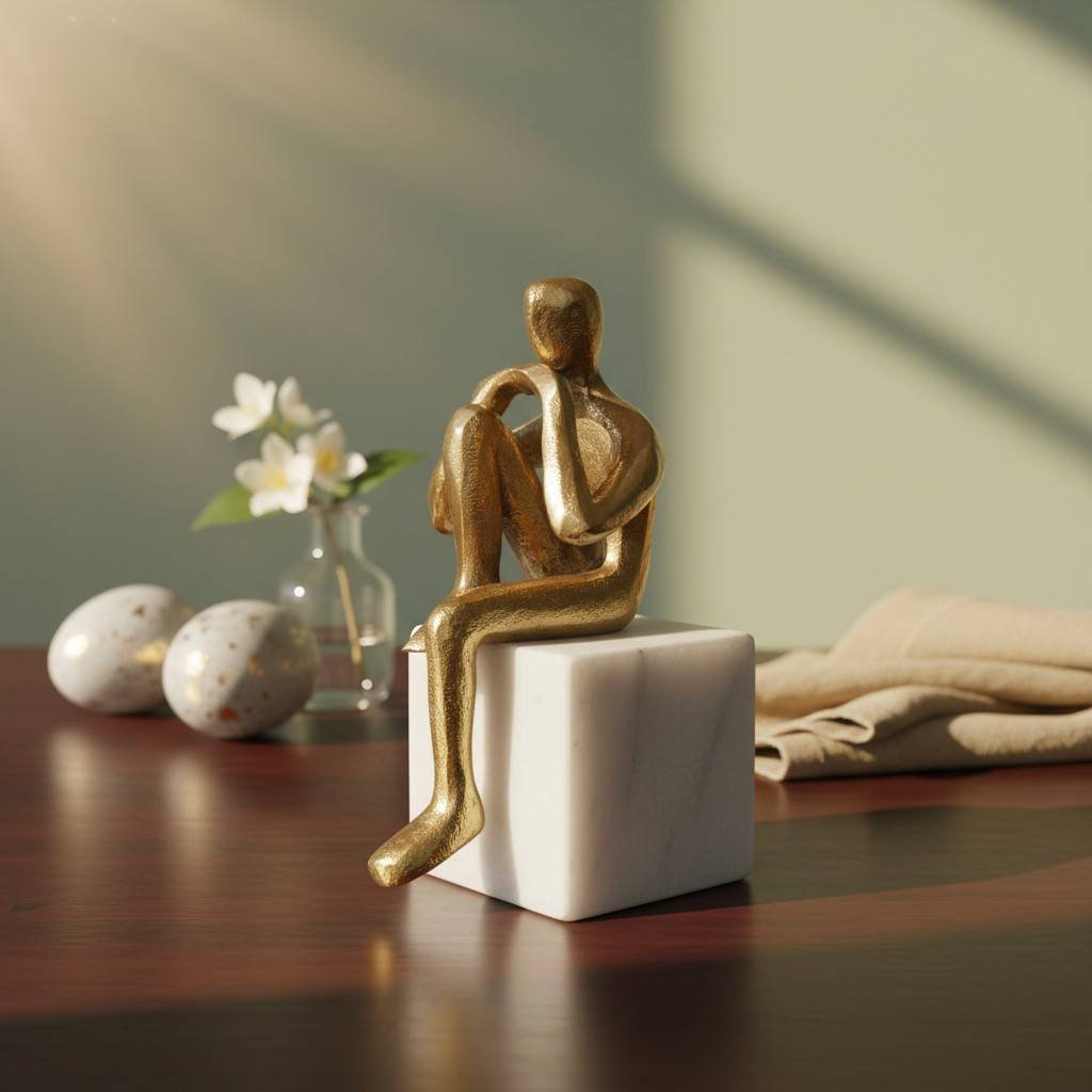 Vedas Alu Gold Man Sitting Figurine Showpiece Table Decor