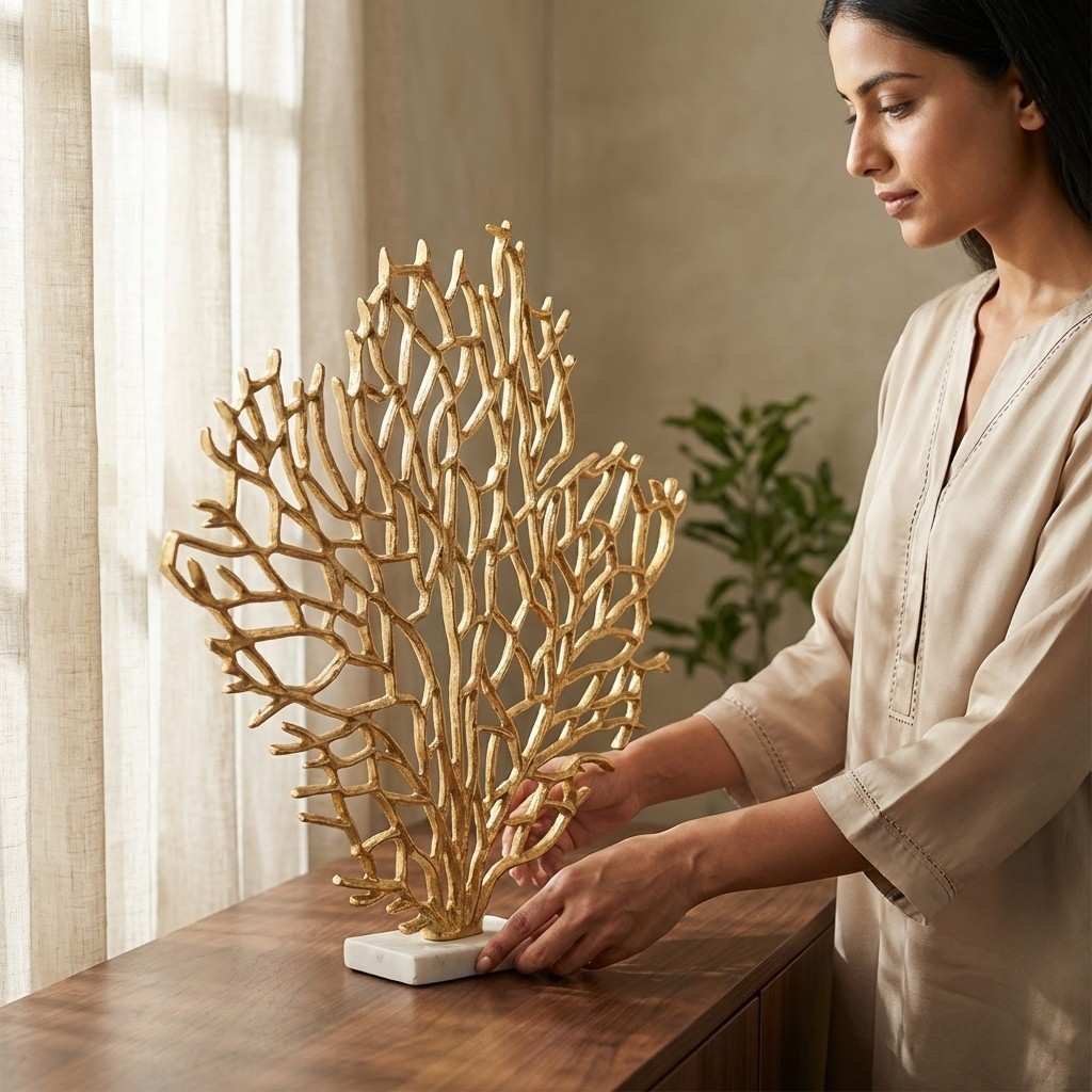 Vedas Alu Gold Tree Big Figurine Showpiece Table Decor