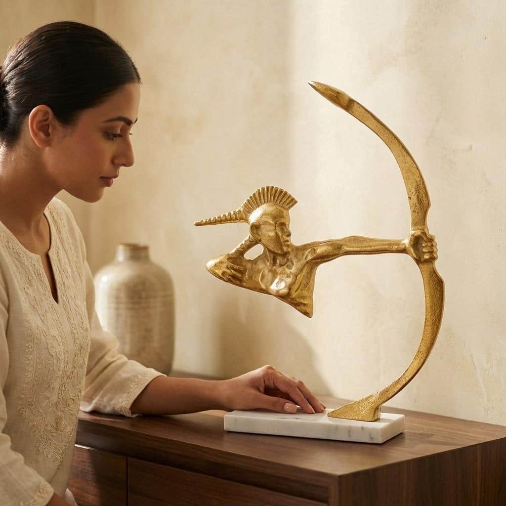 Vedas Alu Gold Warrior with Arrow Figurine Showpiece Table Decor